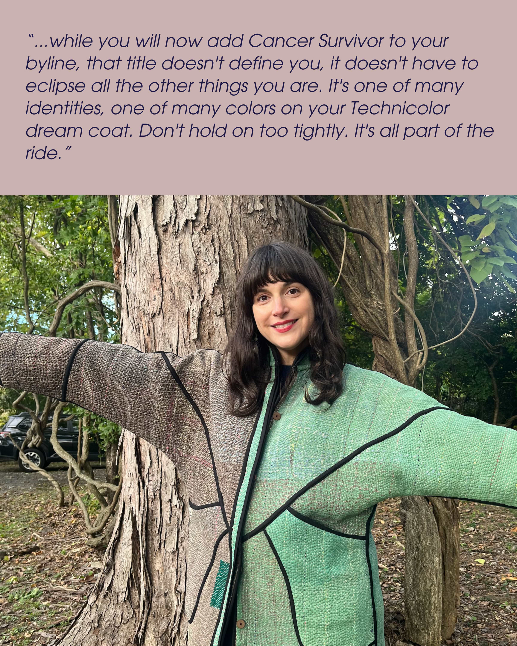 Almost four years out, I continue to rely on my Buddhist practice and my sense of humor for my survival. Being both a Cancer Mom and a patient is a crash course in letting go. I try to carve out space for myself to sit in the unknowing and experience joy and fun...even when medical menopause is serving up some new delight (!) or I'm convinced my implant has flipped! One can only laugh, it's all so ridiculous.