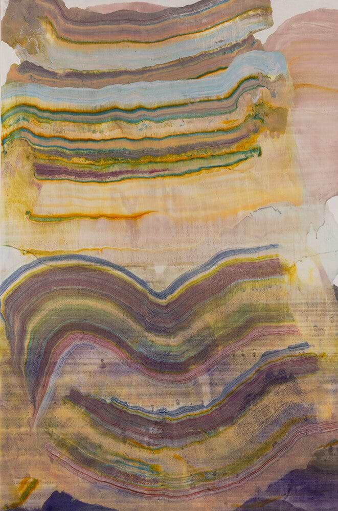 You’ve said that “Taking poetic license with geology, I compare processes of the studio with processes of the earth. Layers of color form the strata of a methodology in which the immediacy of the hand can translate a sense of deep time.” Can you talk more about this process of creating the wax sculptures that become a medium for you to create two dimensional work?