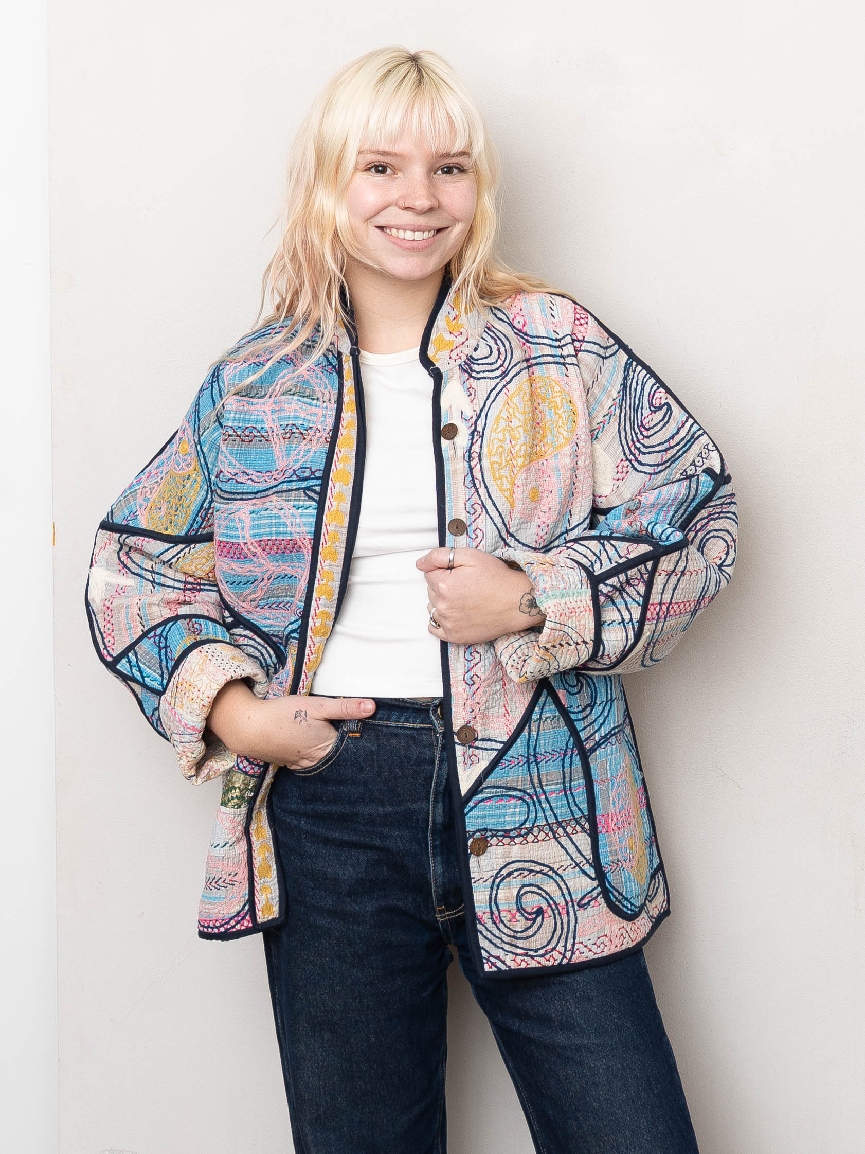 What love most about working for Namai is how much care goes into both the process and the product. Every jacket is completely unique, and the colors and patterns of the quilts are so striking. They feel special, but still meant to be worn and lived in. It also feels rare and special to be part of a brand like this in my own town.
