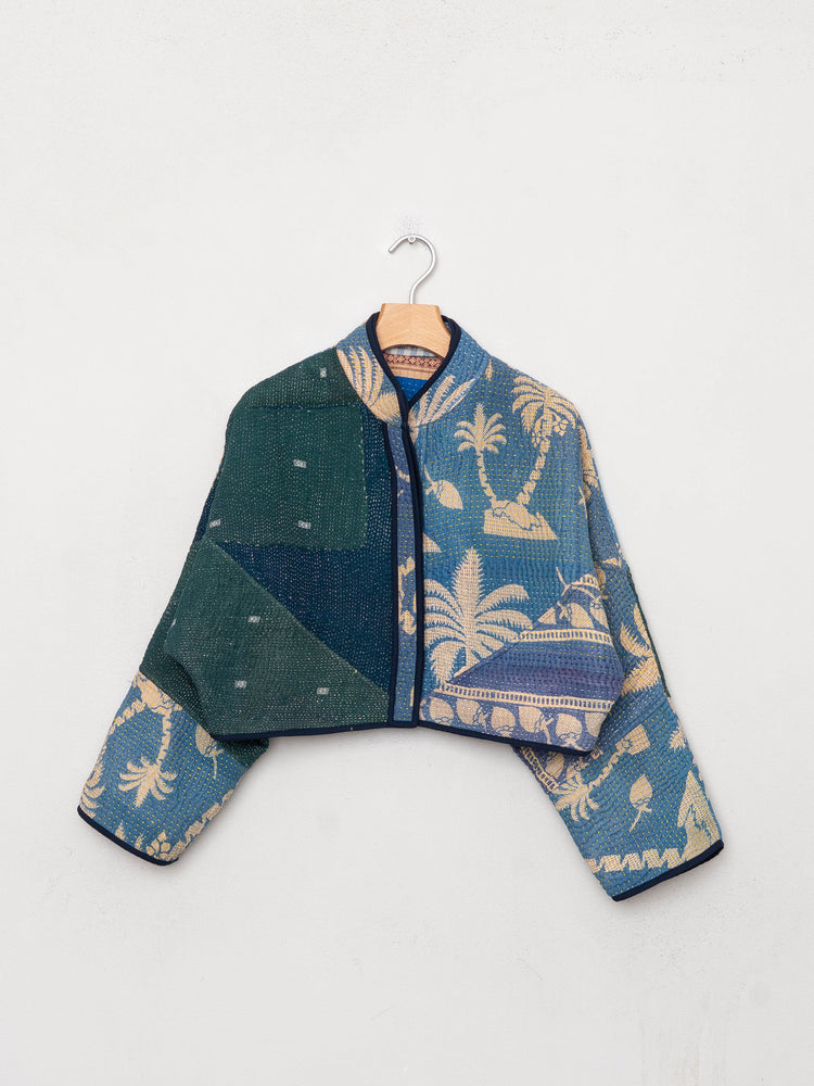 The Kaira Cropped Quilted Patchwork Kantha Jacket