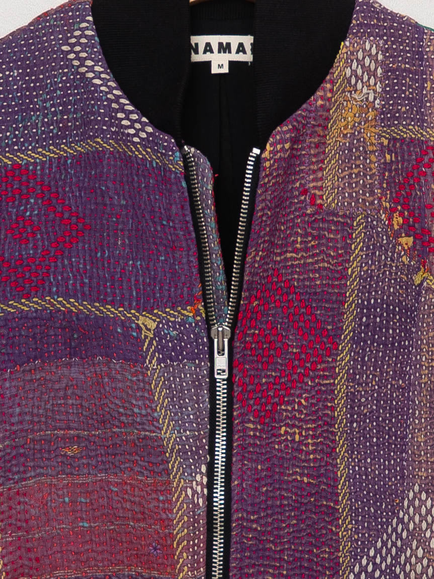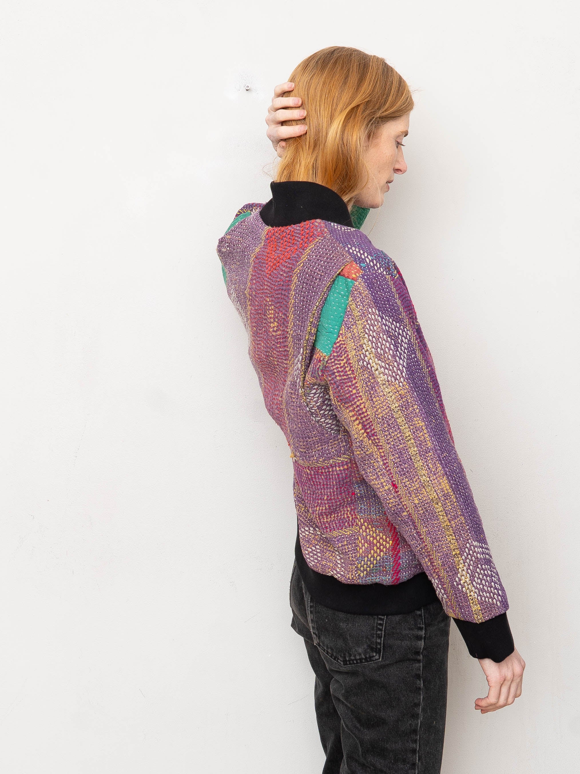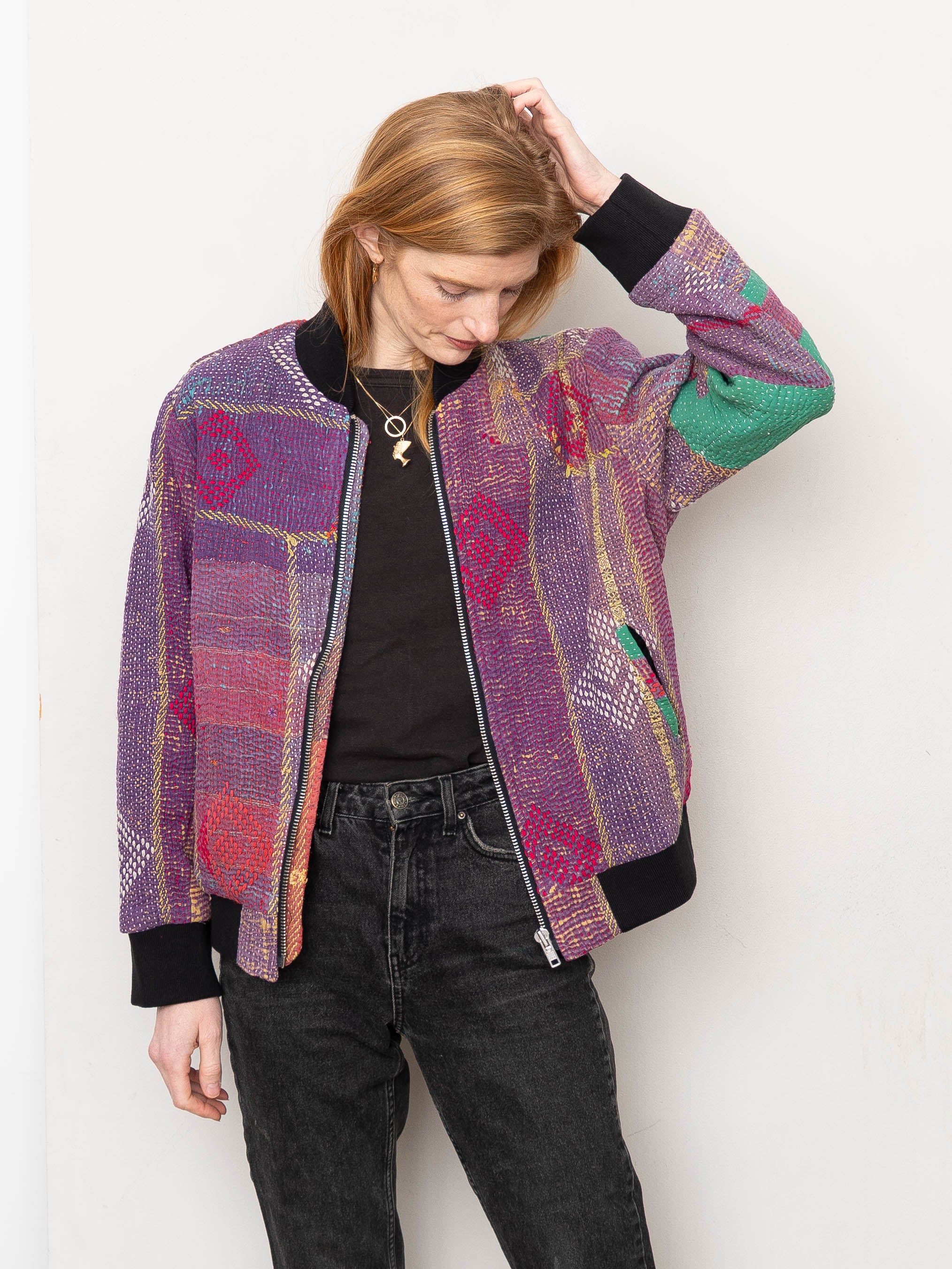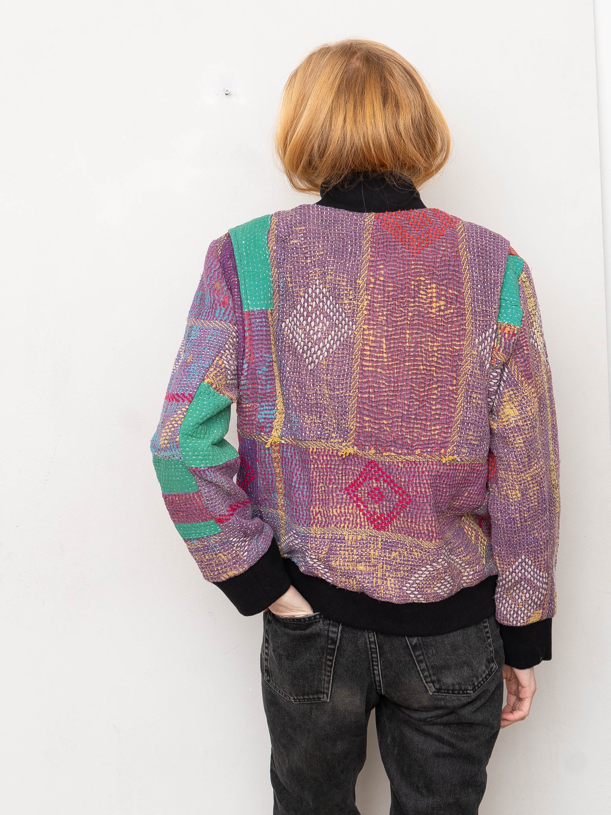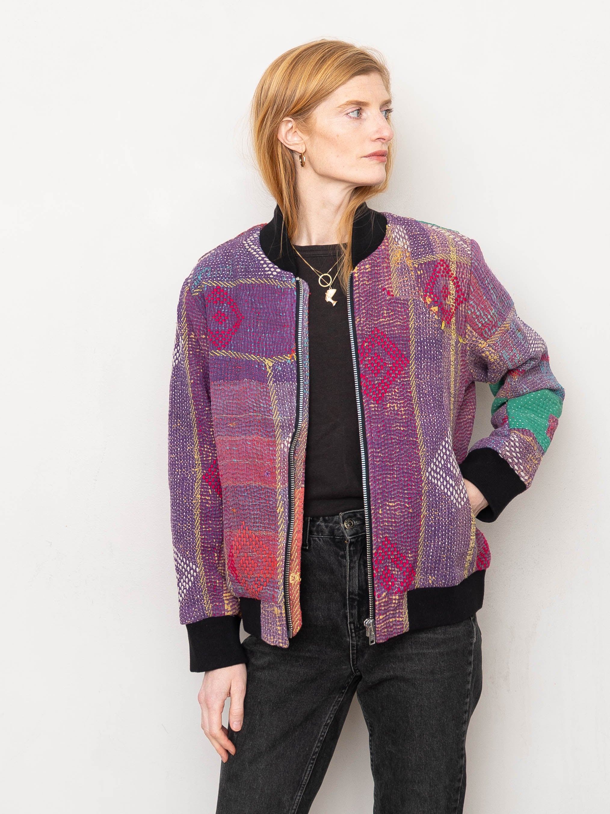 A One-of-a-kind bomber. Created from heirloom textiles.