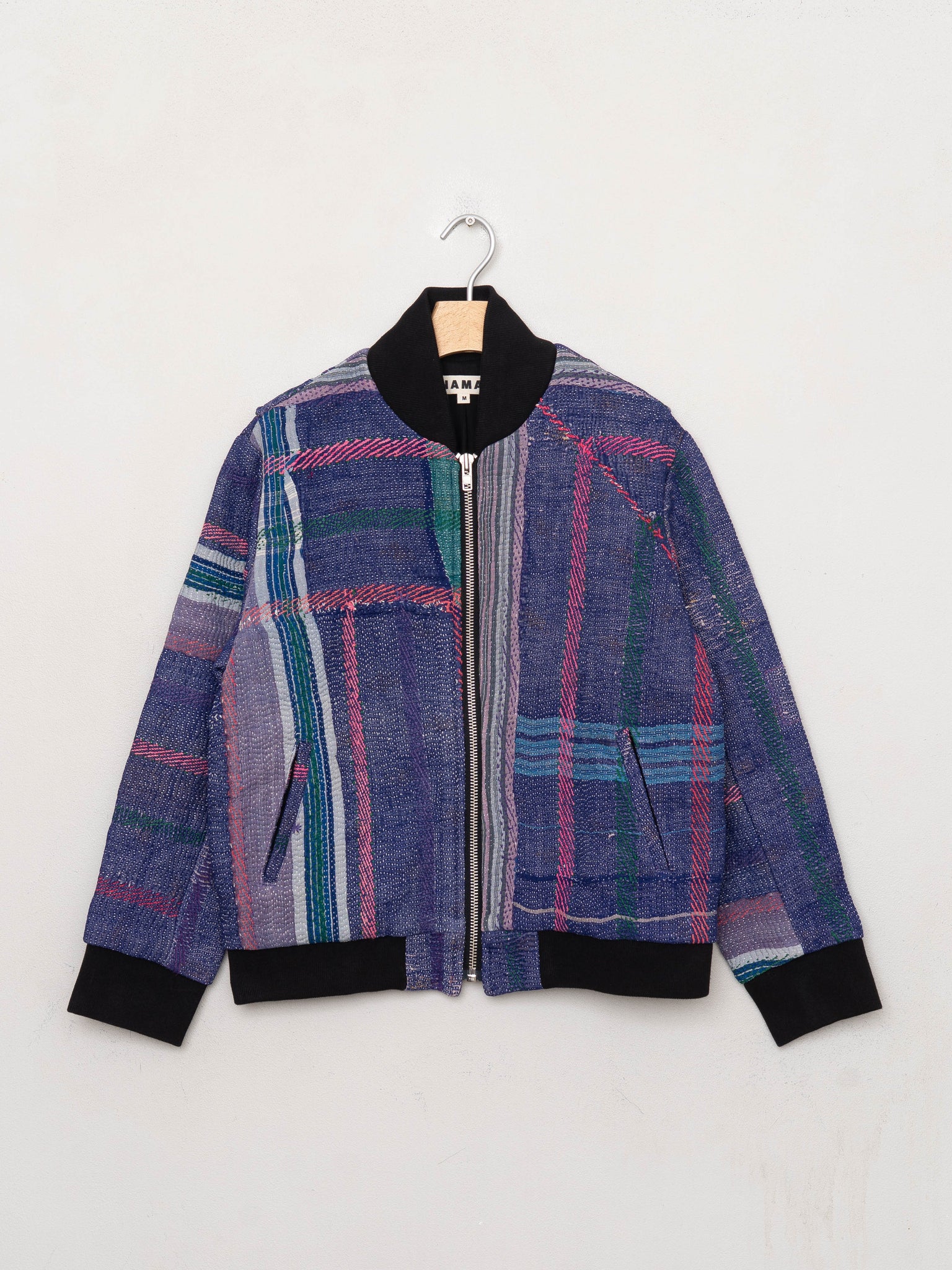 A One-of-a-kind bomber. Created from heirloom textiles.