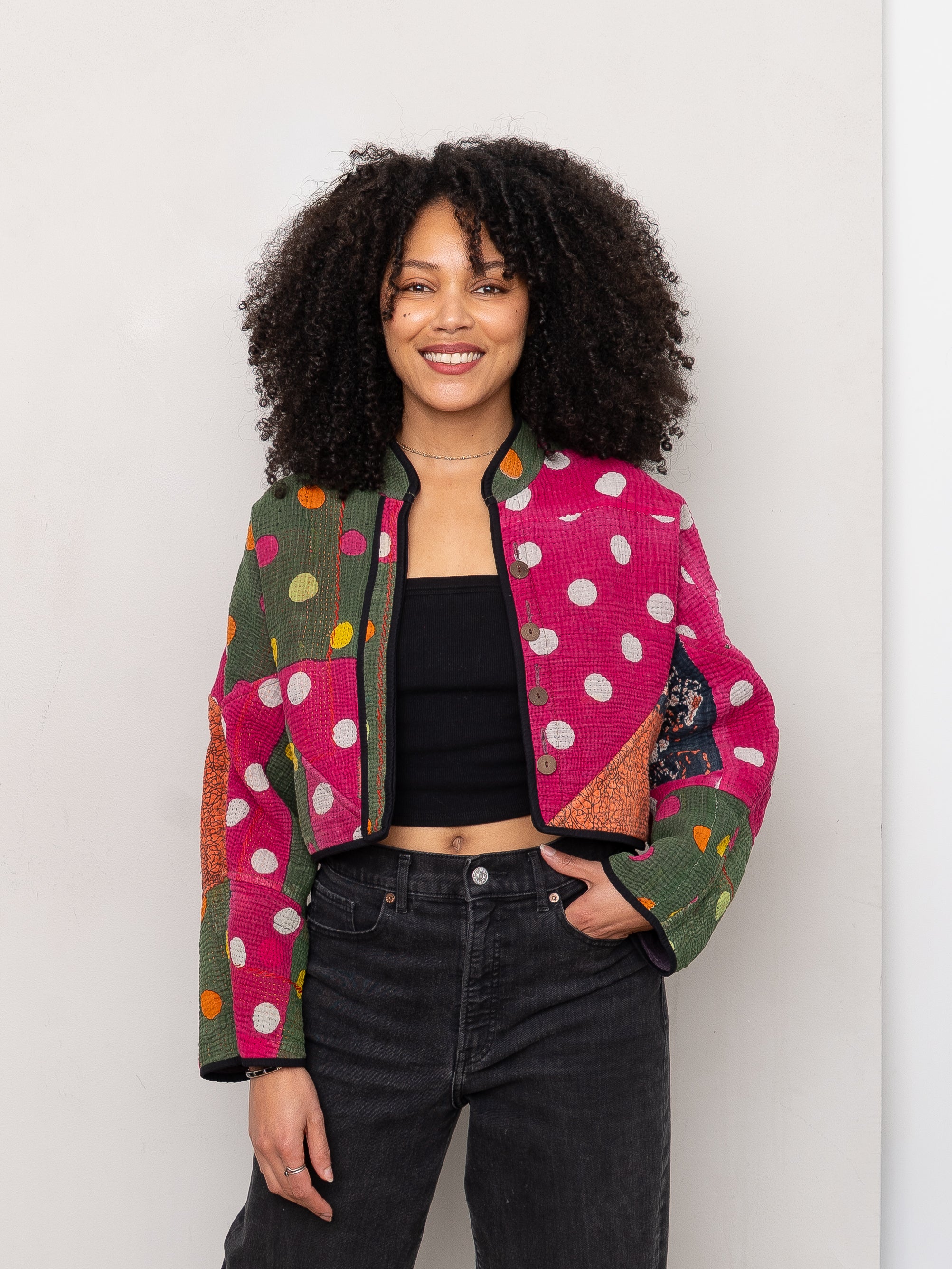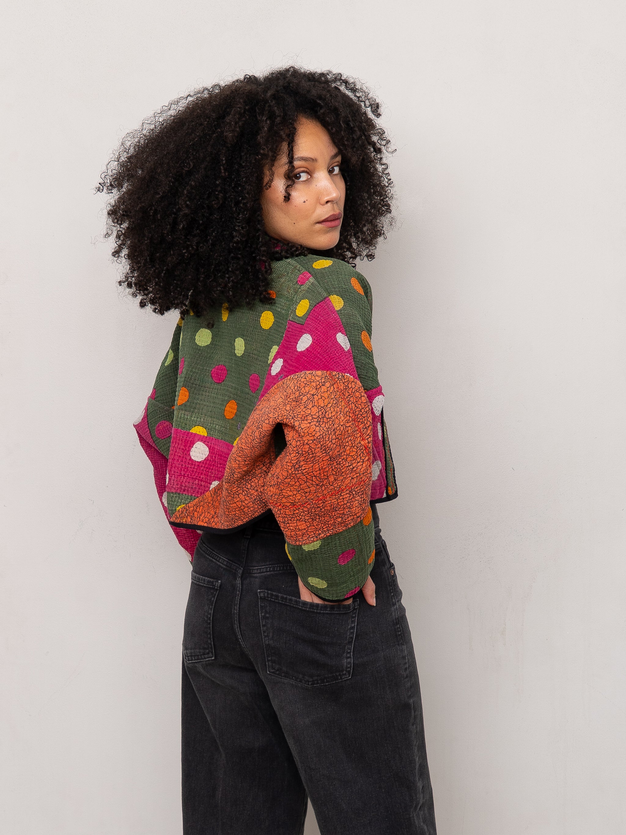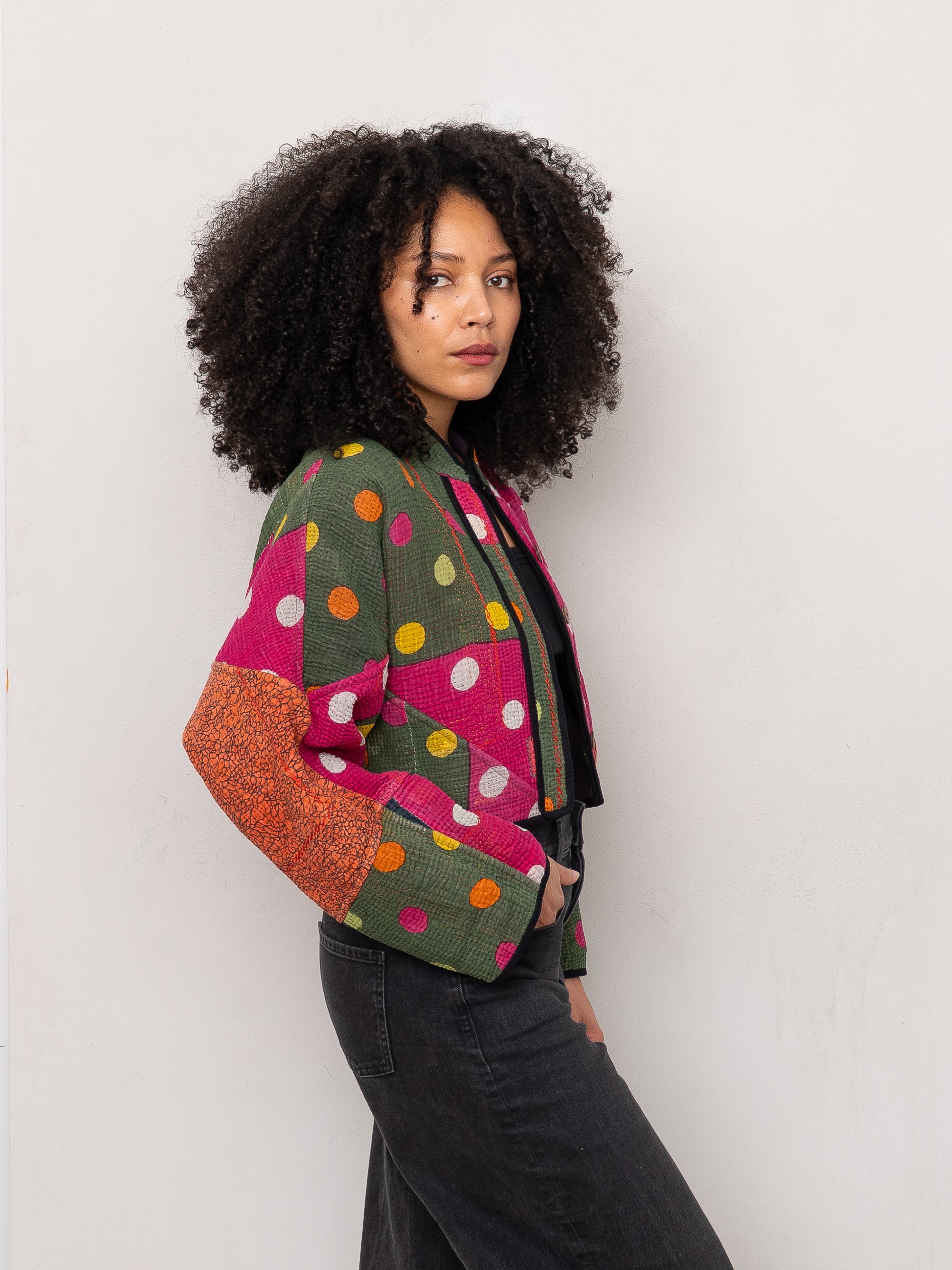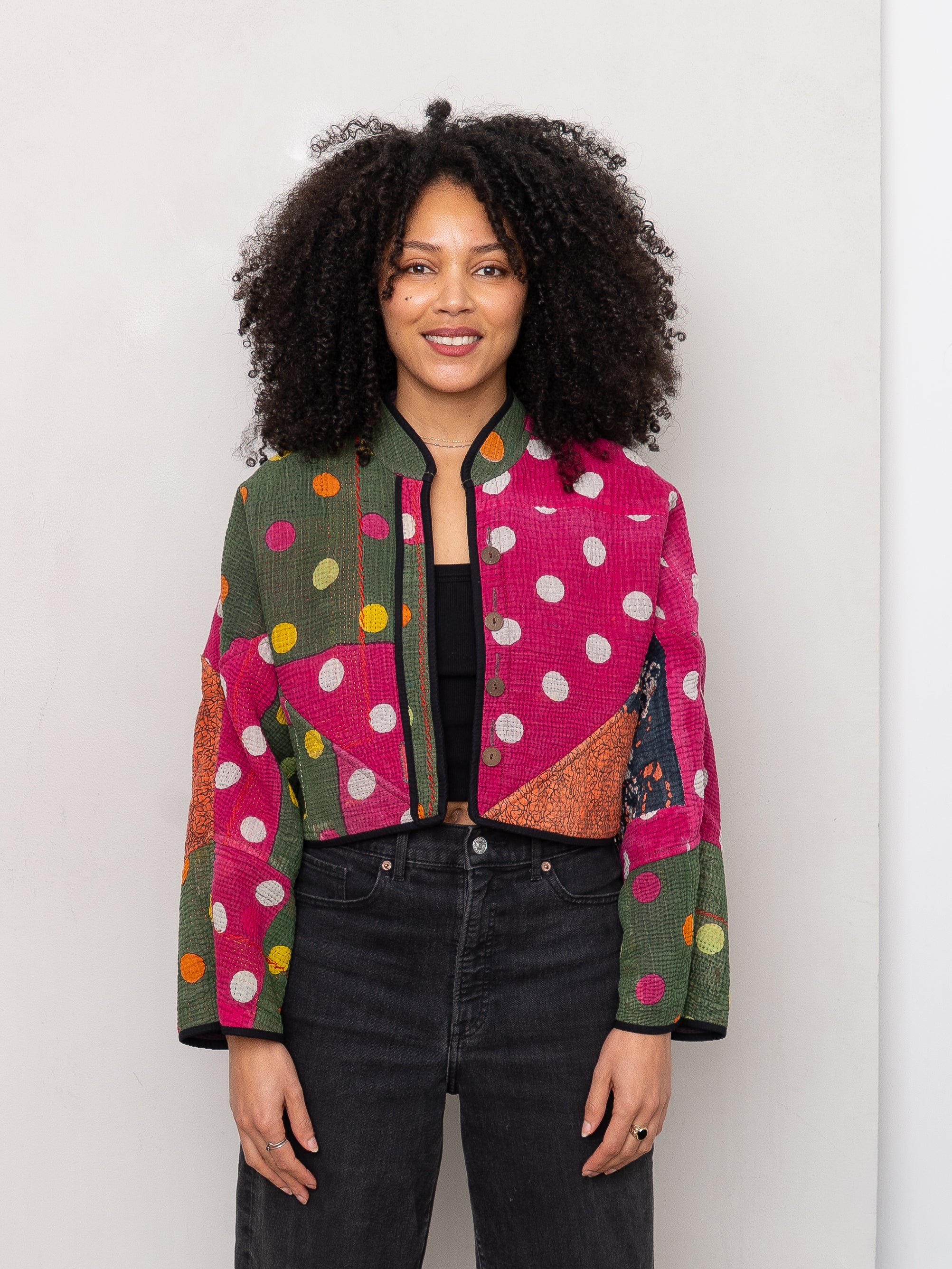 The Kaira Cropped Quilted Patchwork Kantha Jacket