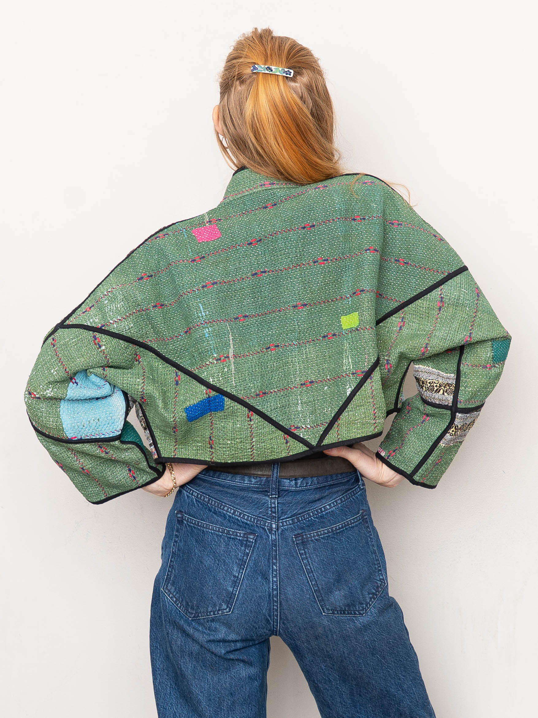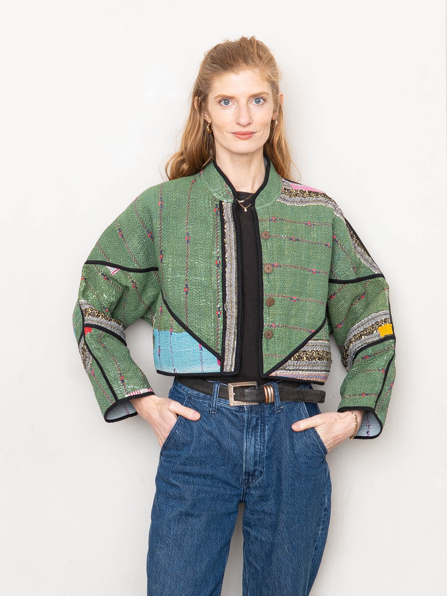 The Kaira Cropped Quilted Patchwork Kantha Jacket