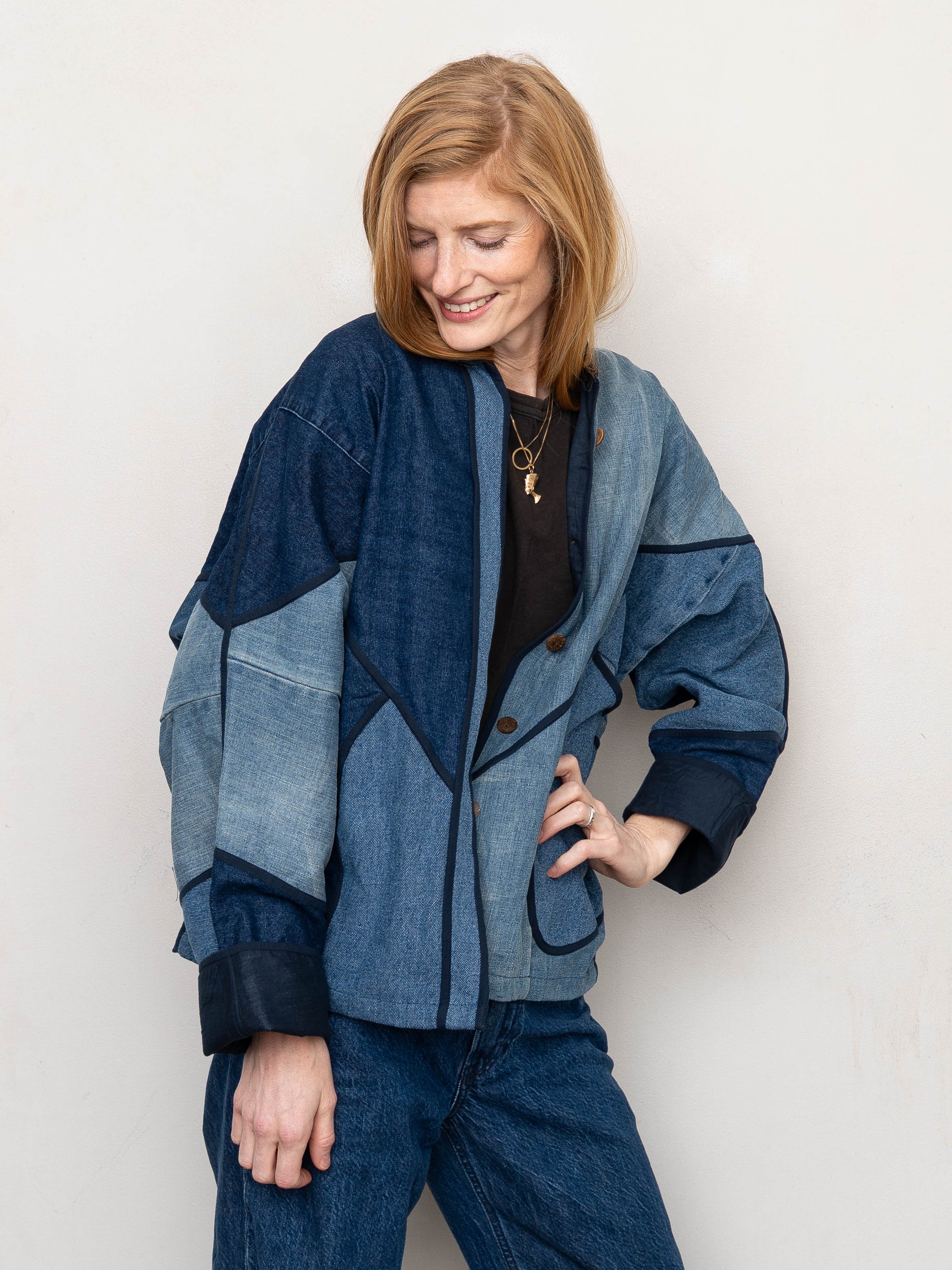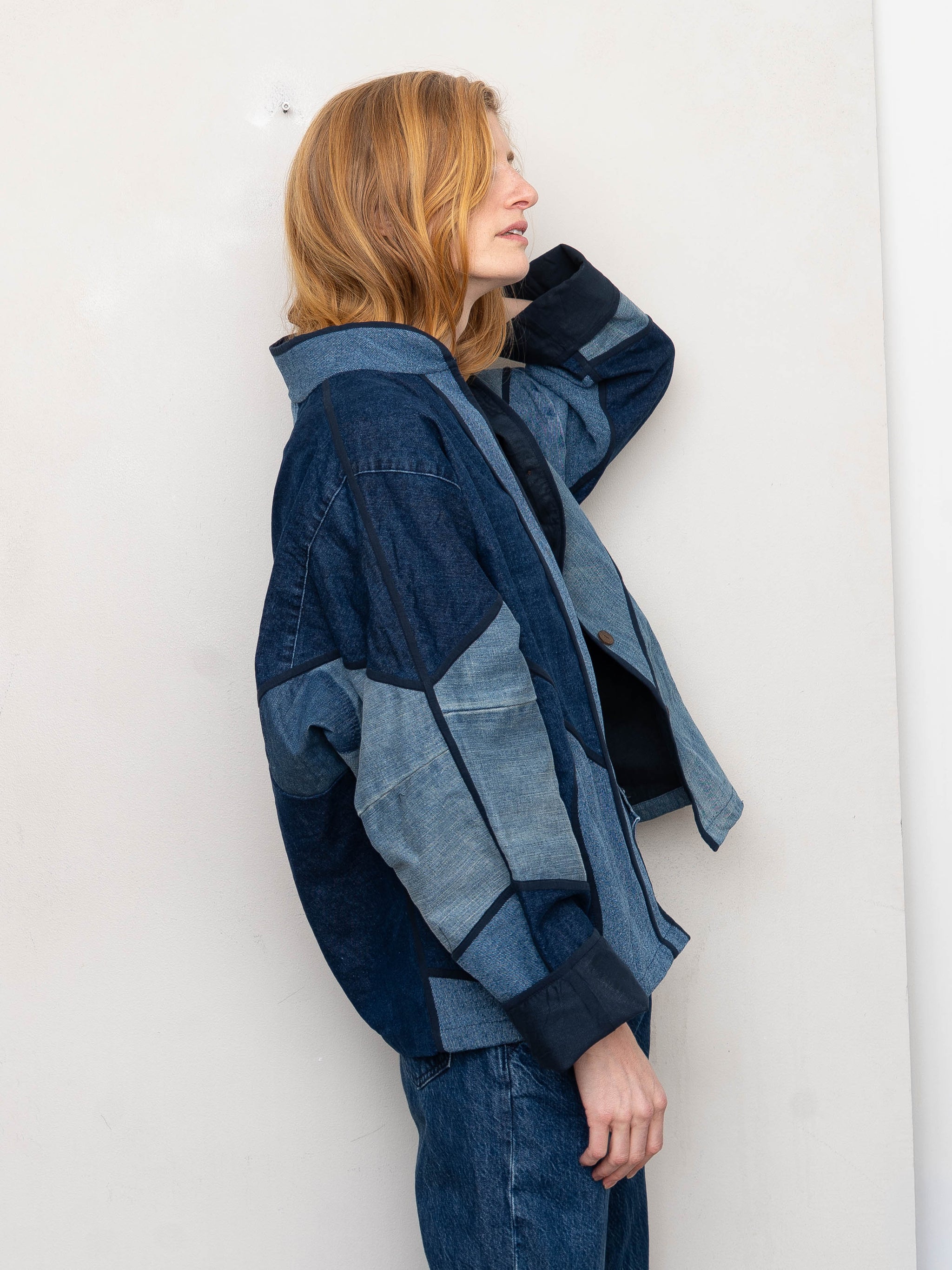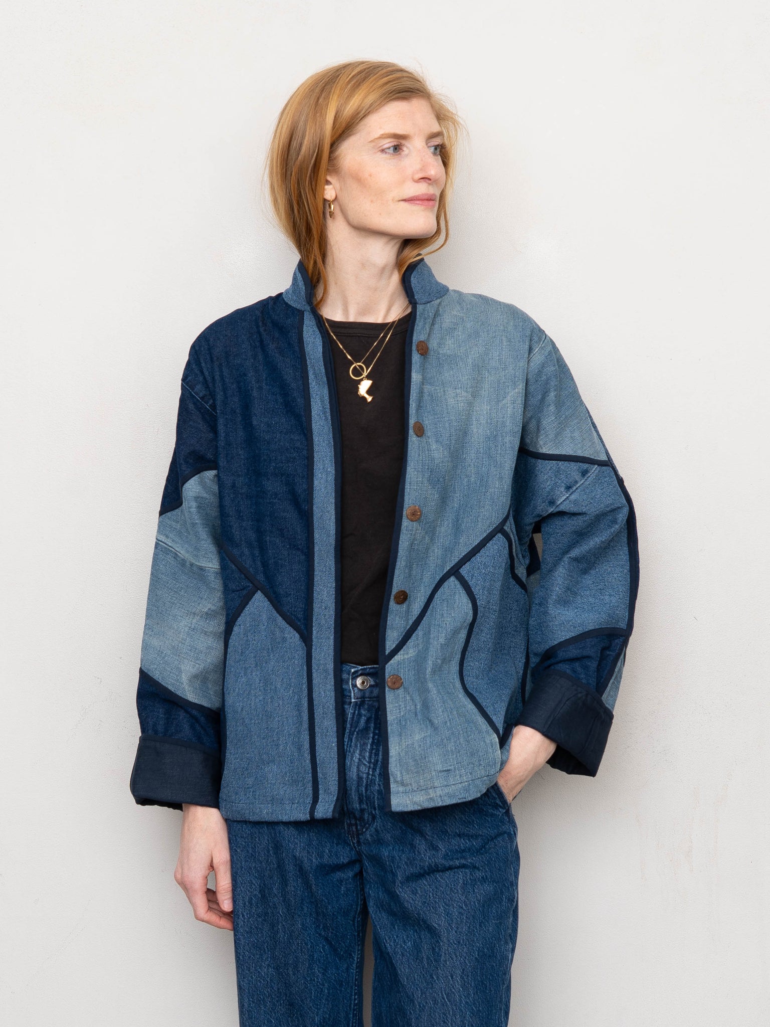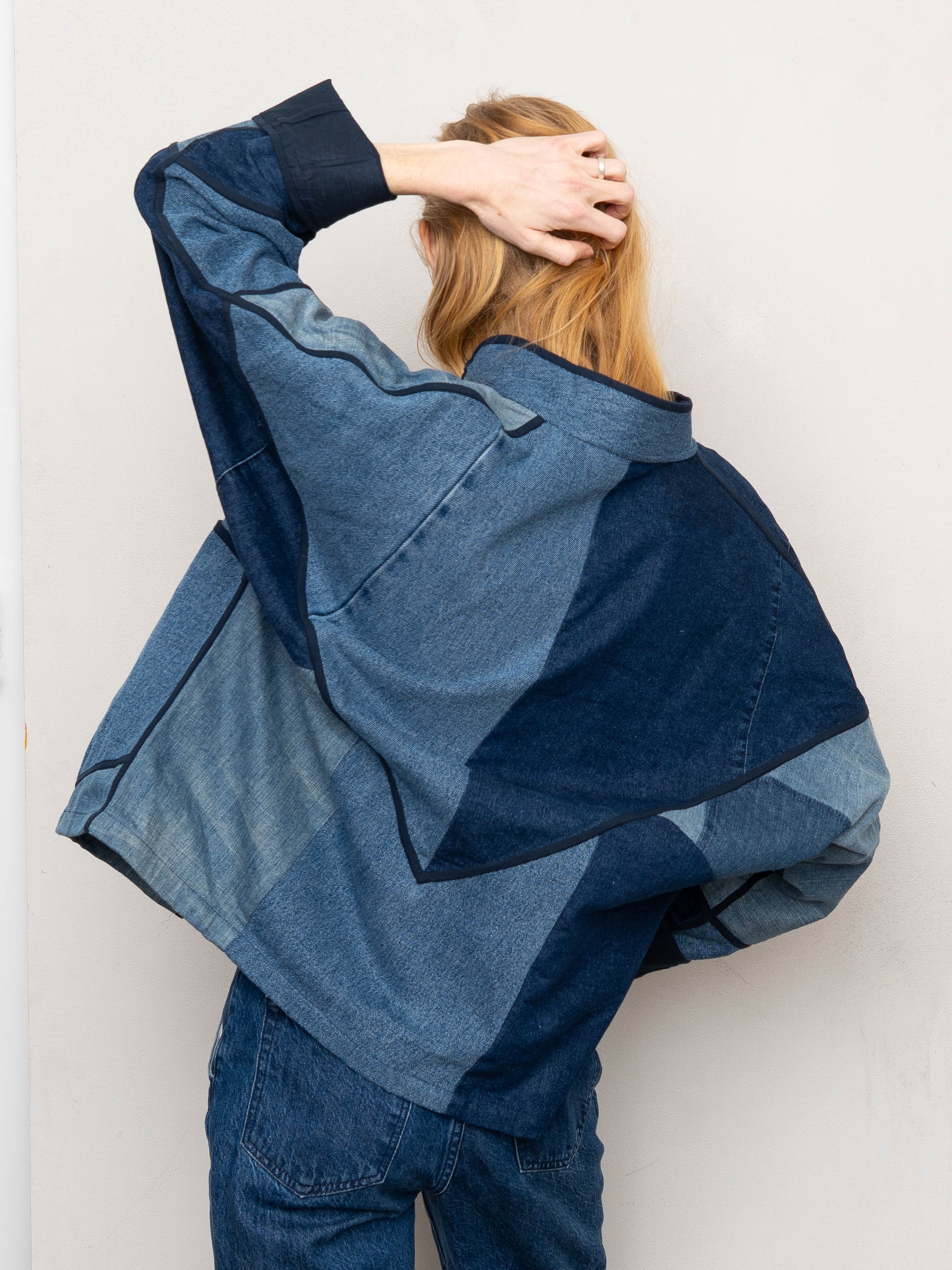 A ONE OF A KIND DENIM JACKET. CRAFTED FROM UPCYCLED JEANS.