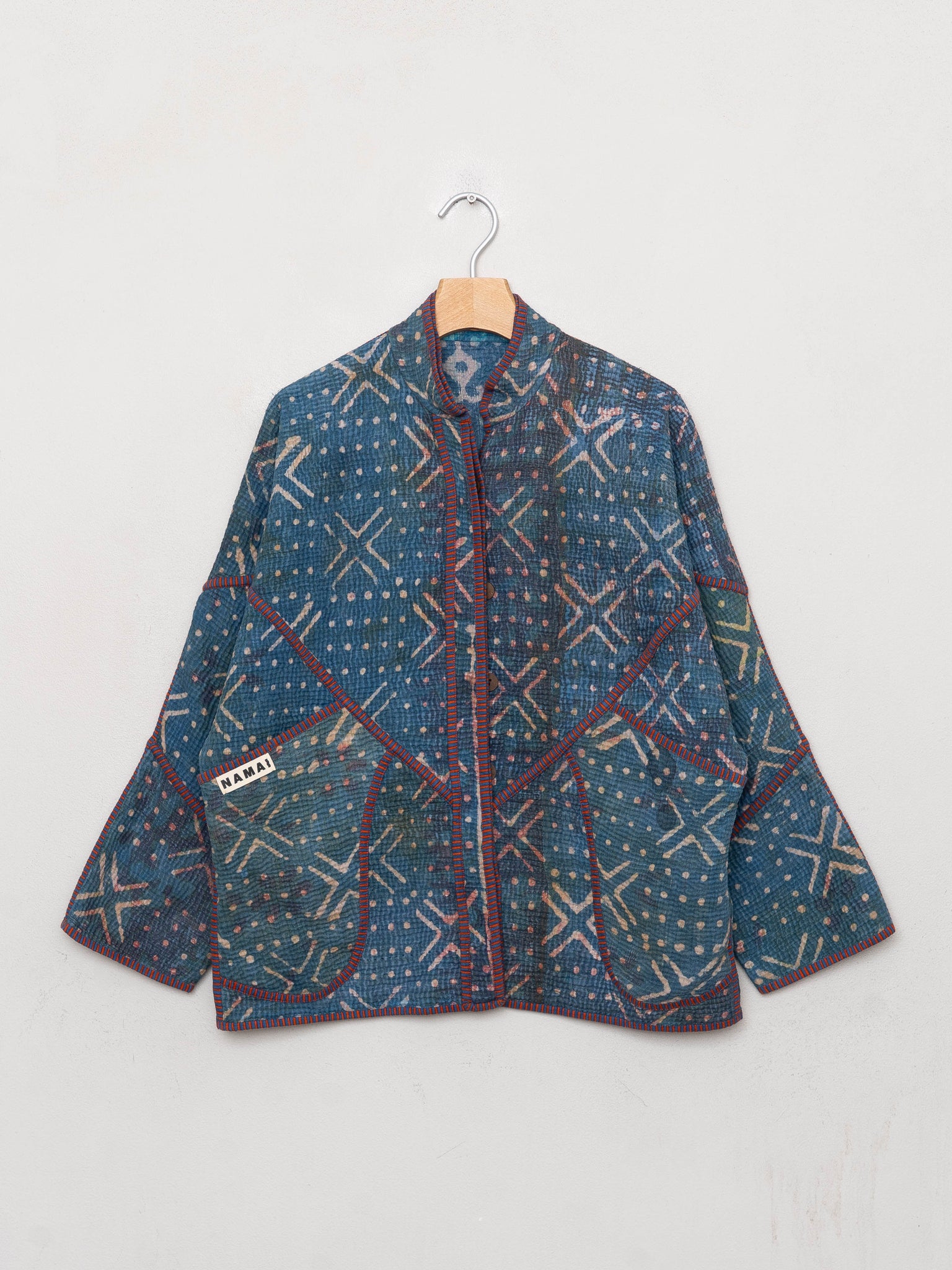Because the quilts are vintage, gentle signs of age — like fading, small repairs, or texture variations — are expected and part of the textile’s character. Namai also offers lifetime repairs to help keep your jacket in long-term rotation.
