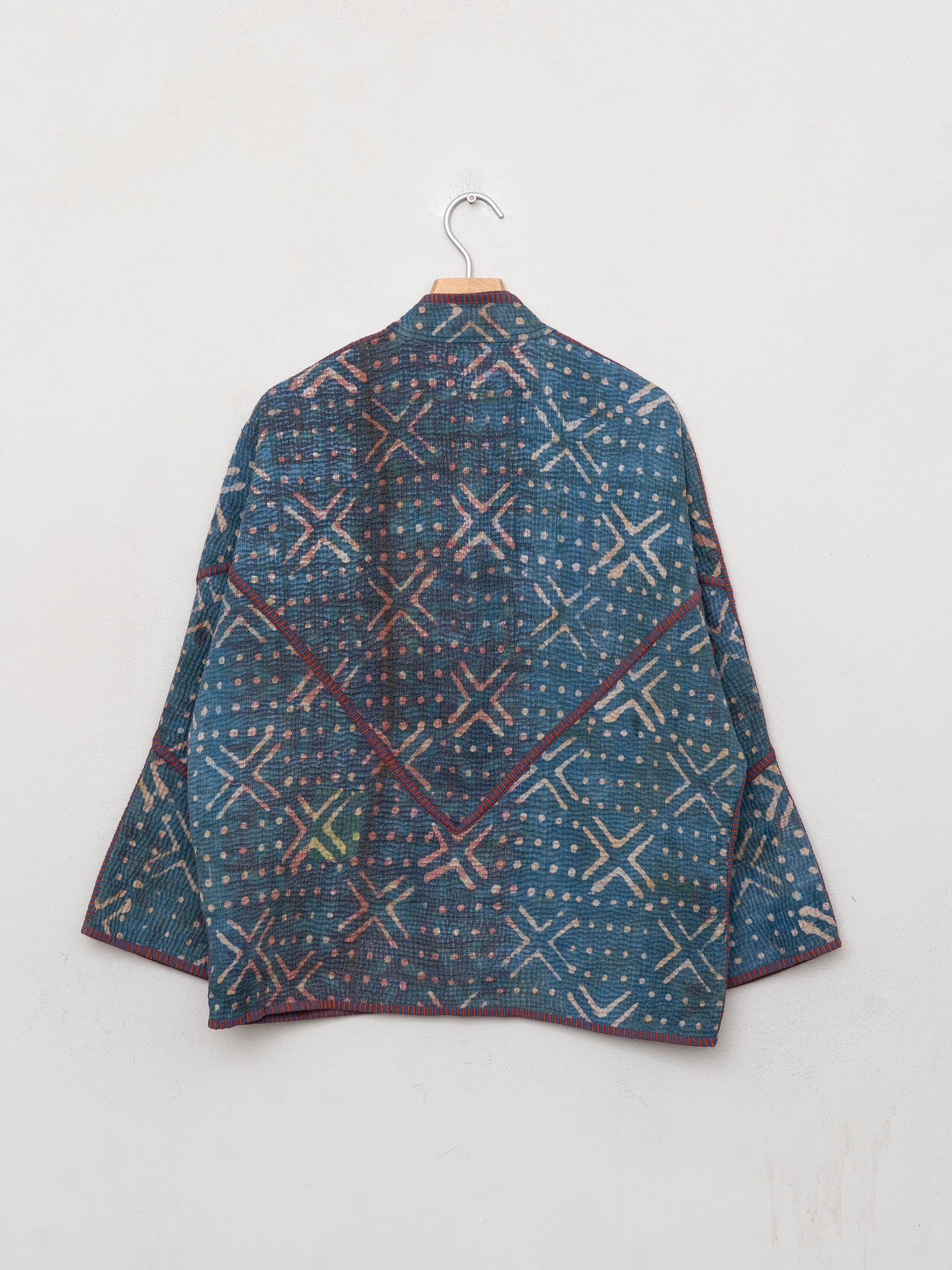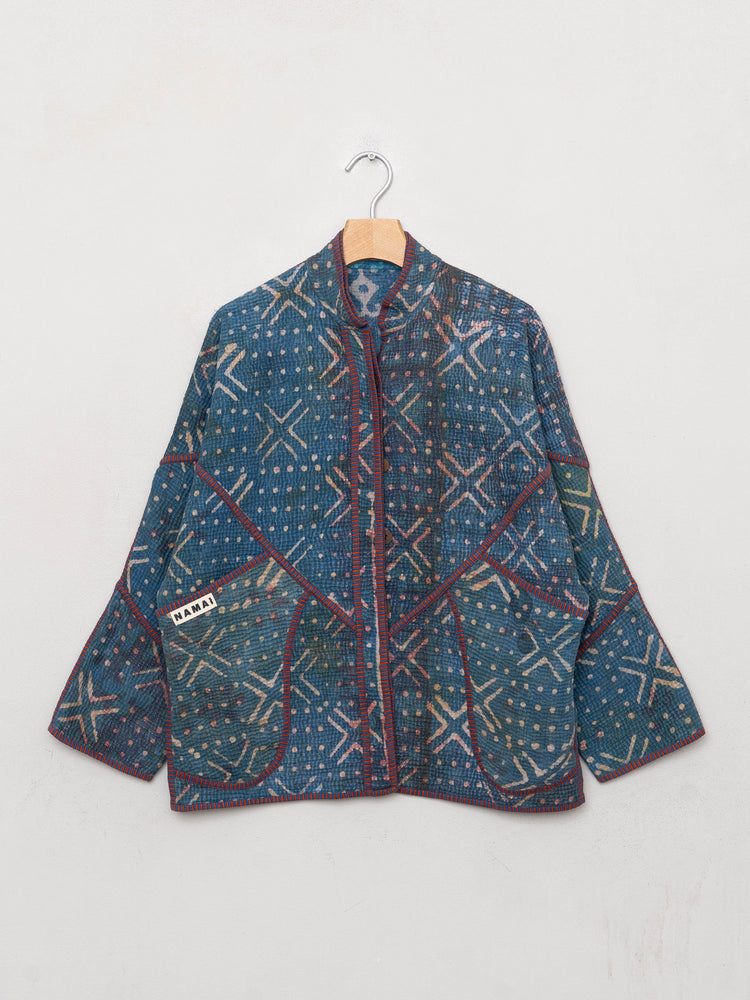 This Jacket features mud resist motifs dyed with plant based dyes over the Vintage Kantha textiles.