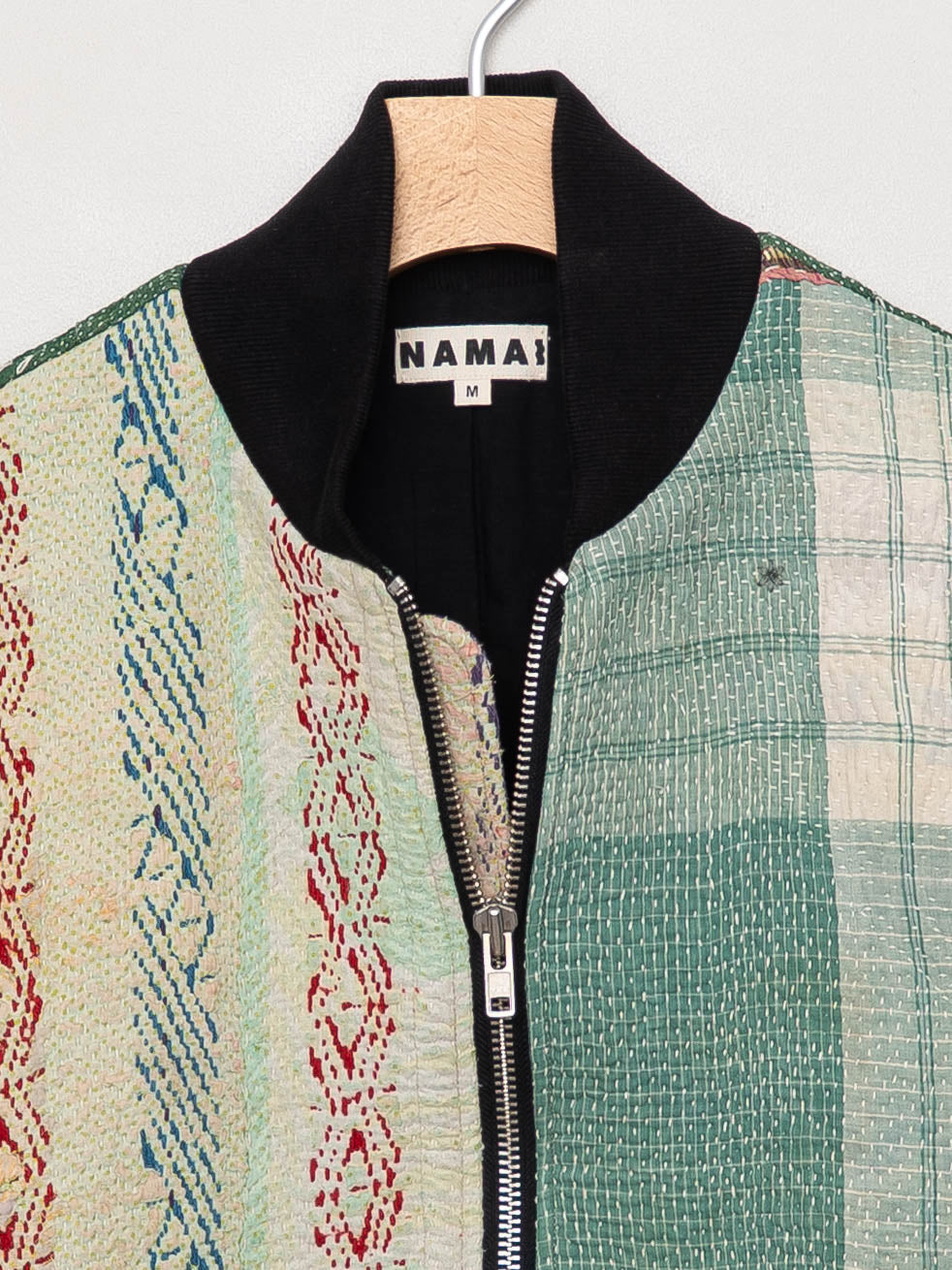 A One-of-a-kind bomber. Created from heirloom textiles.