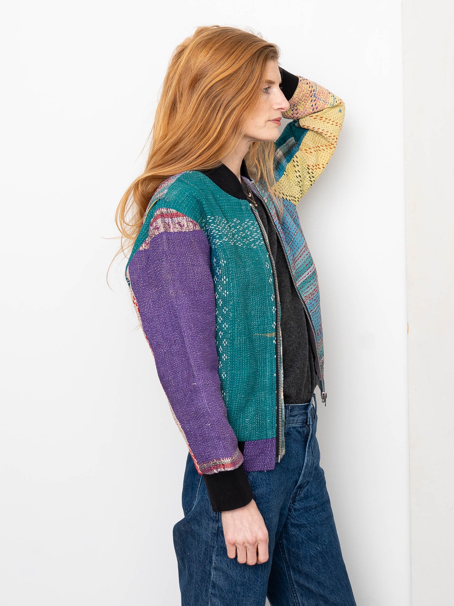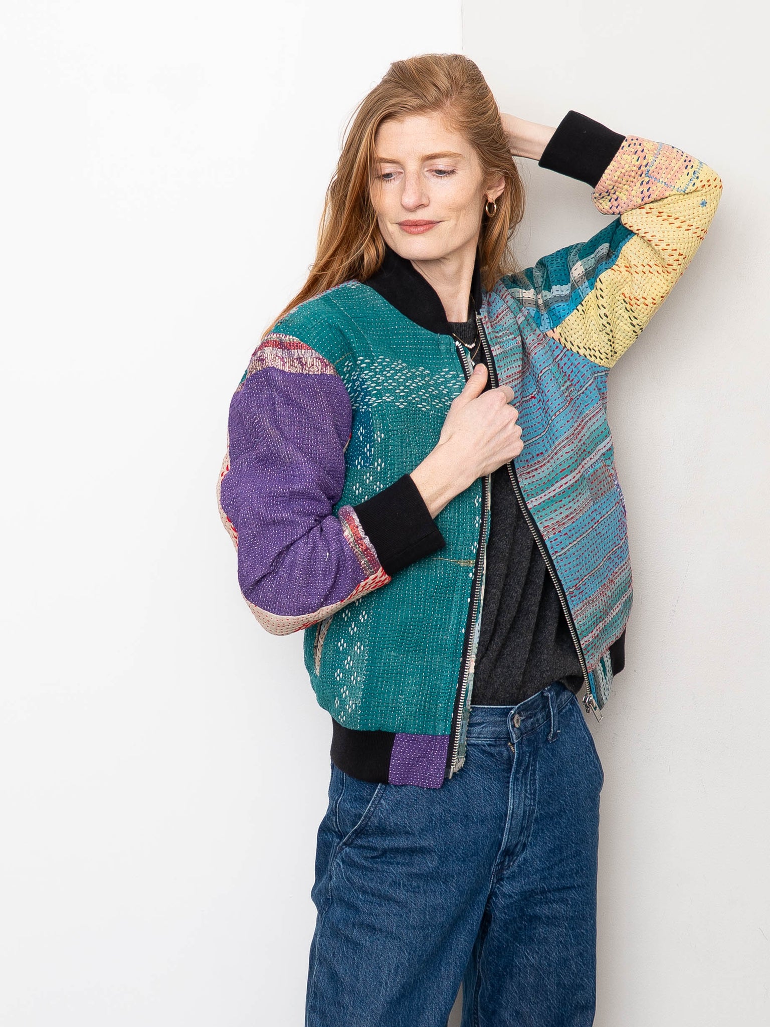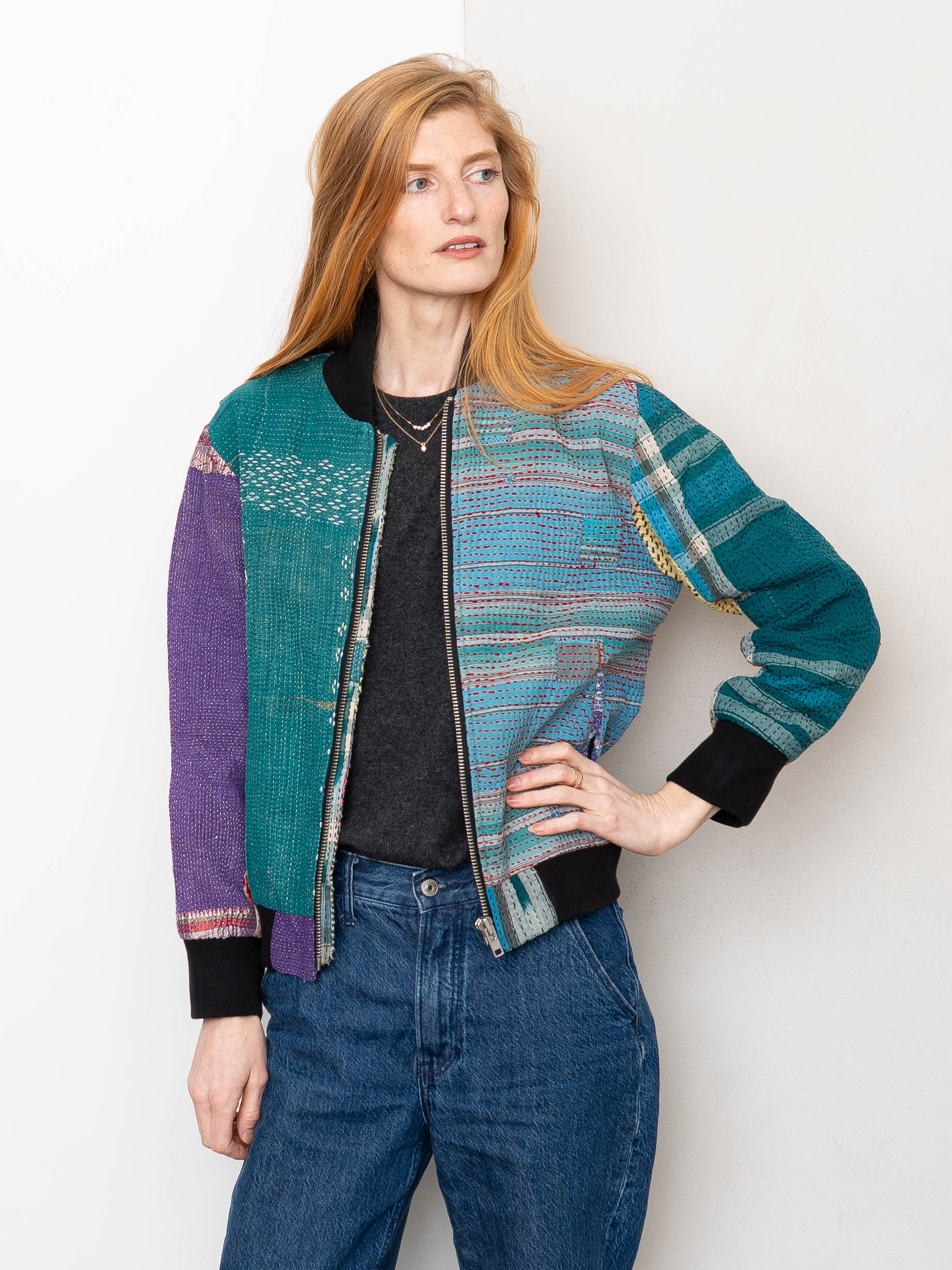 A One-of-a-kind bomber. Created from heirloom textiles.