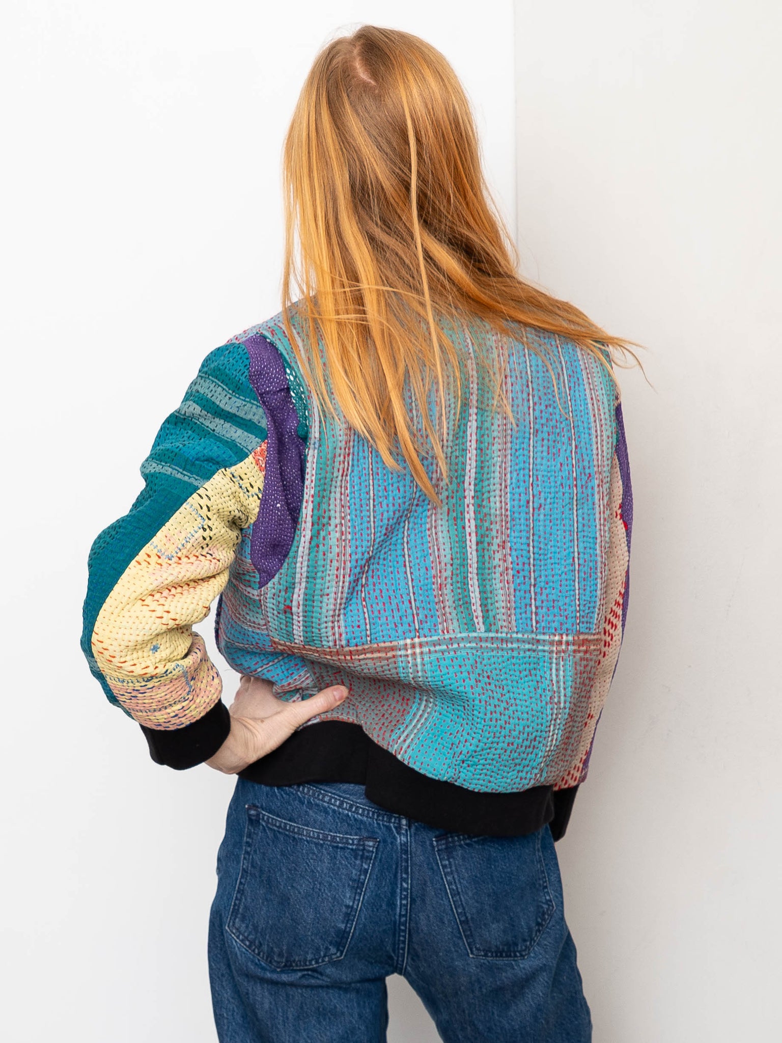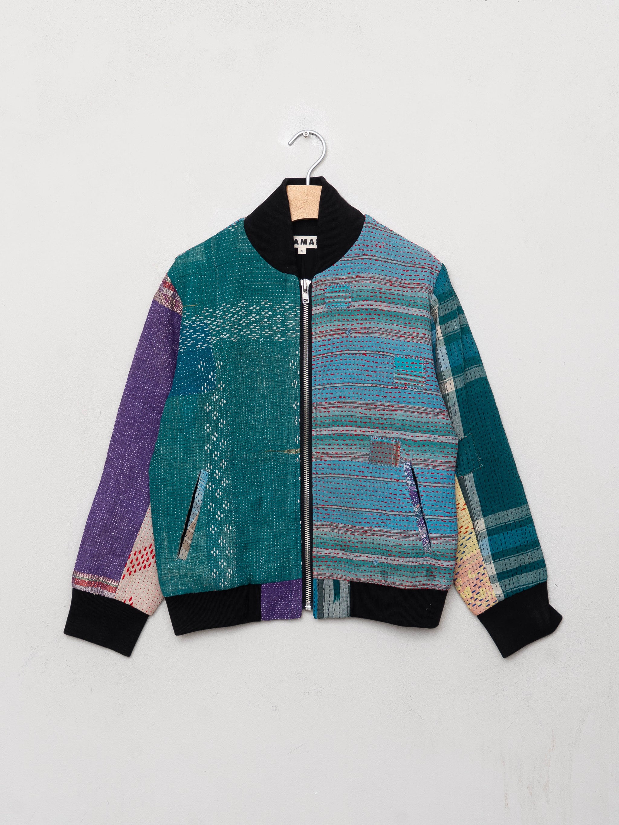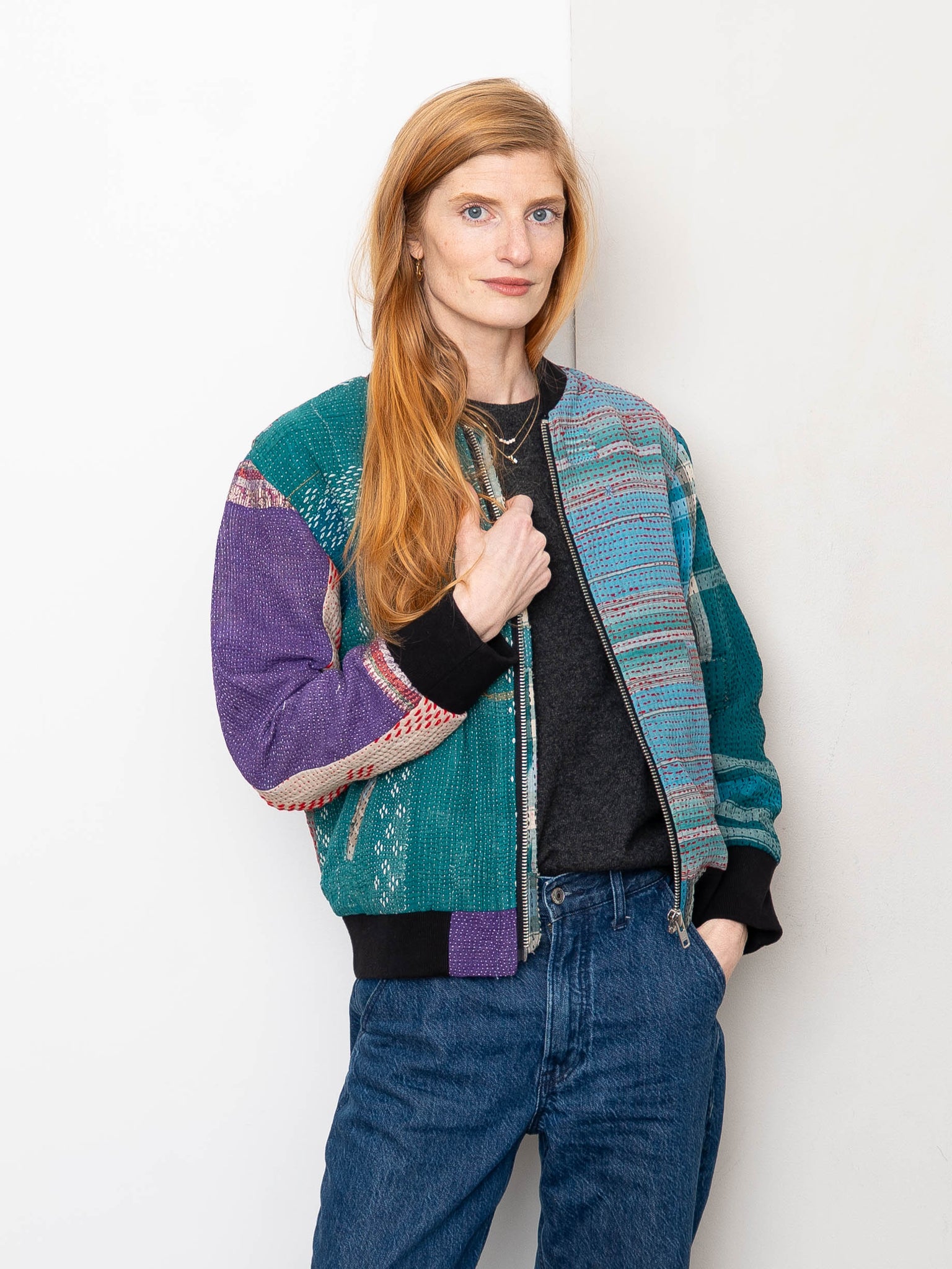 A One-of-a-kind bomber. Created from heirloom textiles.