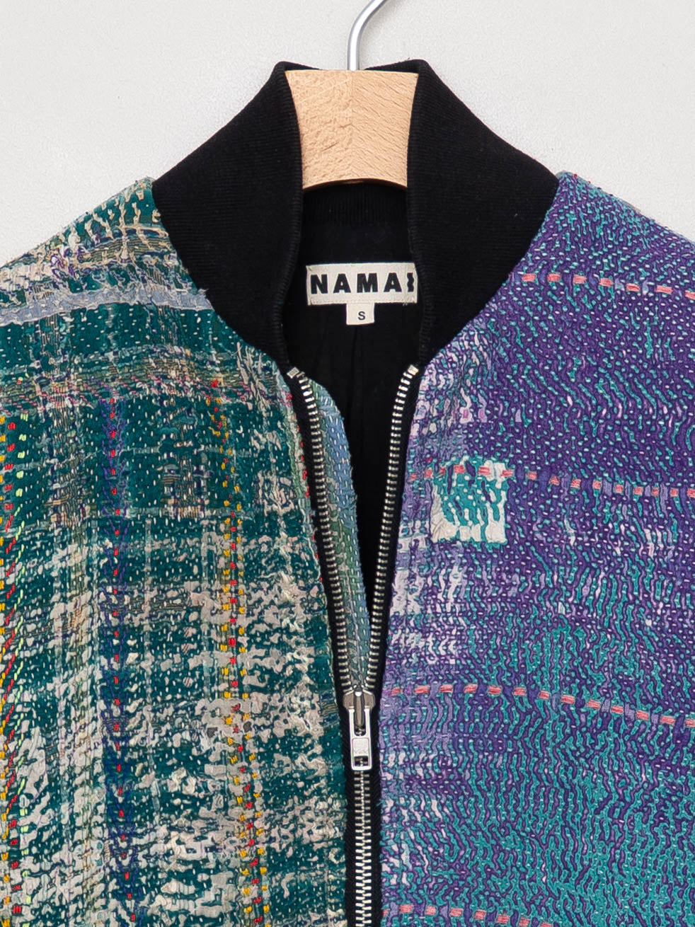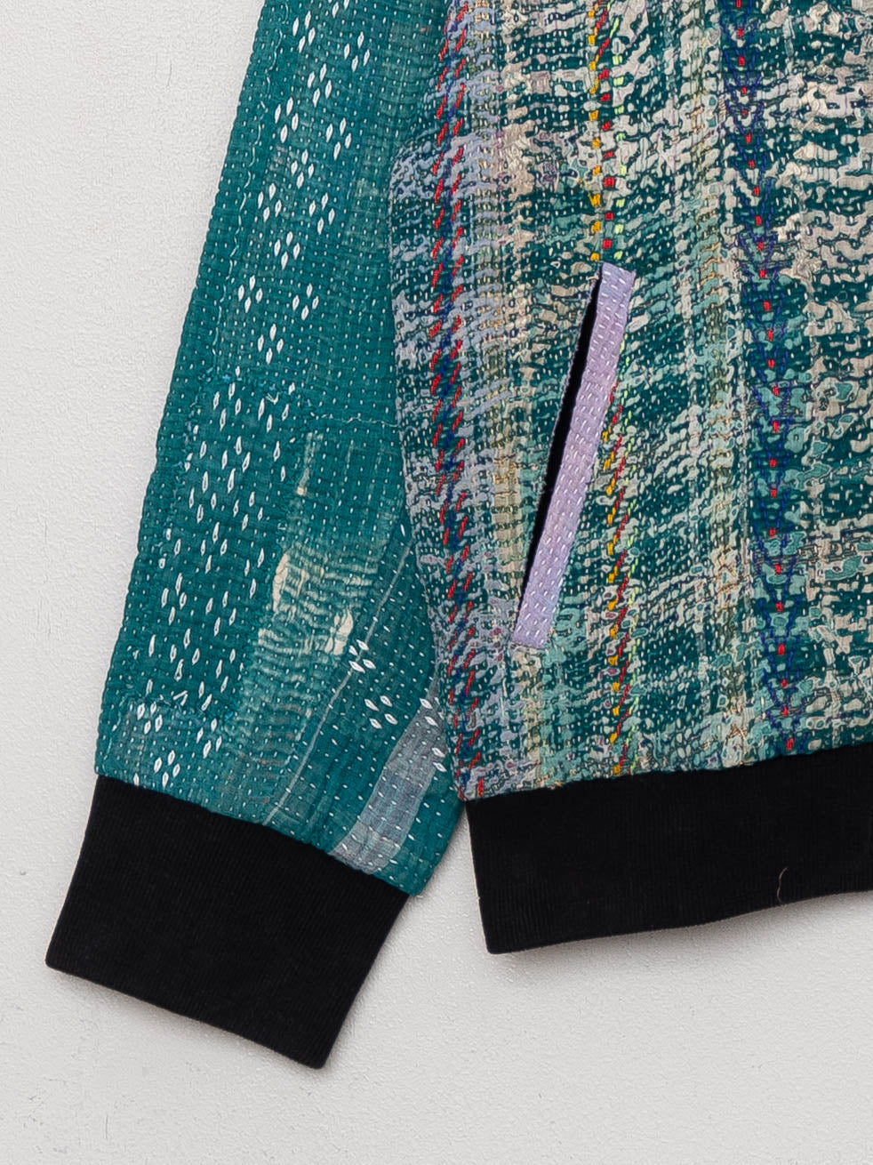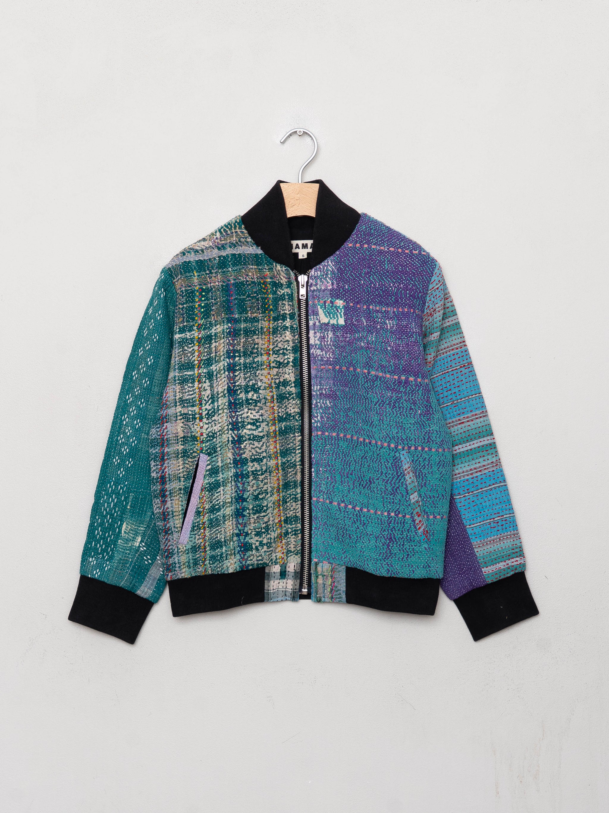 A One-of-a-kind bomber. Created from heirloom textiles.
