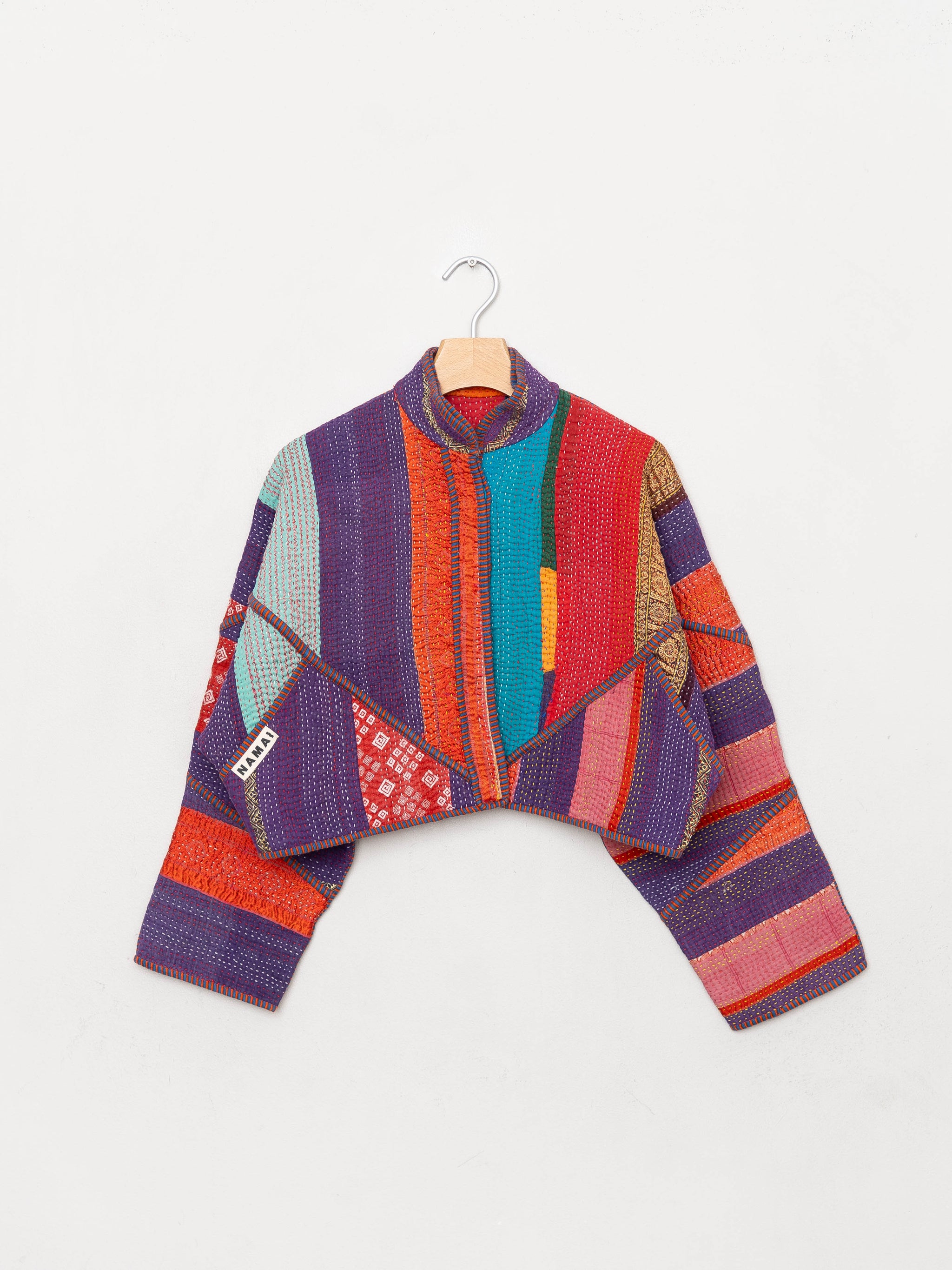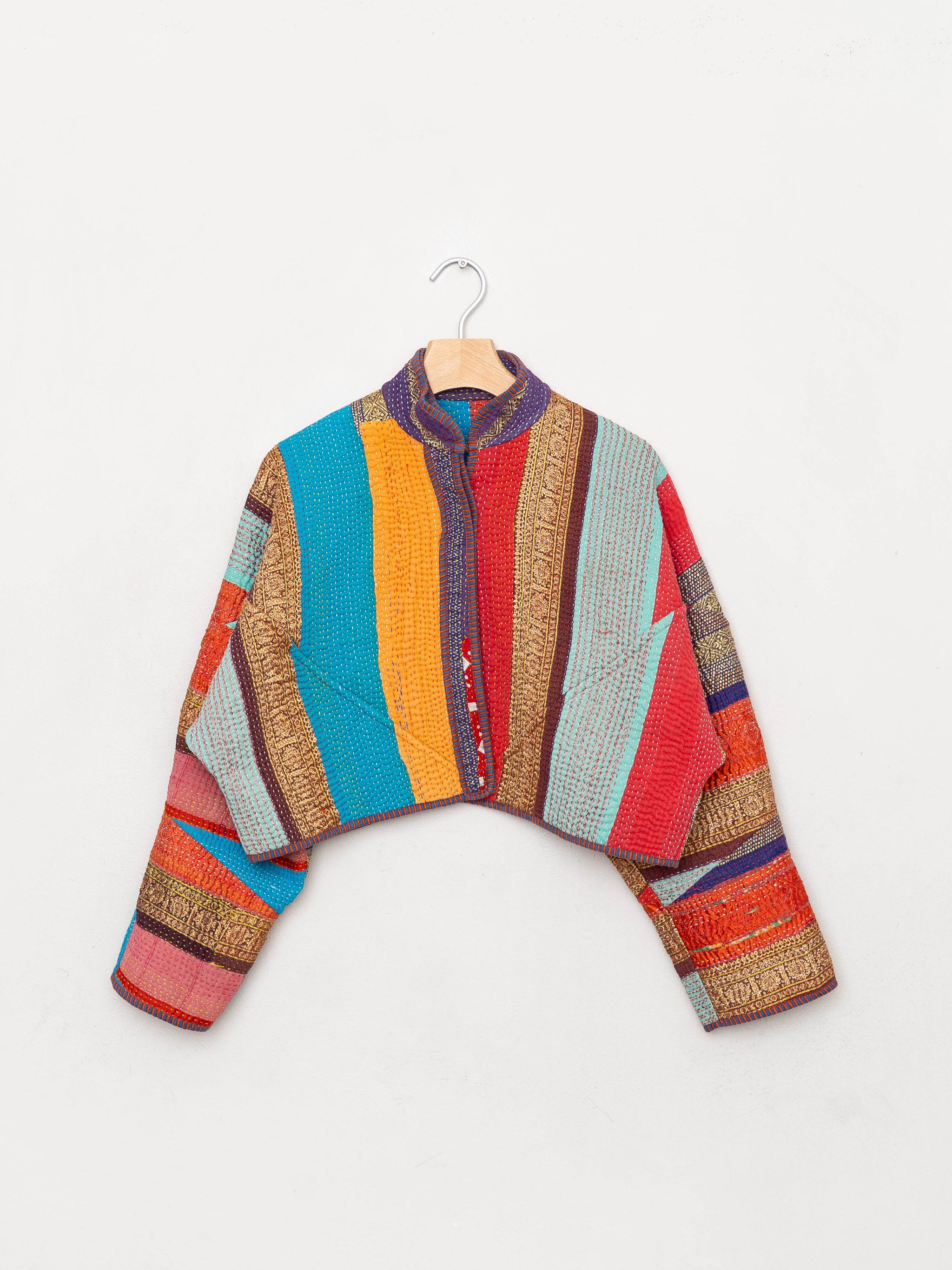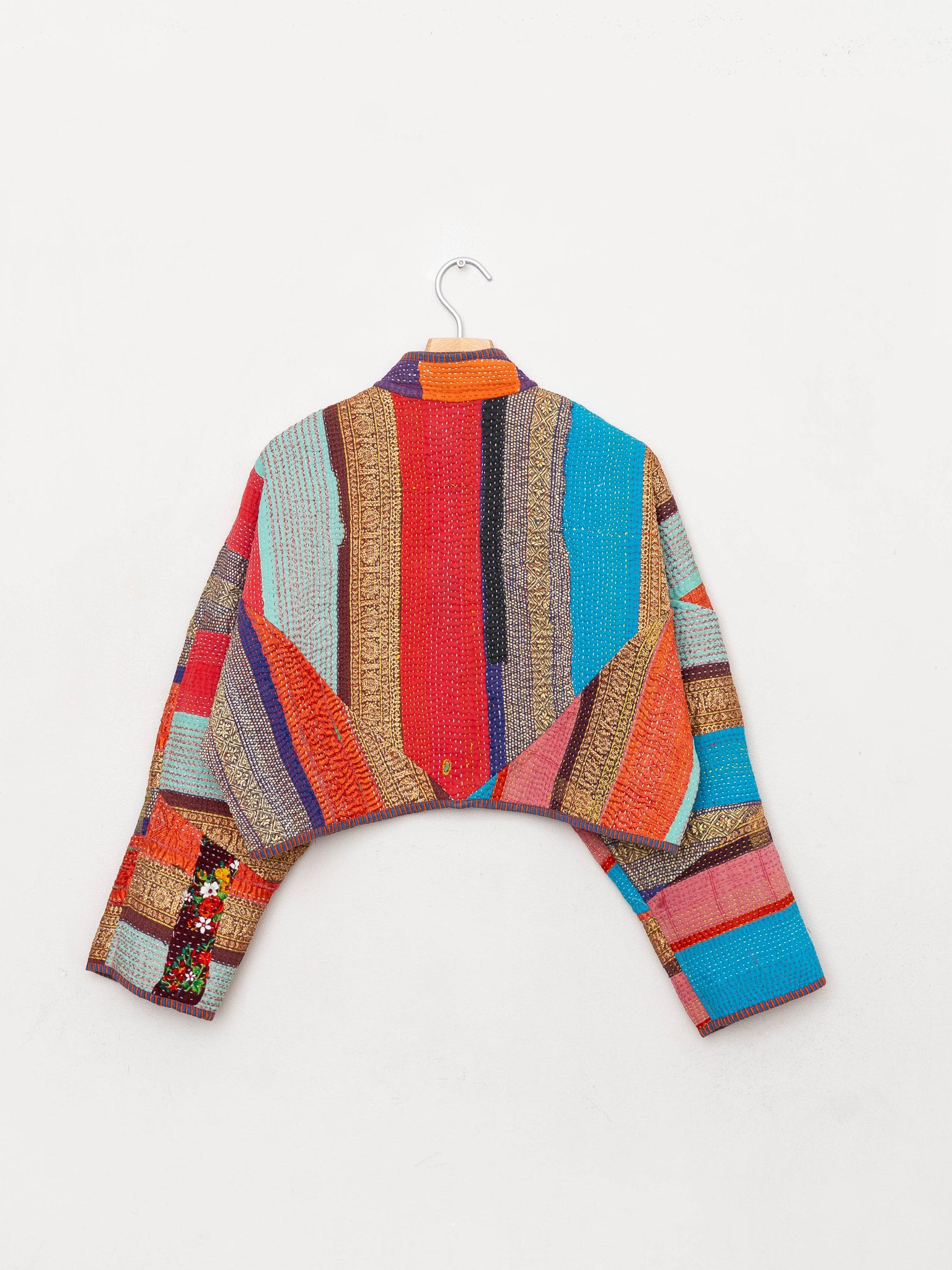 The Kaira Cropped Quilted Patchwork Kantha Jacket