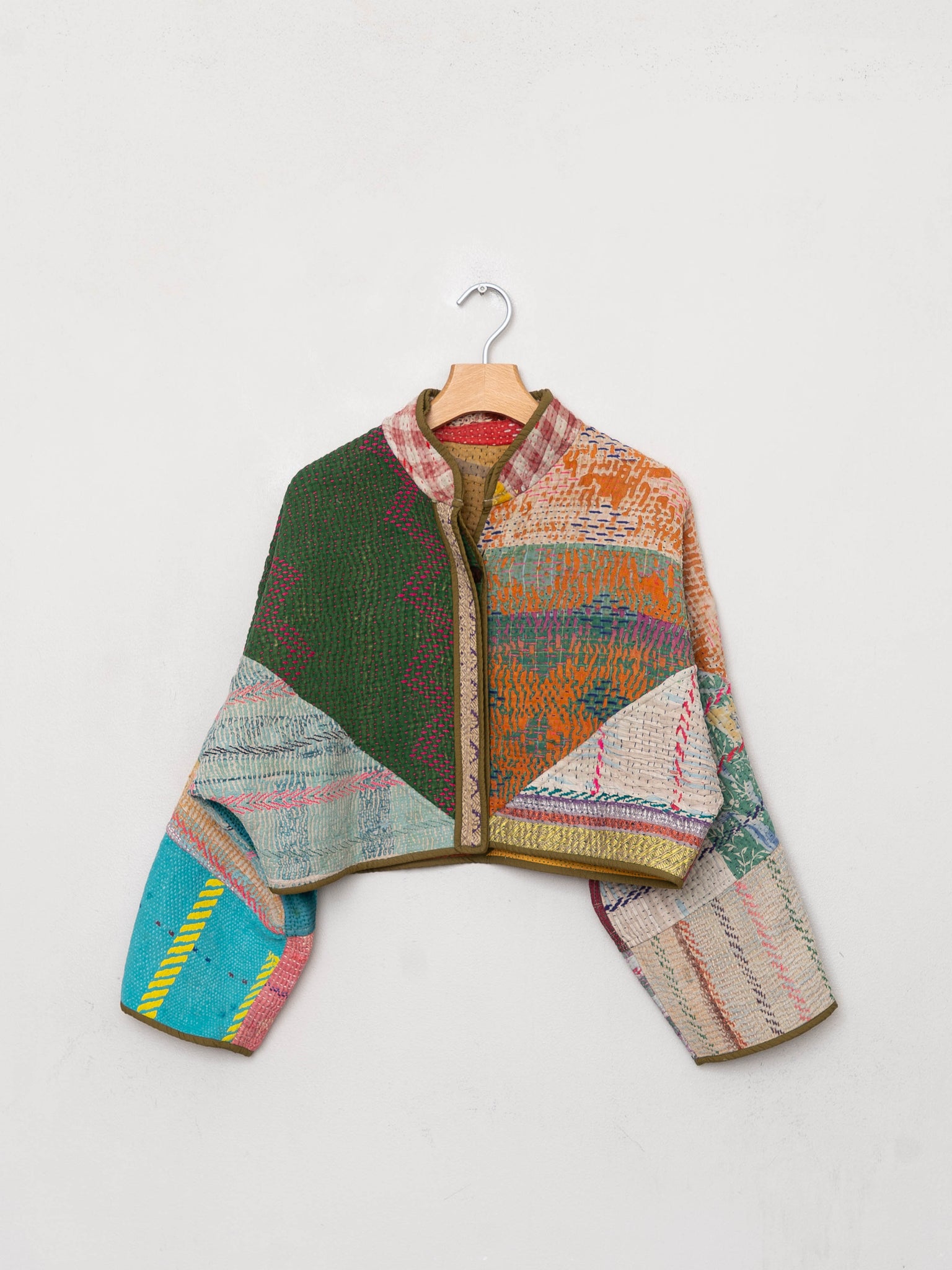 The Kaira Cropped Quilted Patchwork Kantha Jacket