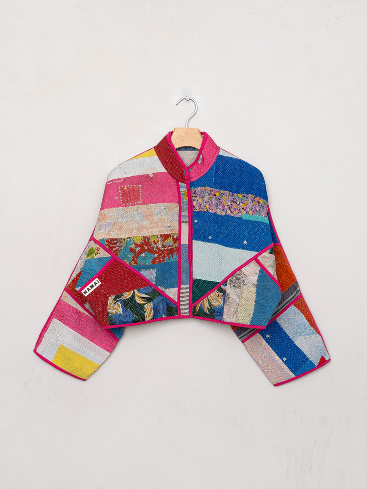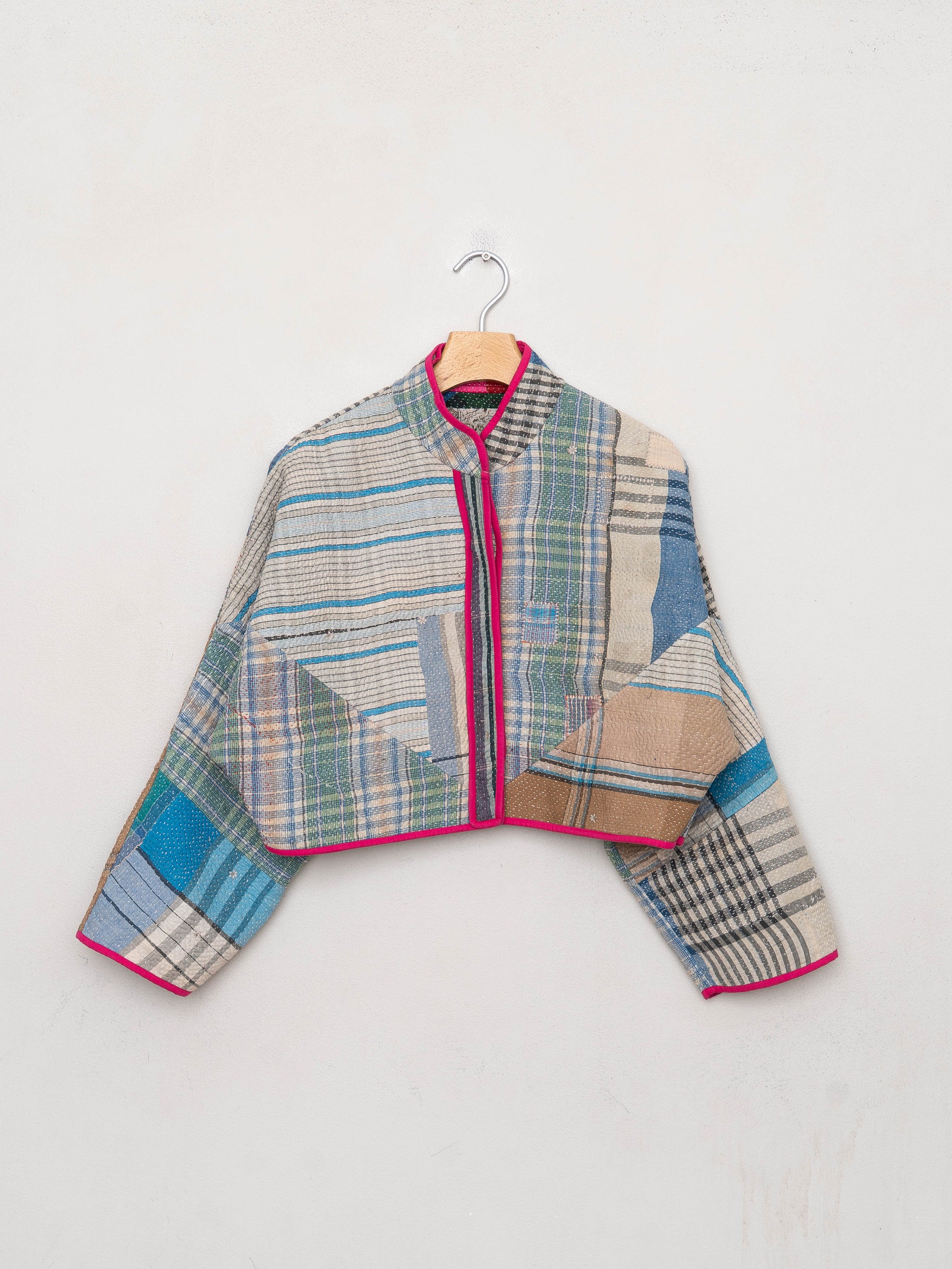The Kaira Cropped Quilted Patchwork Kantha Jacket