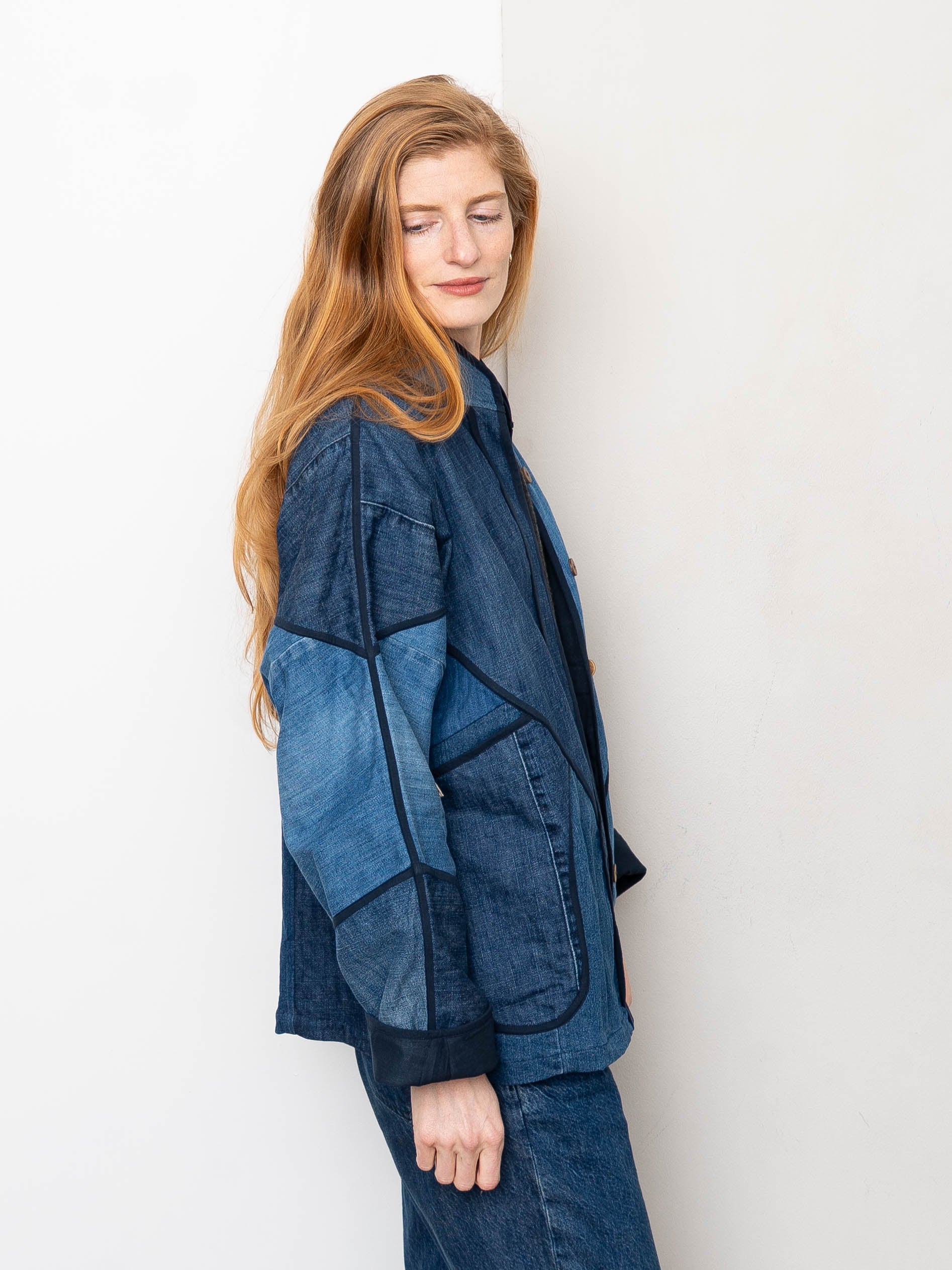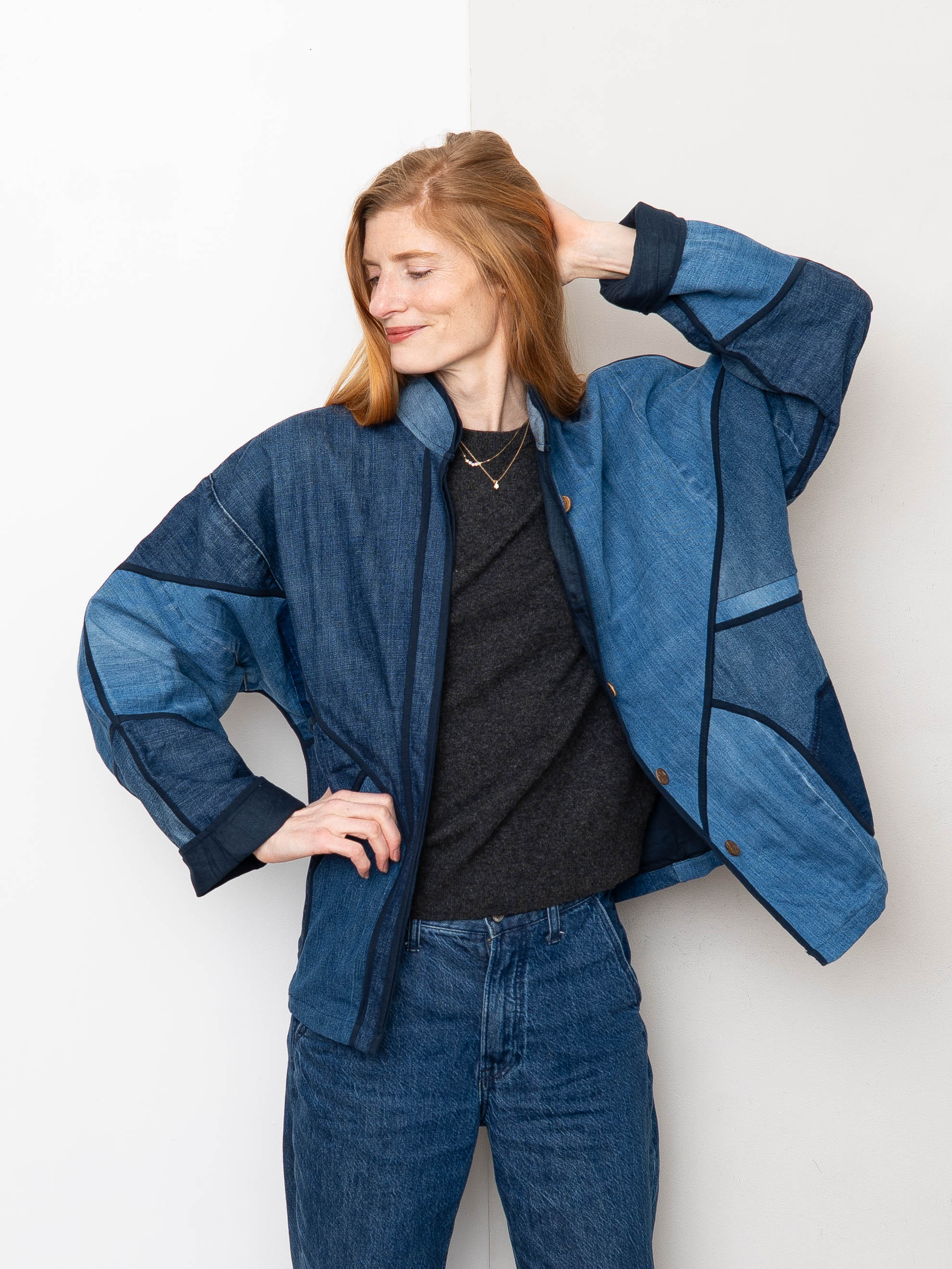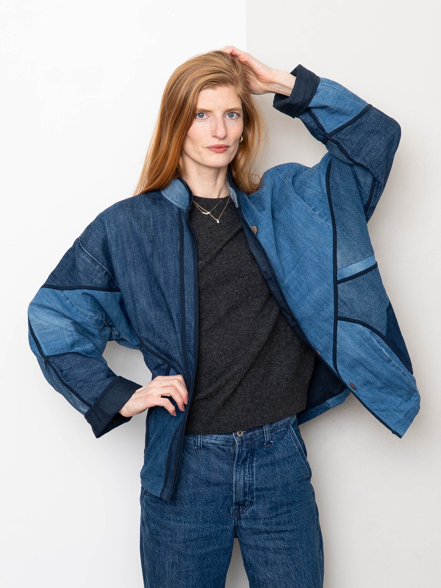 A ONE OF A KIND DENIM JACKET. CRAFTED FROM UPCYCLED JEANS.
