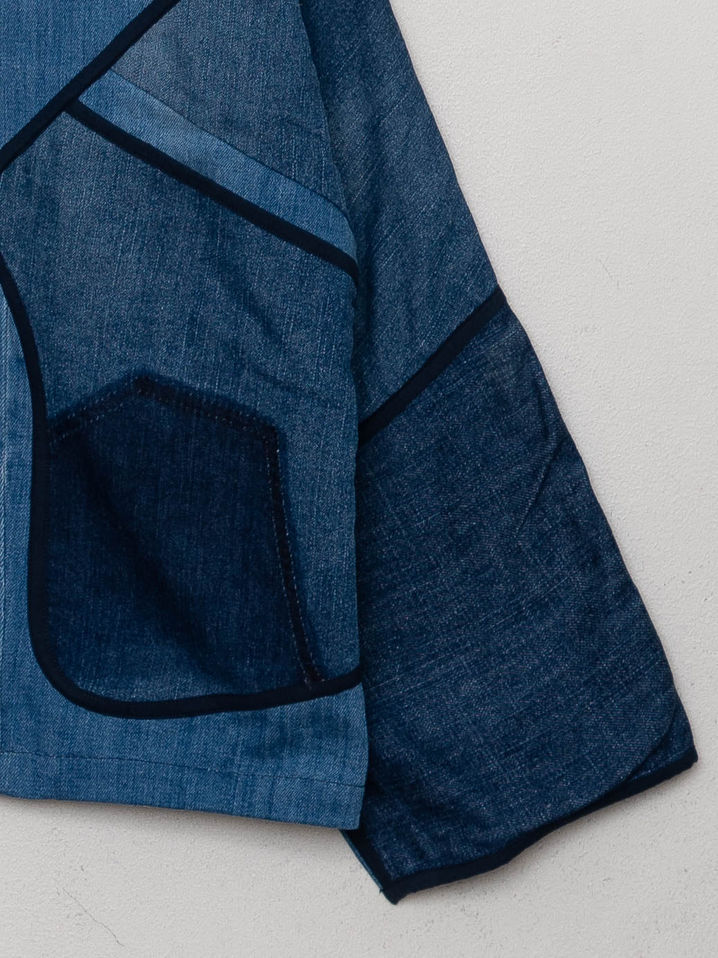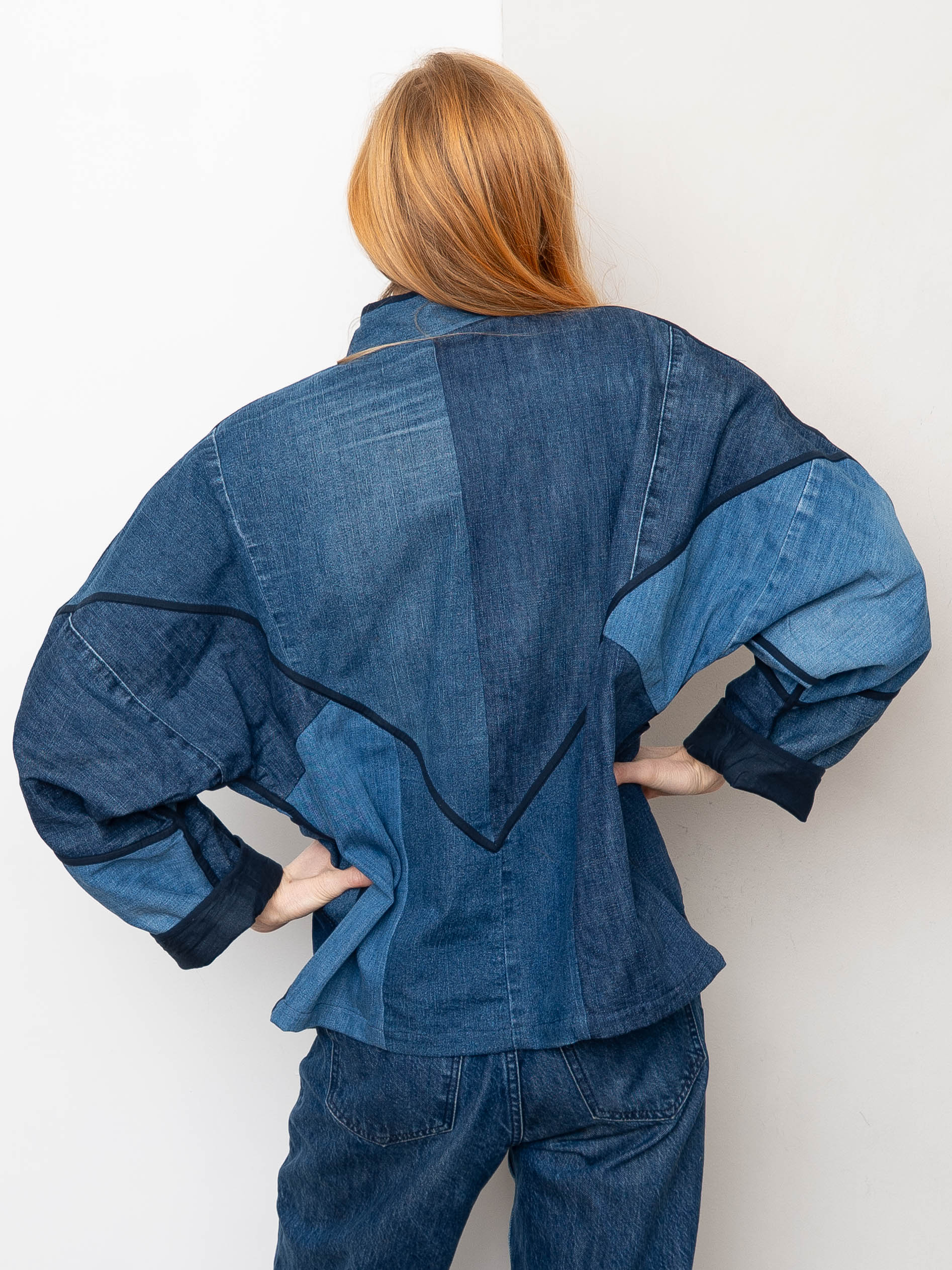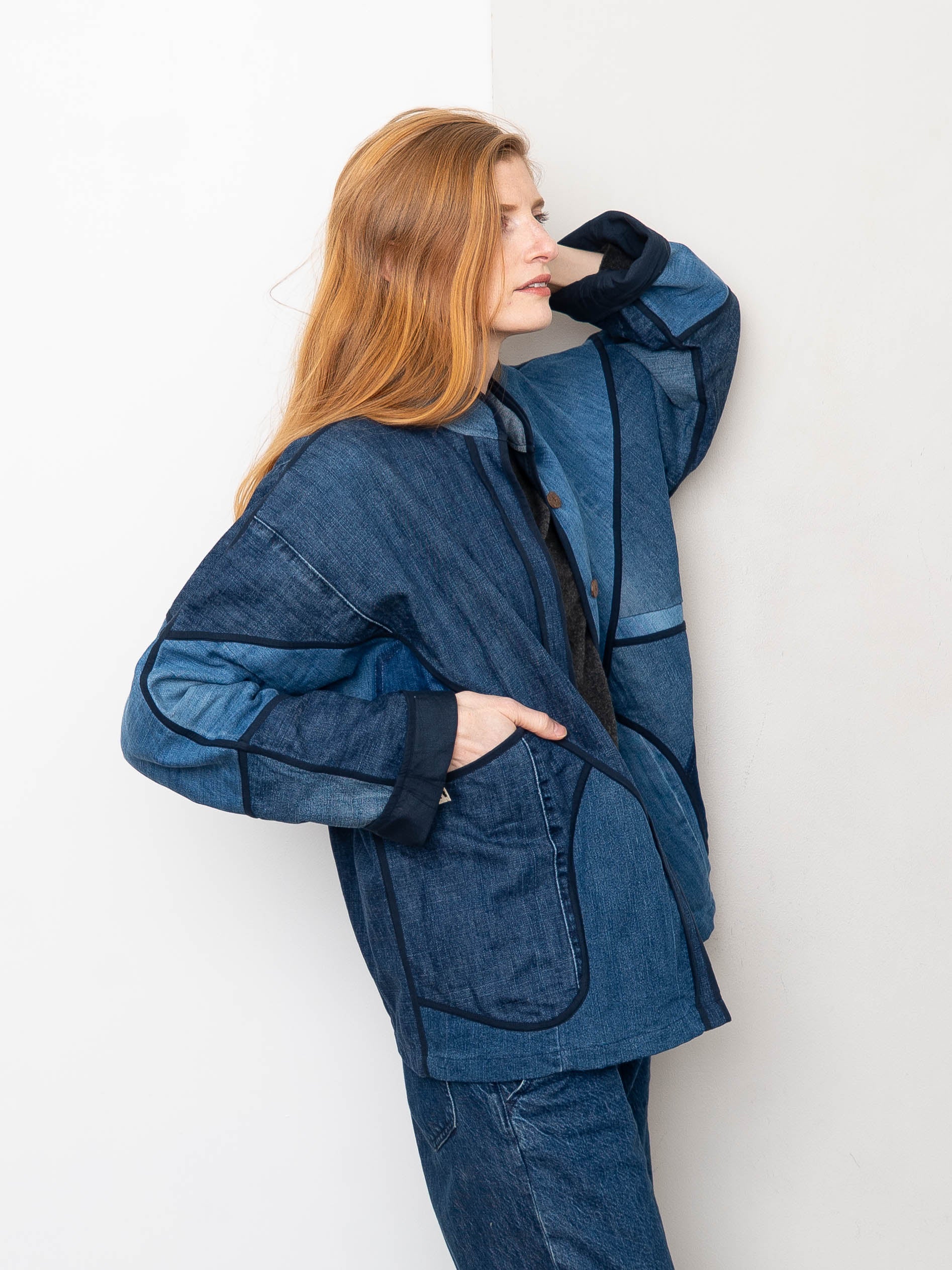 A ONE OF A KIND DENIM JACKET. CRAFTED FROM UPCYCLED JEANS.