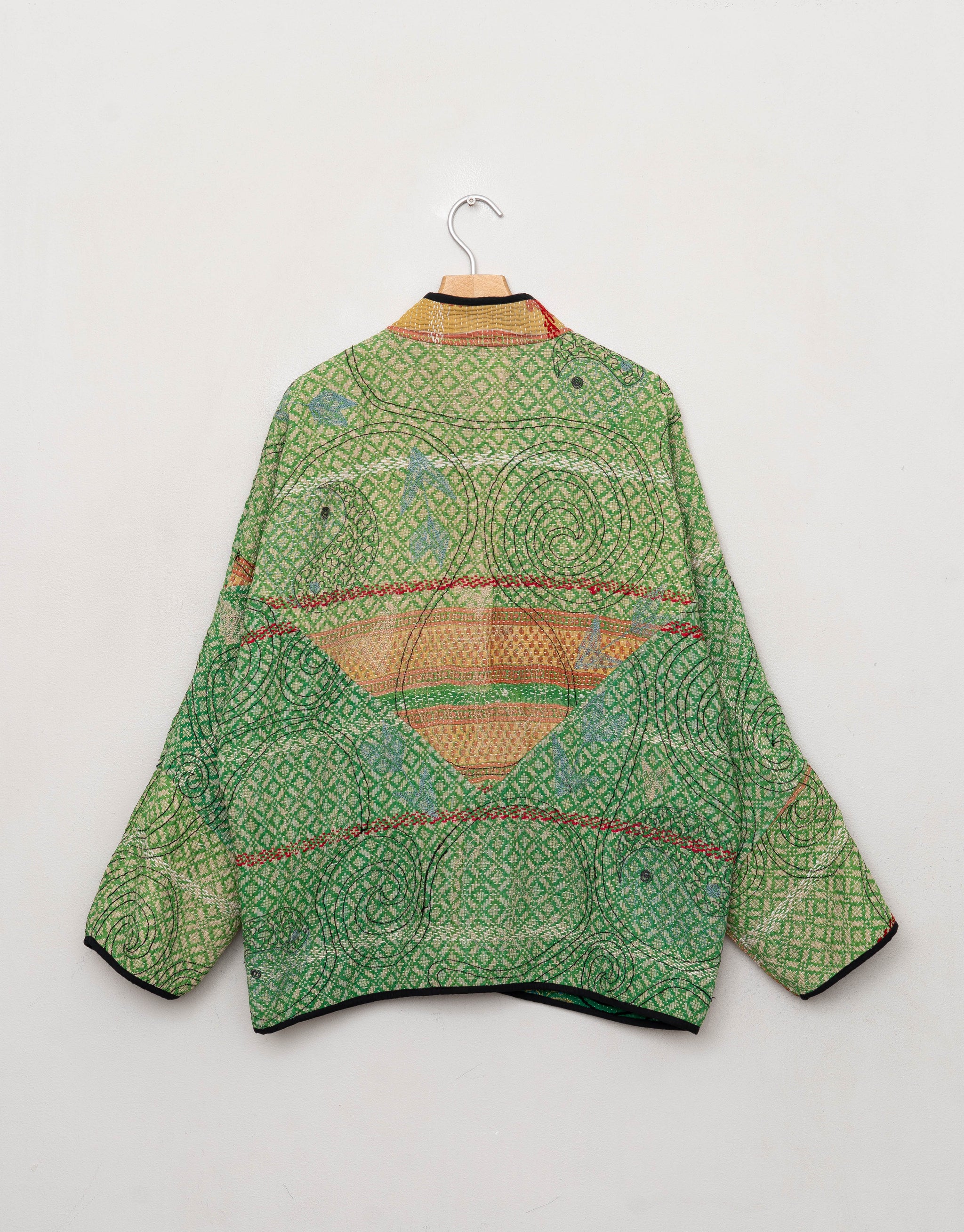 • Because each jacket is made from a different vintage Kantha quilt, the thickness and hand-feel naturally vary—some quilts feel lighter and more relaxed, while others have a slightly more structured feel.