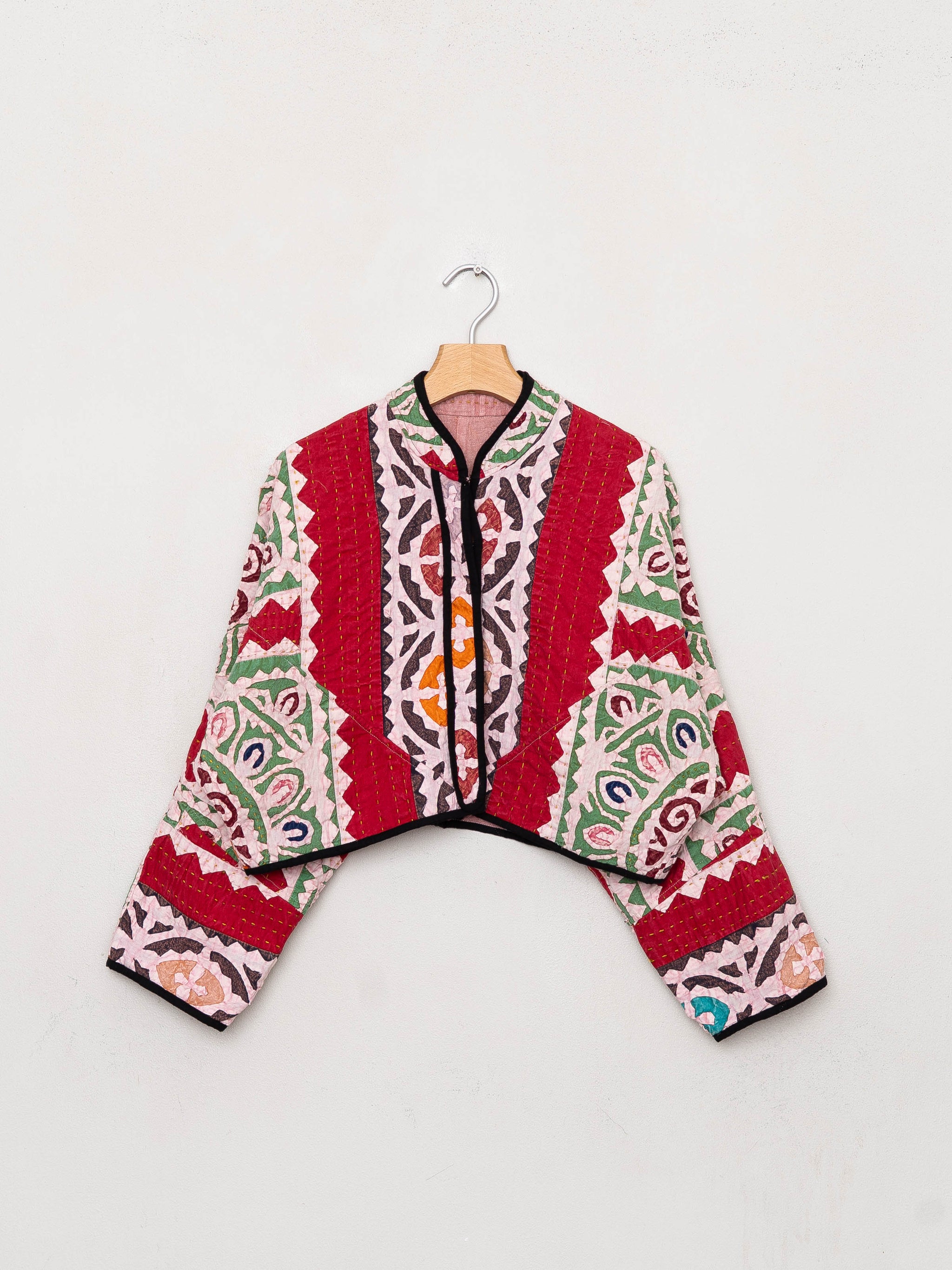 The Kaira Cropped Suzani Cut Out Kantha Jacket