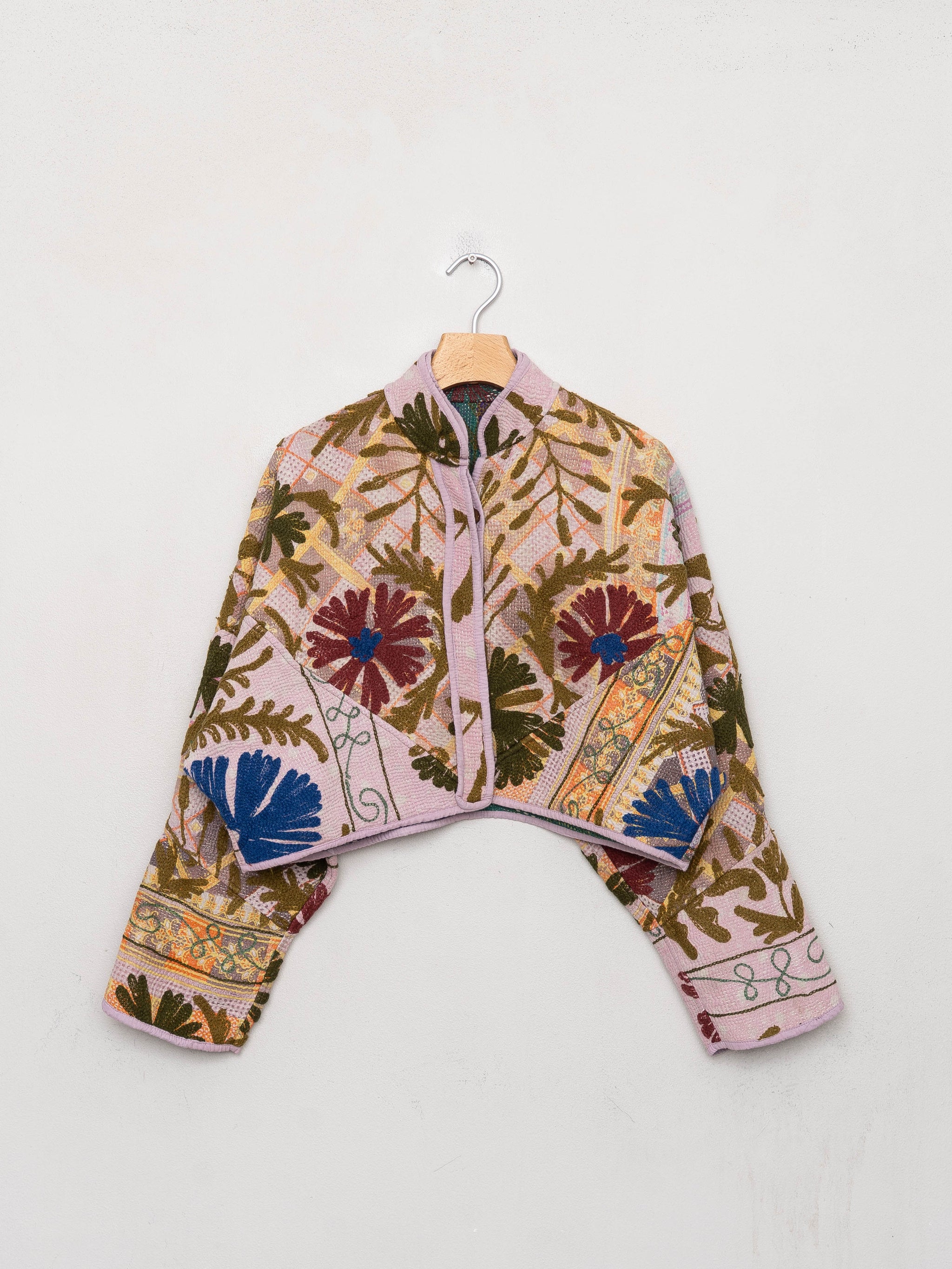 The Kaira Cropped Suzani Quilted Kantha Jacket
