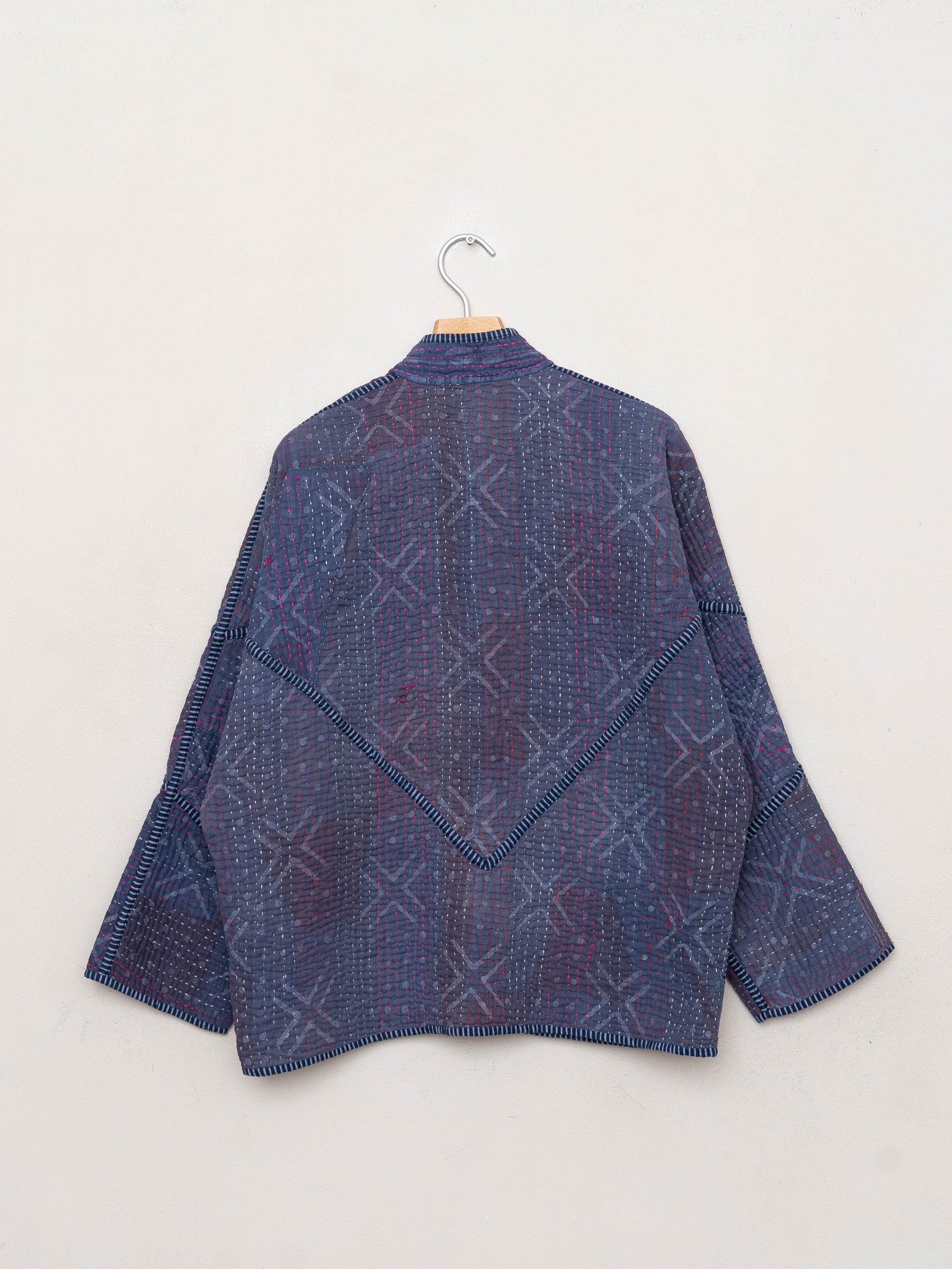 This Jacket features mud resist motifs dyed with plant based dyes over the Vintage Kantha textiles.