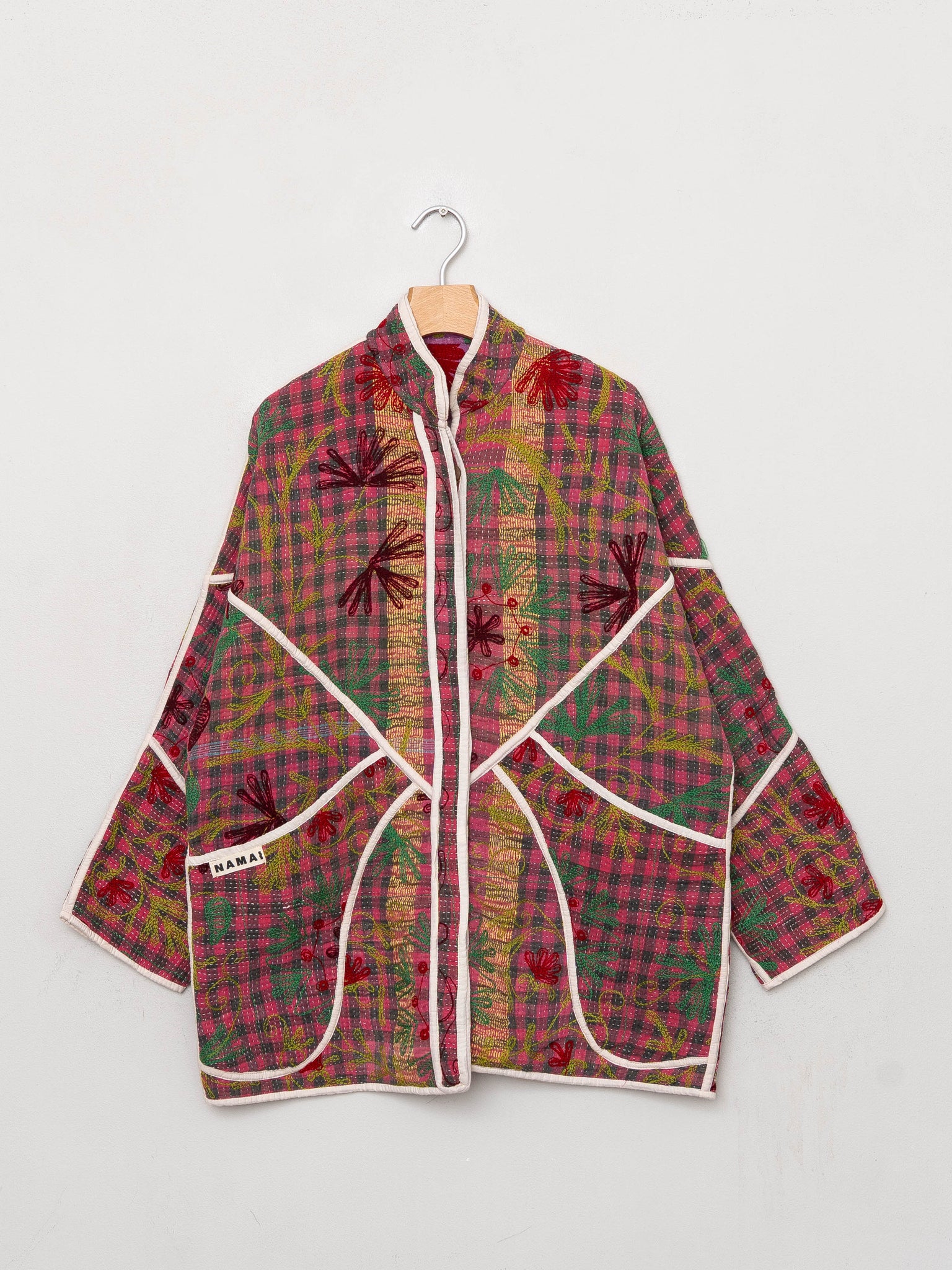 This Jacket features mud resist motifs dyed with plant based dyes over the Vintage Kantha textiles.