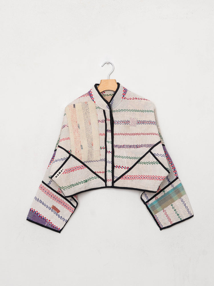 The Kaira Cropped Quilted Patchwork Kantha Jacket