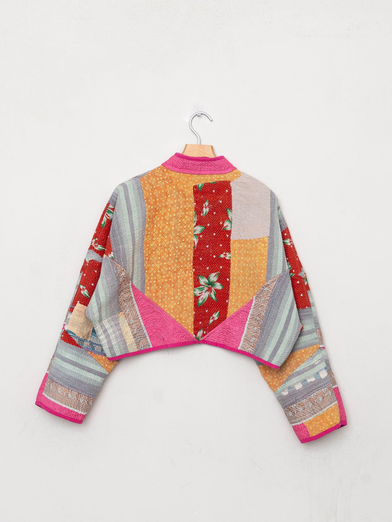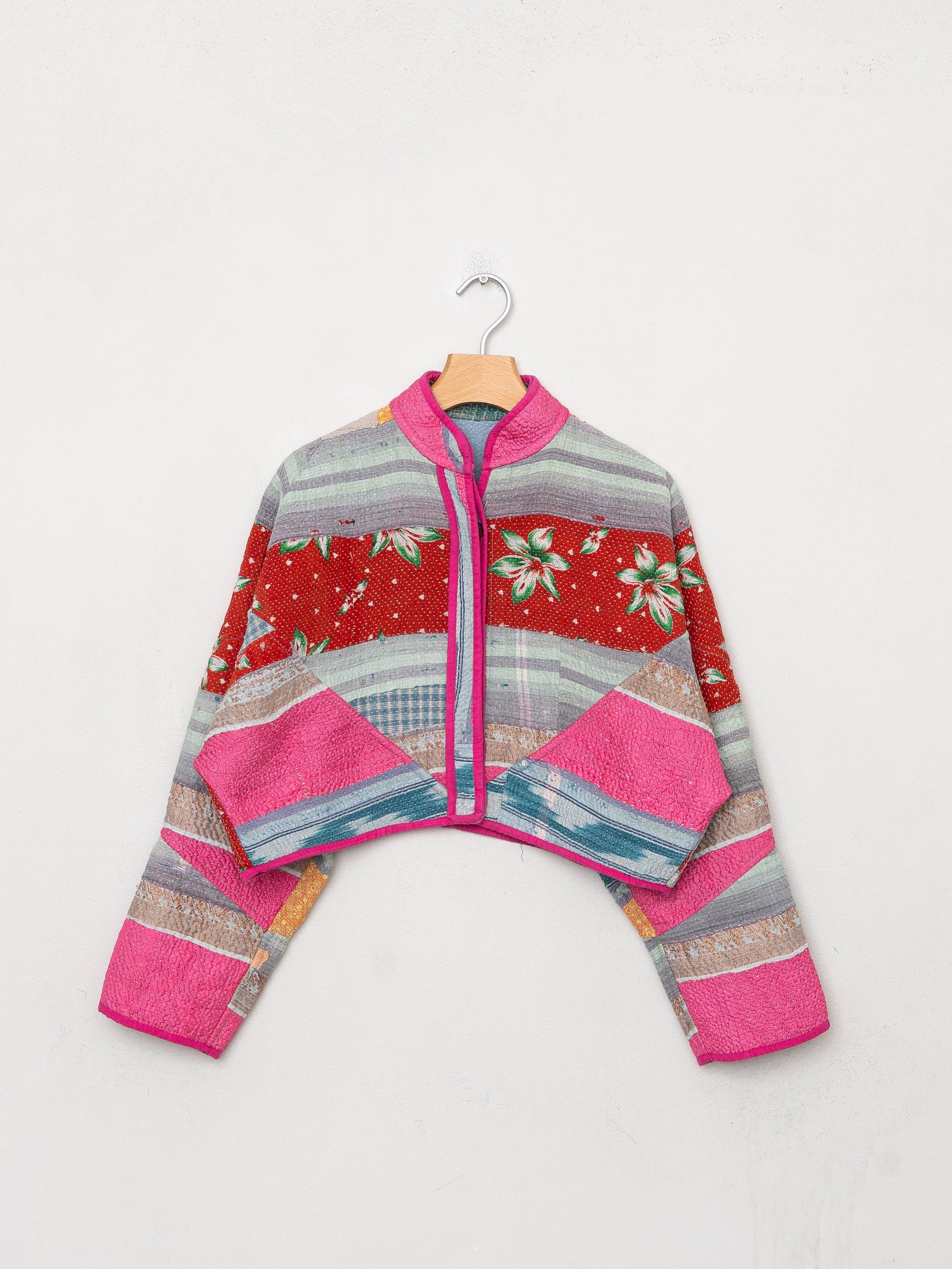 The Kaira Cropped Quilted Patchwork Kantha Jacket