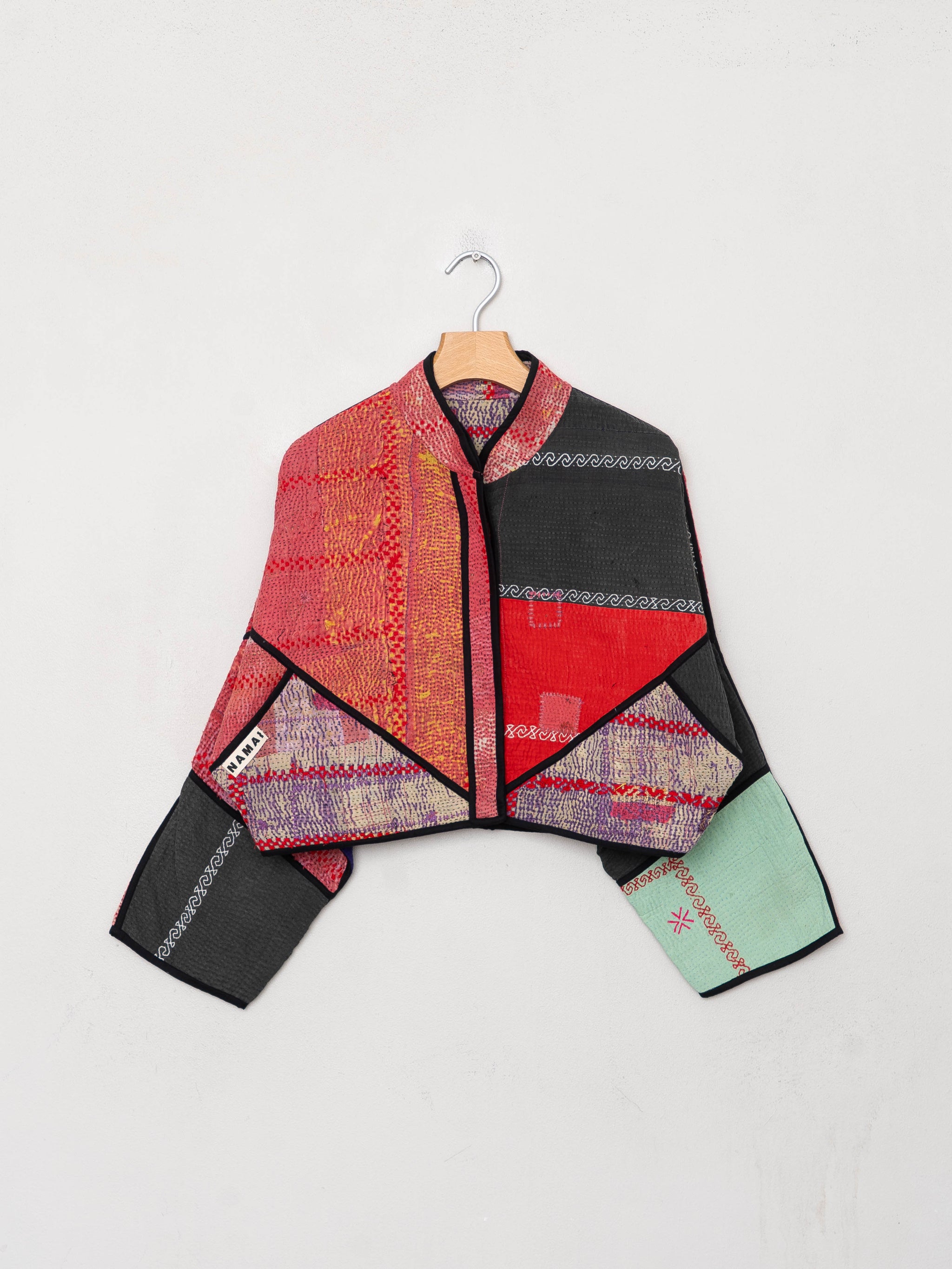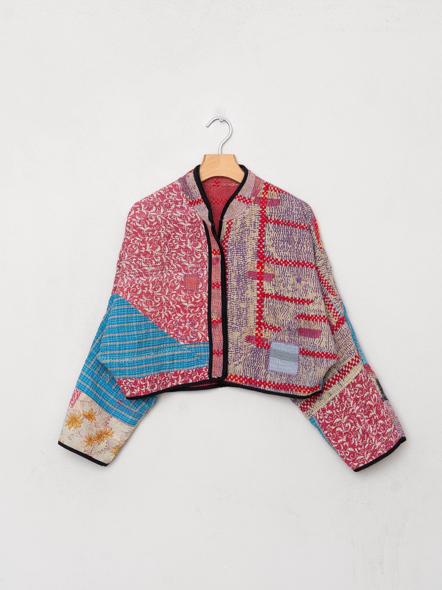 The Kaira Cropped Quilted Patchwork Kantha Jacket