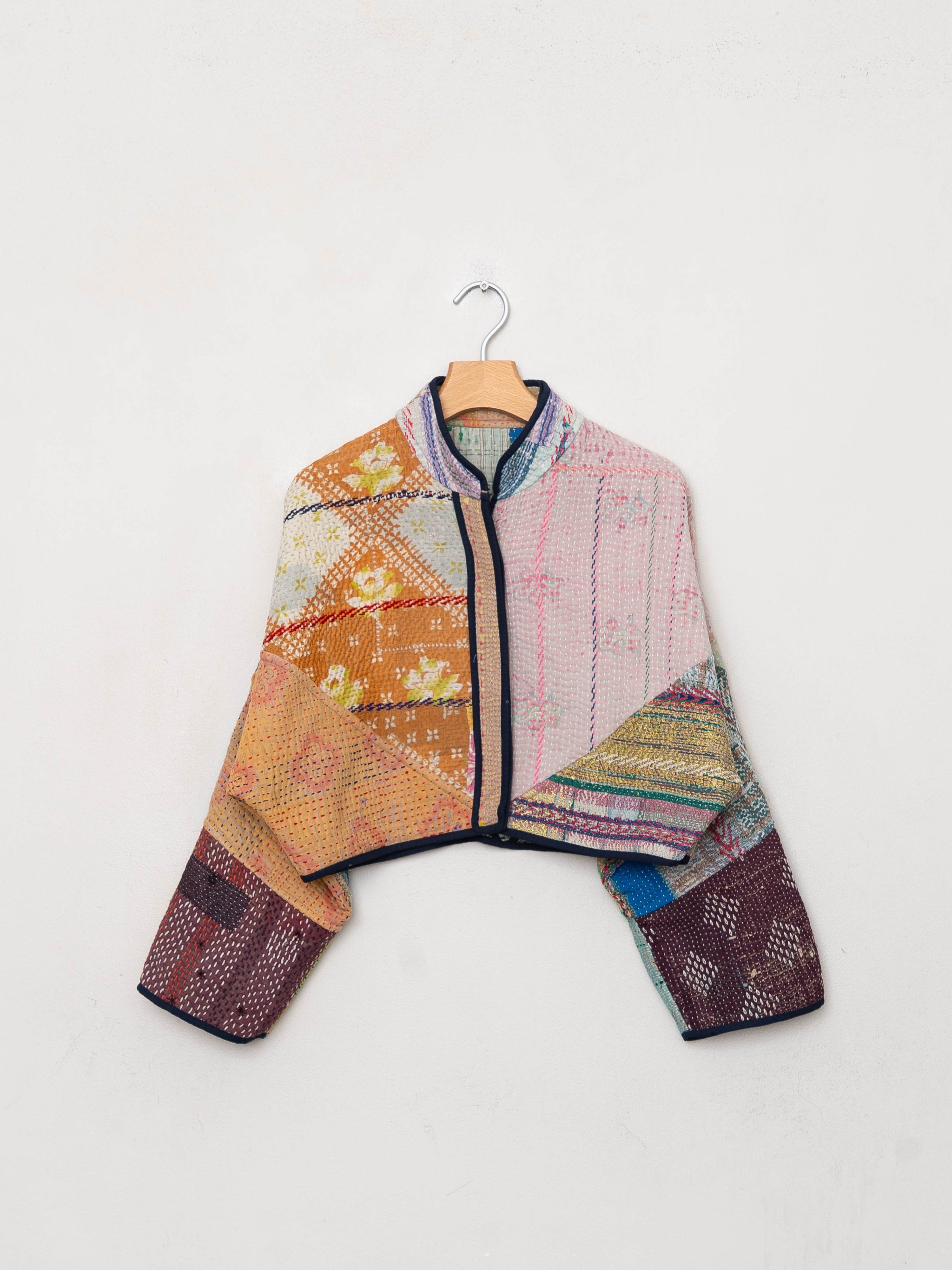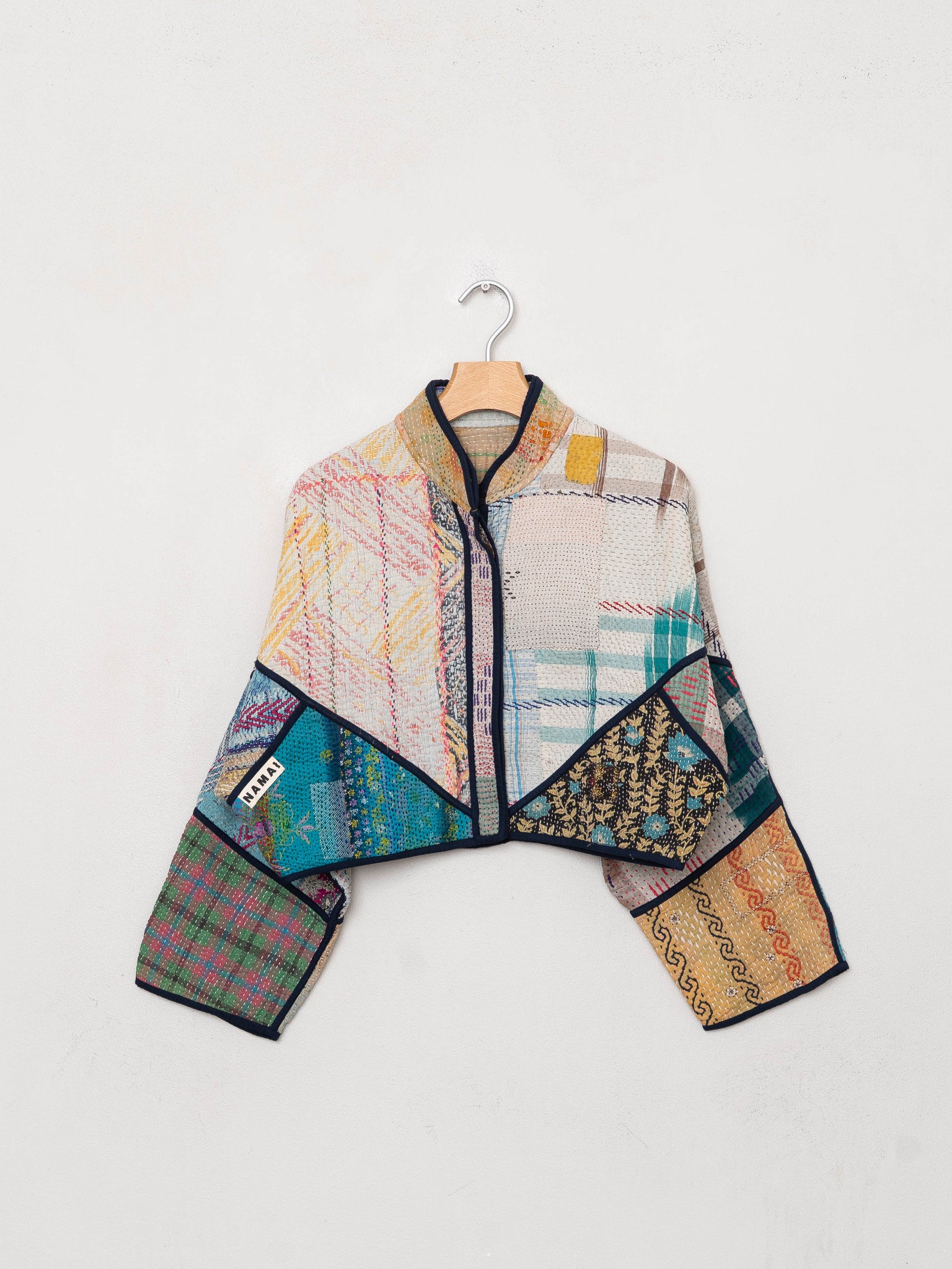 The Kaira Cropped Quilted Patchwork Kantha Jacket