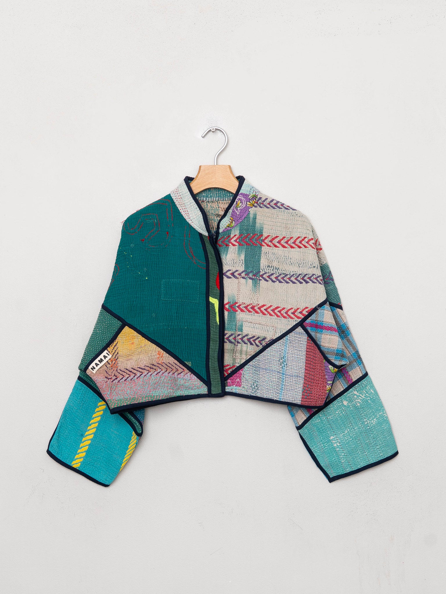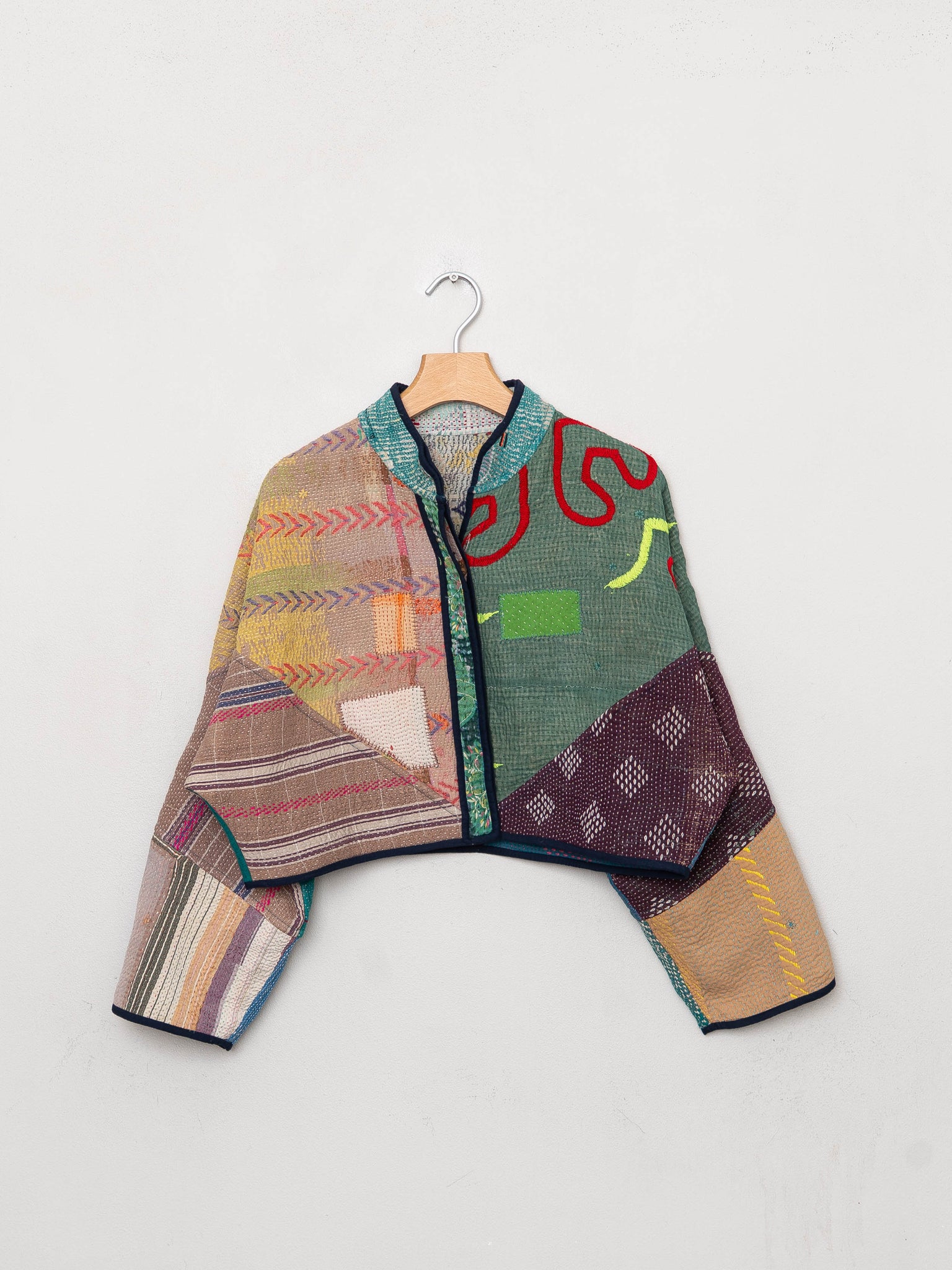 The Kaira Cropped Quilted Patchwork Kantha Jacket