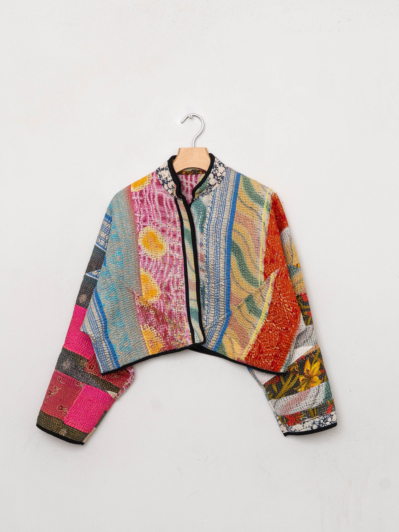 The Kaira Cropped Quilted Patchwork Kantha Jacket