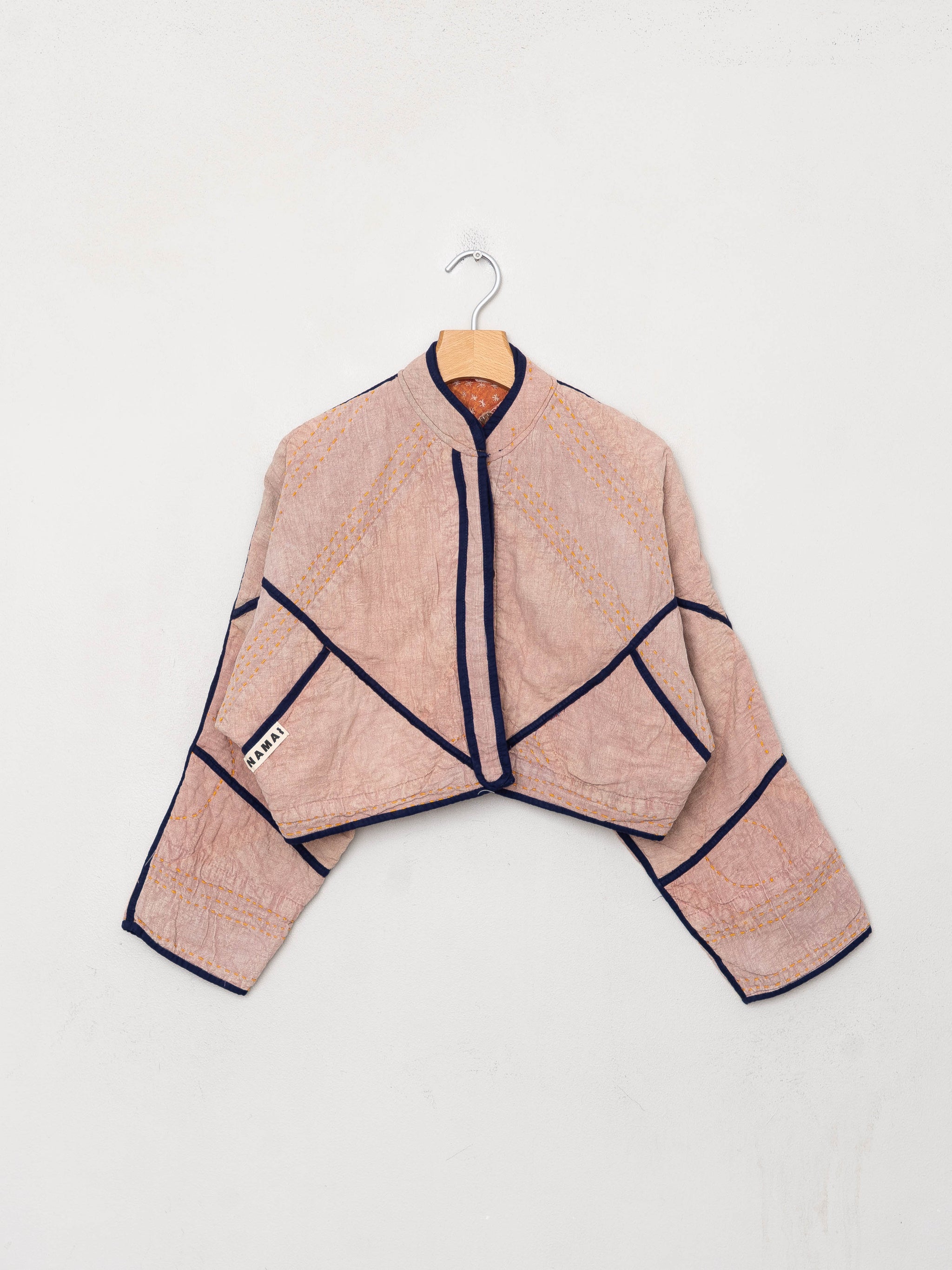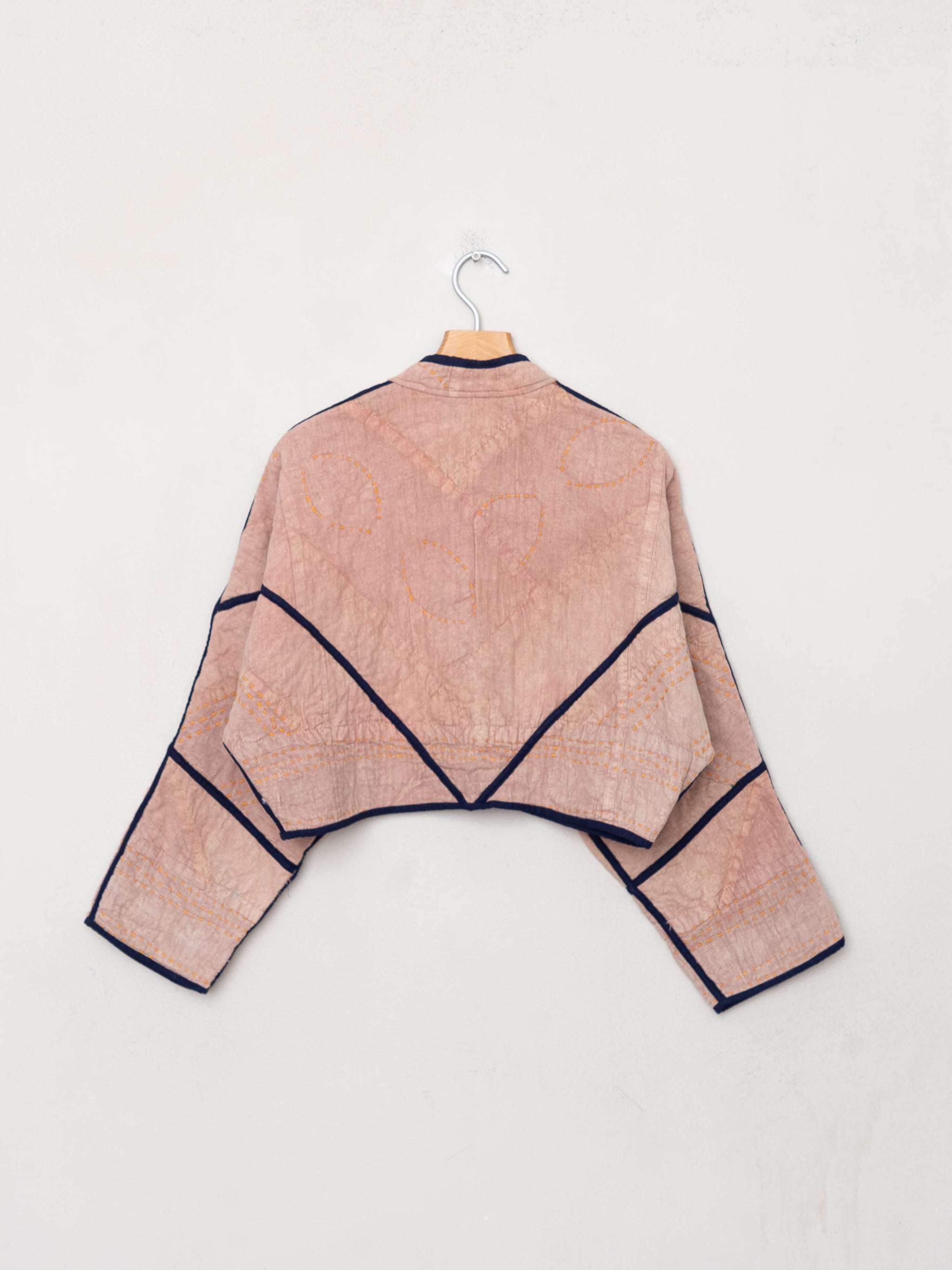 The Kaira Cropped Jacket is a relaxed, cropped jacket with a boxy silhouette and easy, oversized fit. Fully reversible and made from vintage Kantha quilts, each piece is completely one of a kind—no two are alike. Designed with thoughtful details like coconut shell buttons on both sides, a mandarin collar, and rollable sleeves to reveal the contrast interior.