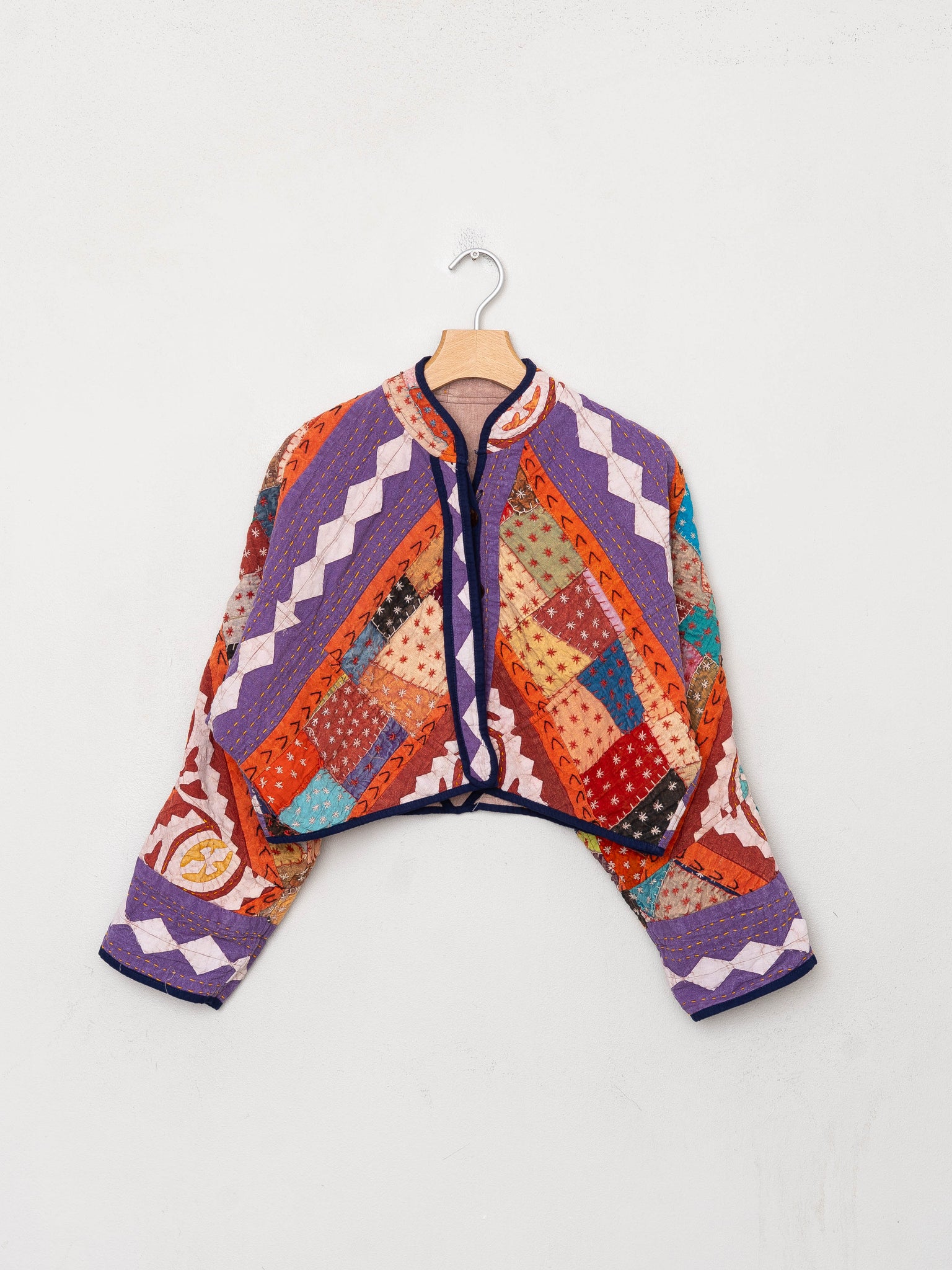 The Kaira Cropped Suzani Cut Out Kantha Jacket