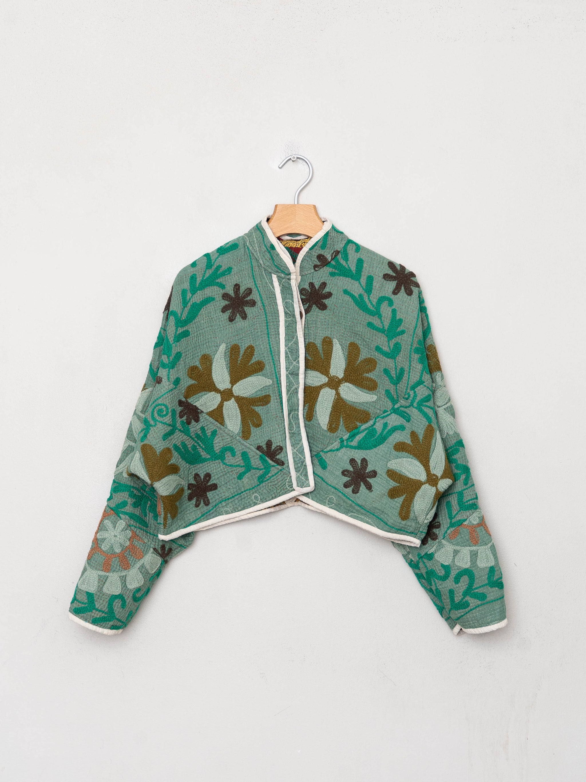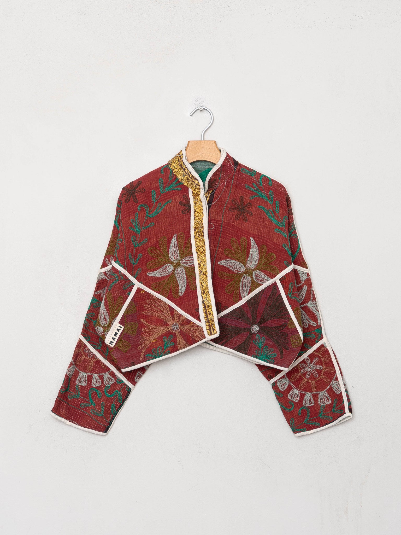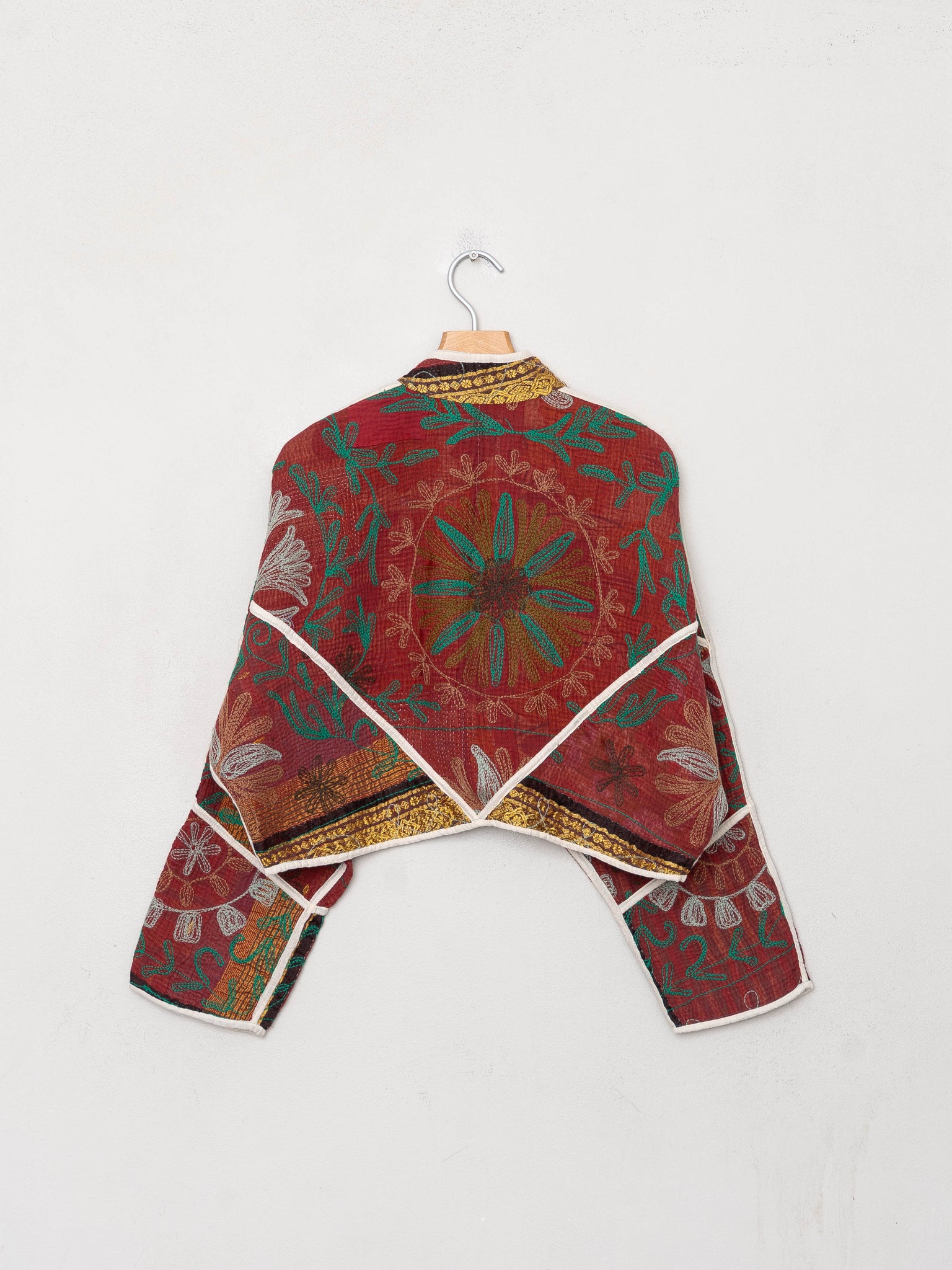 The Kaira Cropped Suzani Quilted Kantha Jacket