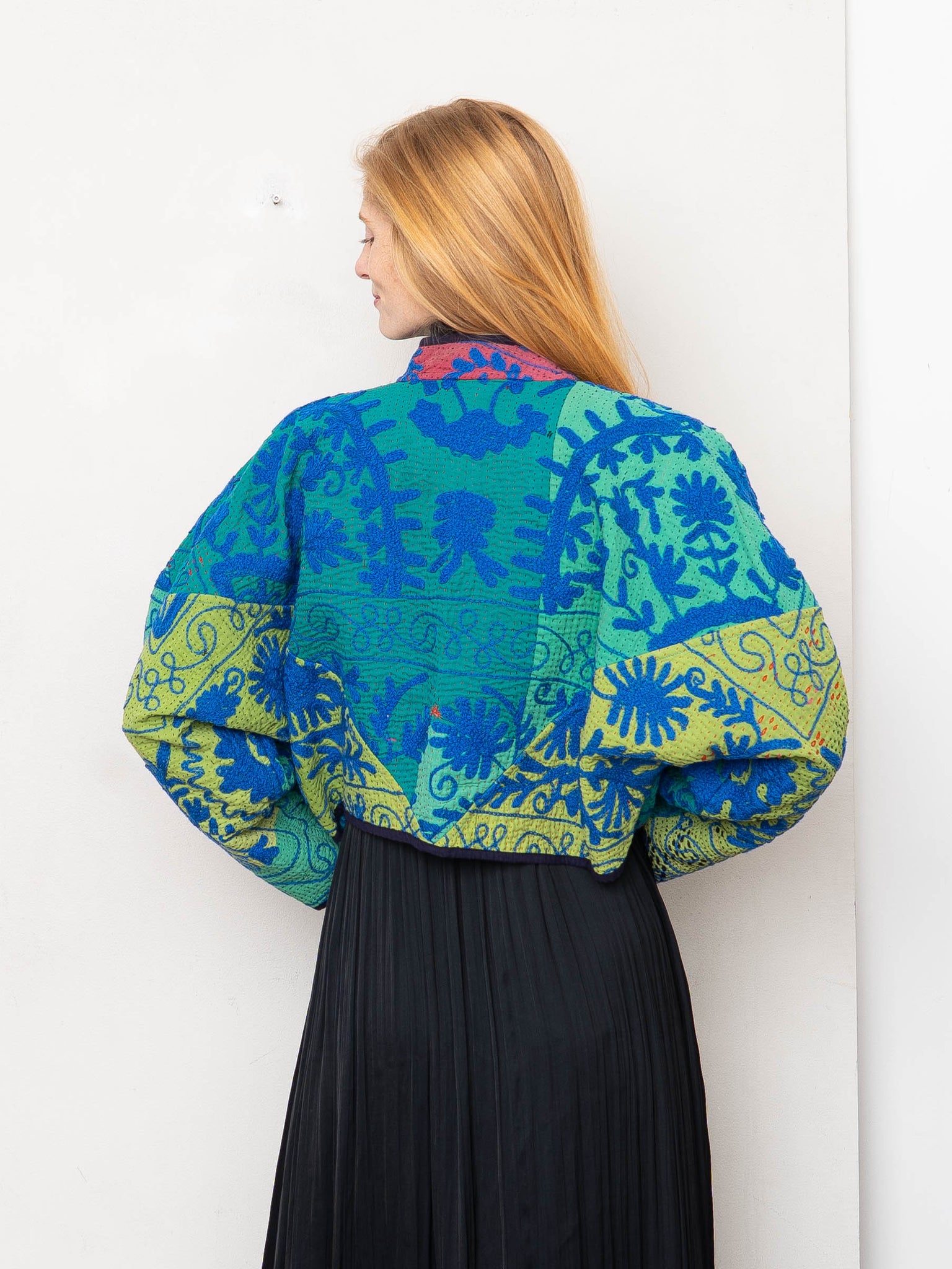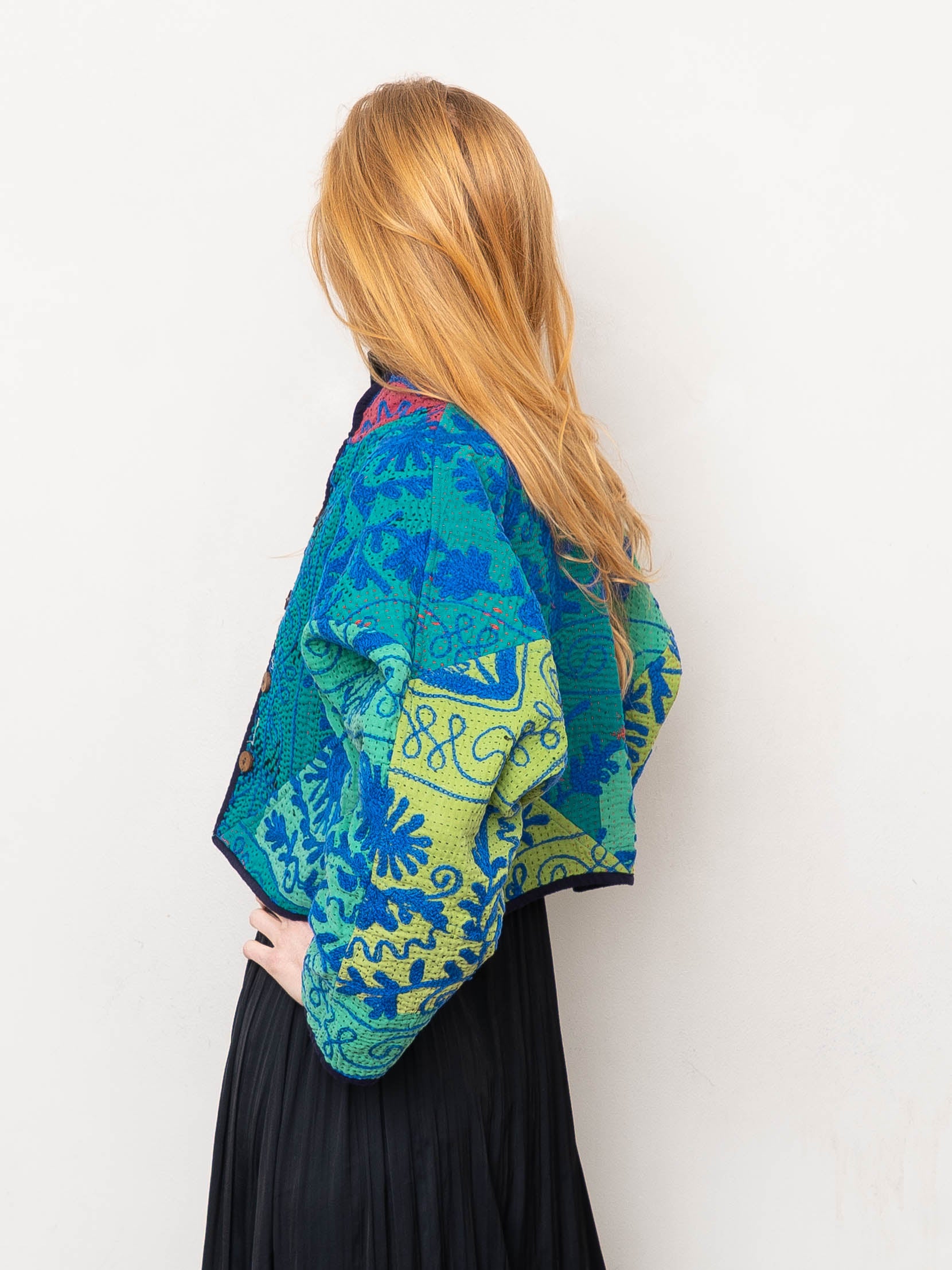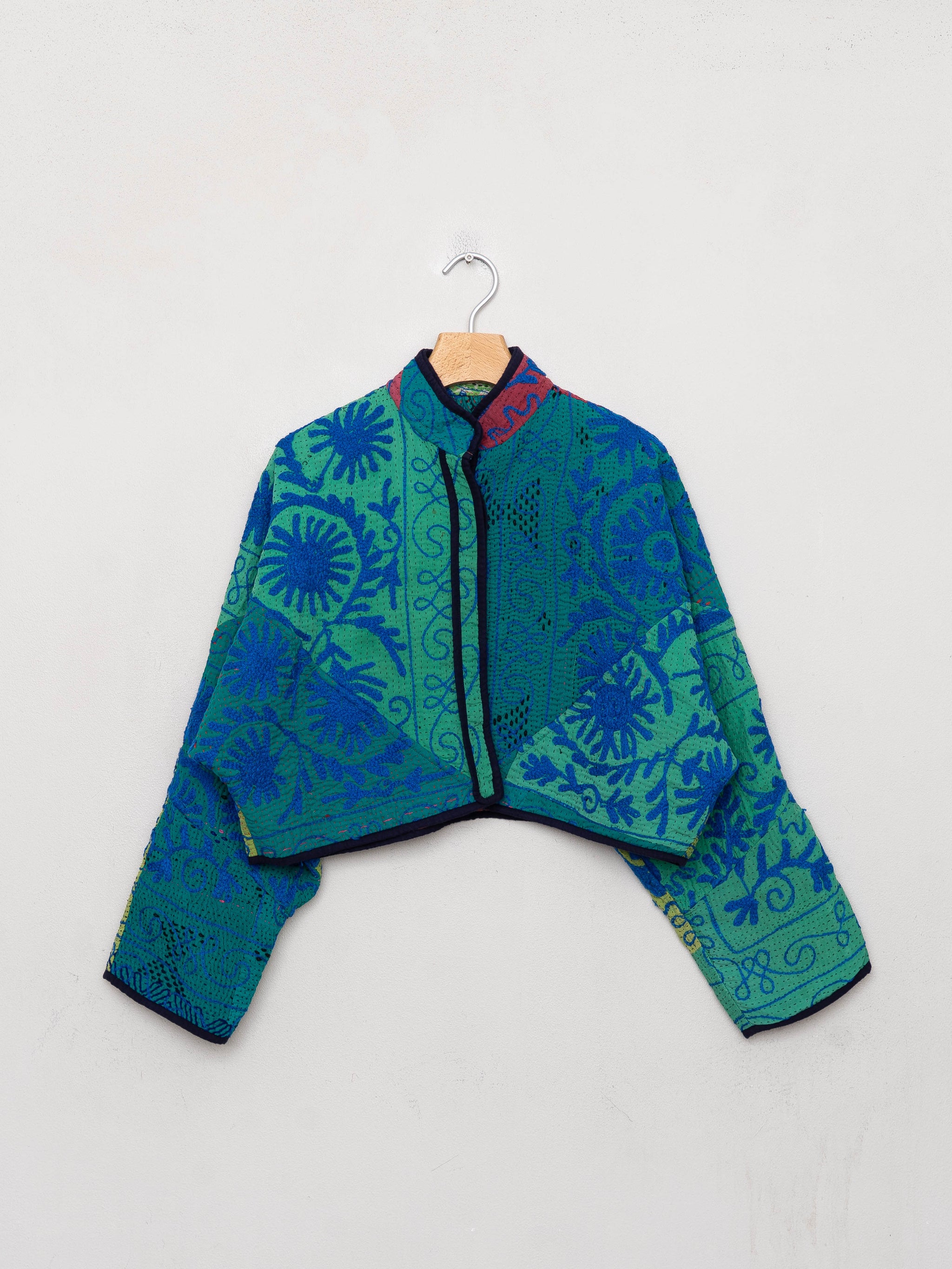 The Kaira Cropped Suzani Quilted Kantha Jacket
