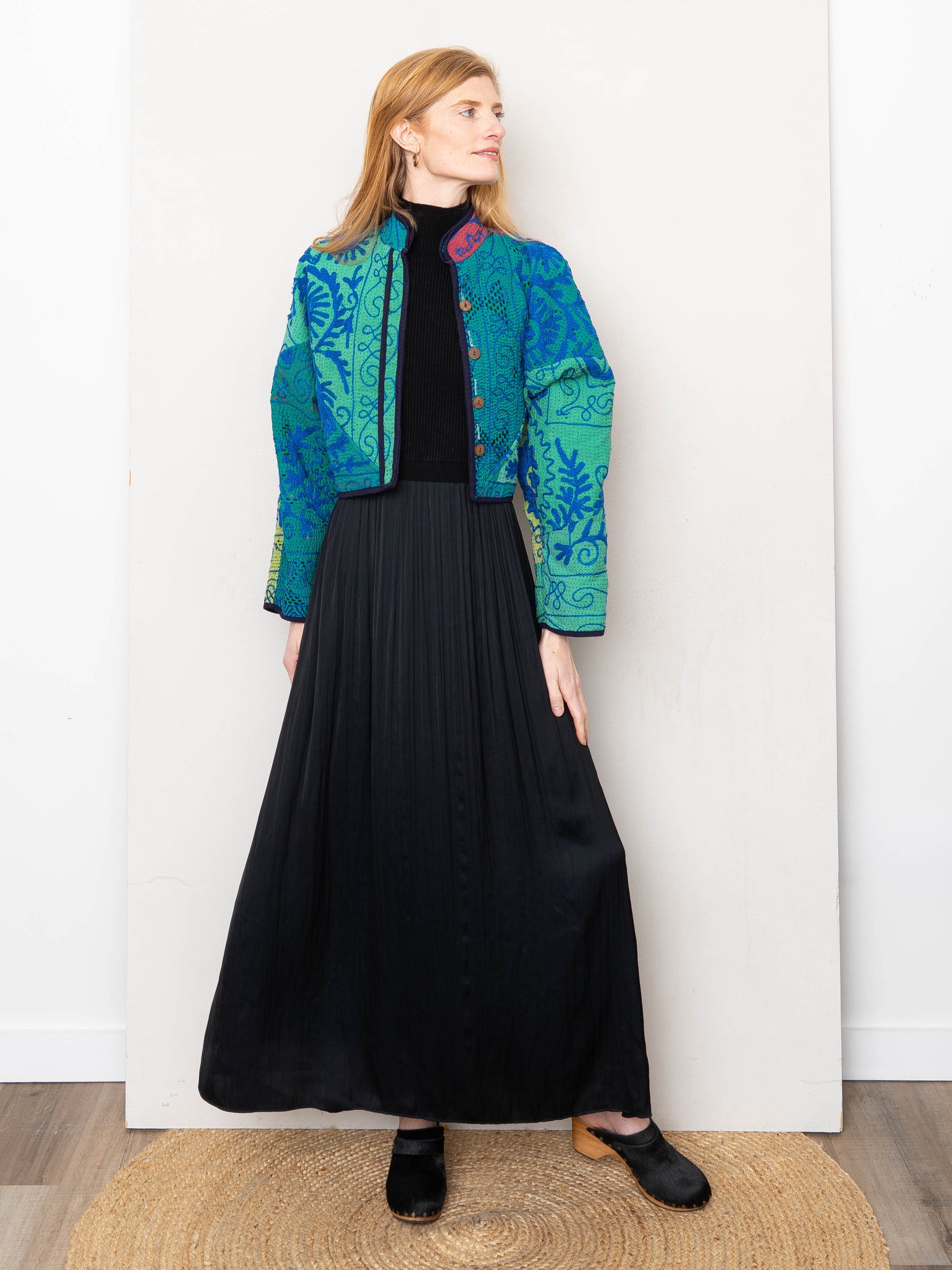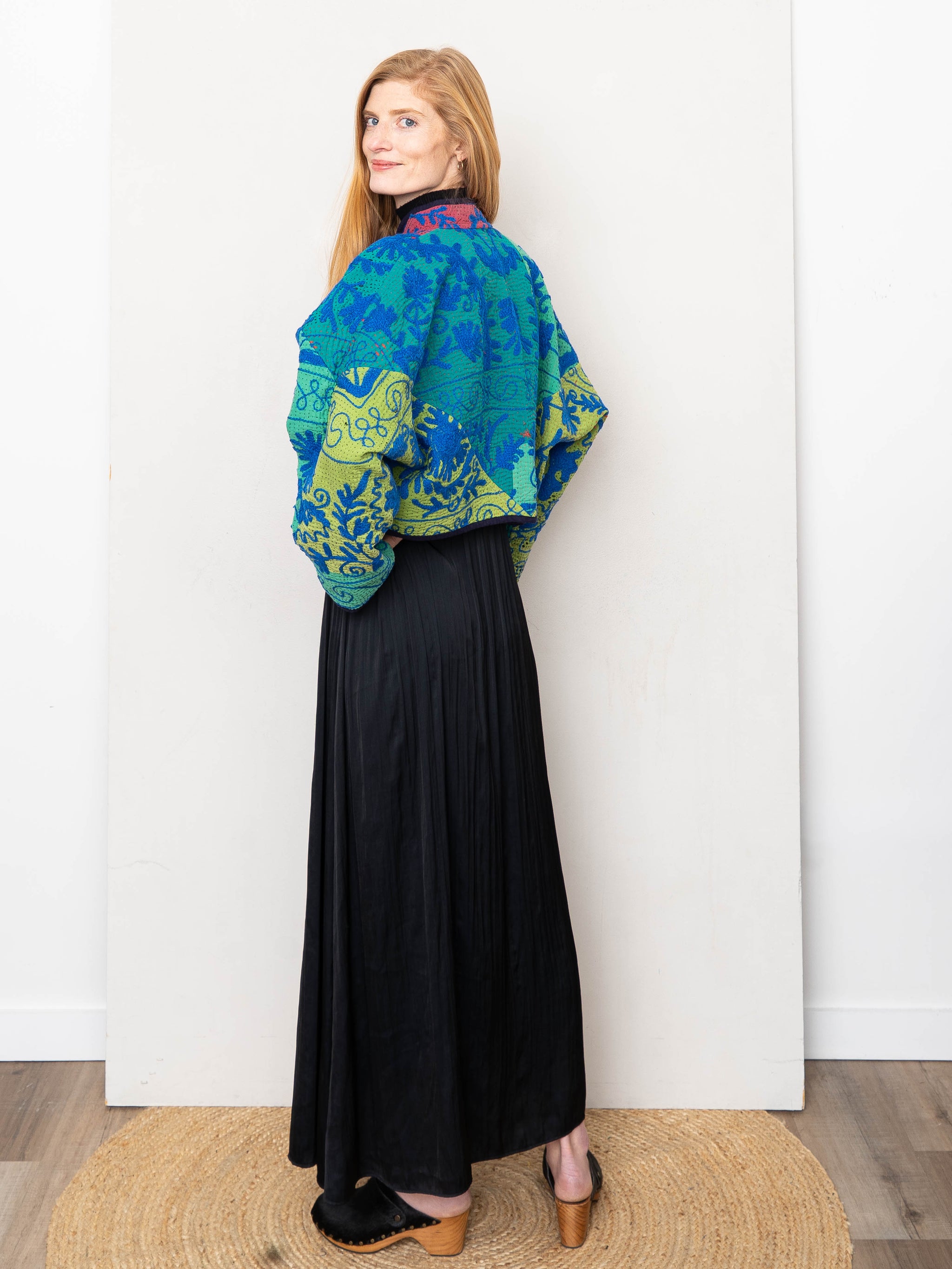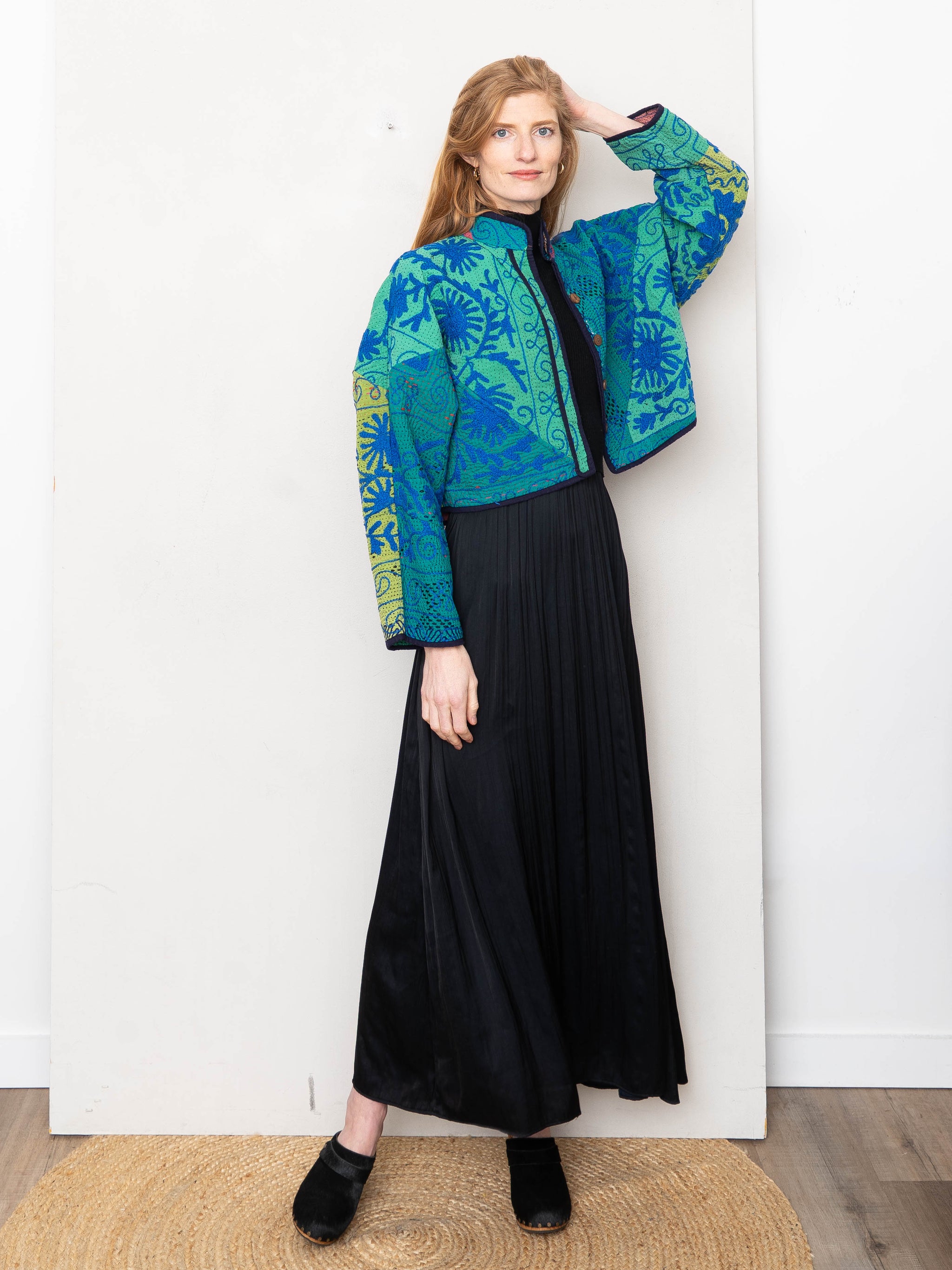 The Kaira Cropped Suzani Quilted Kantha Jacket