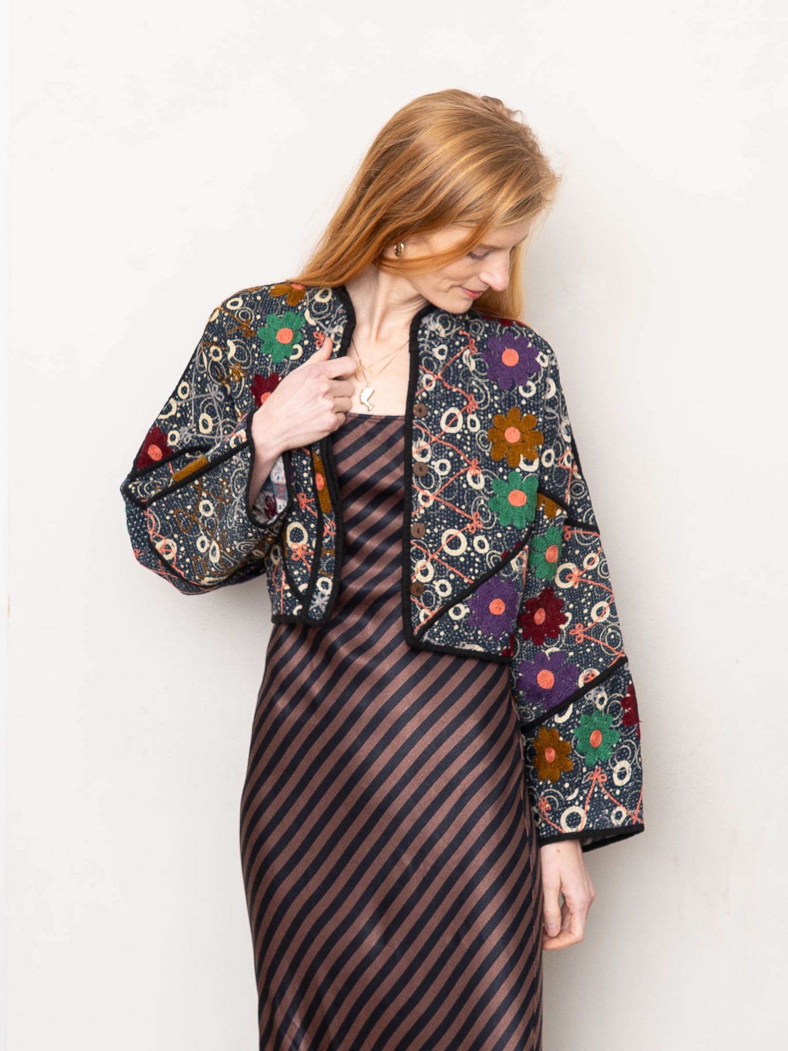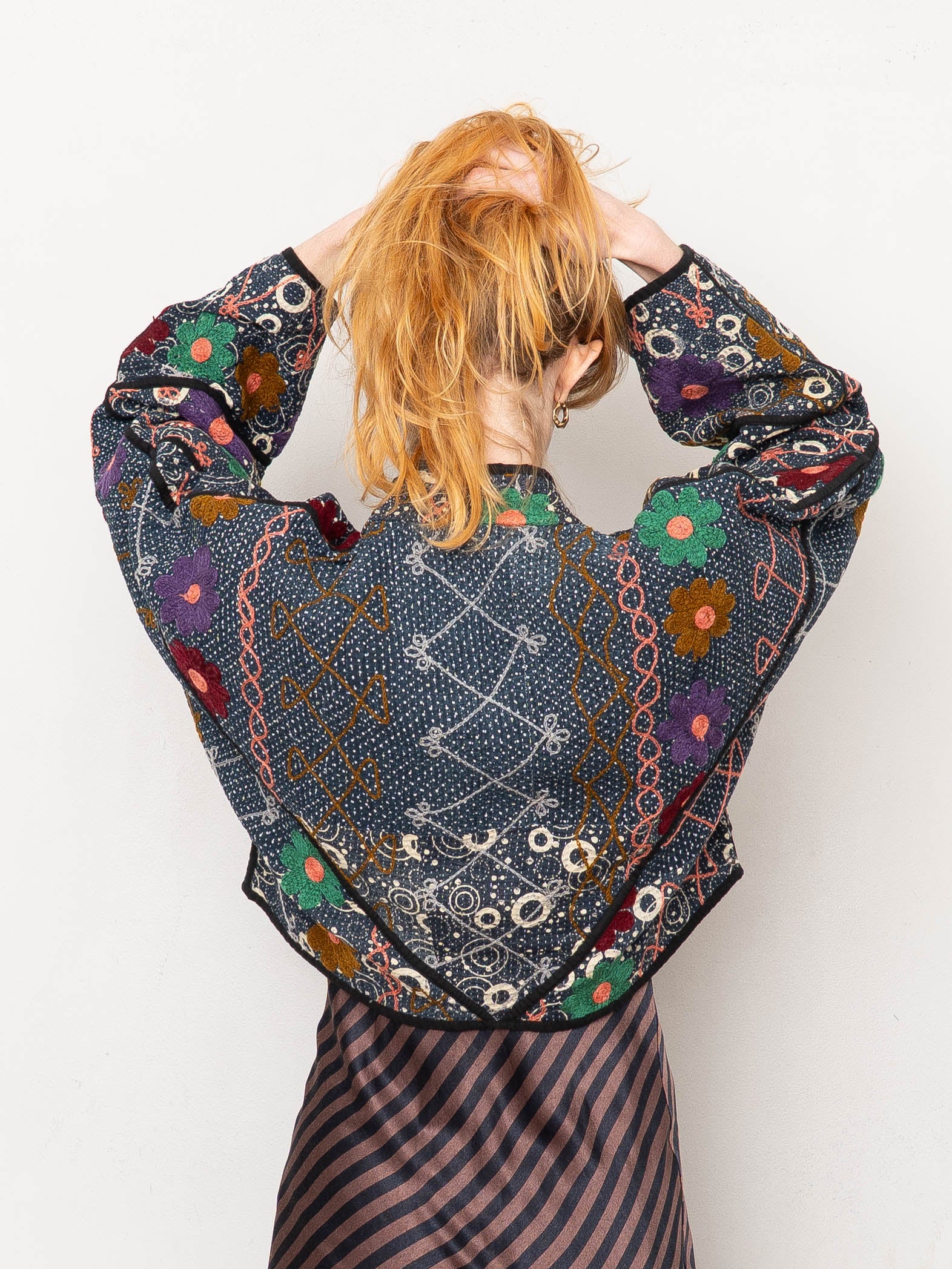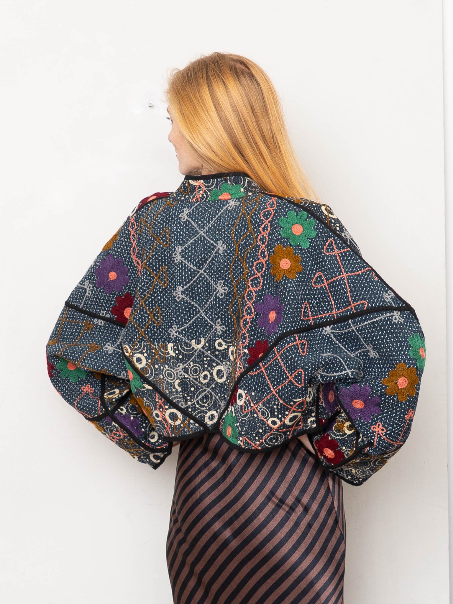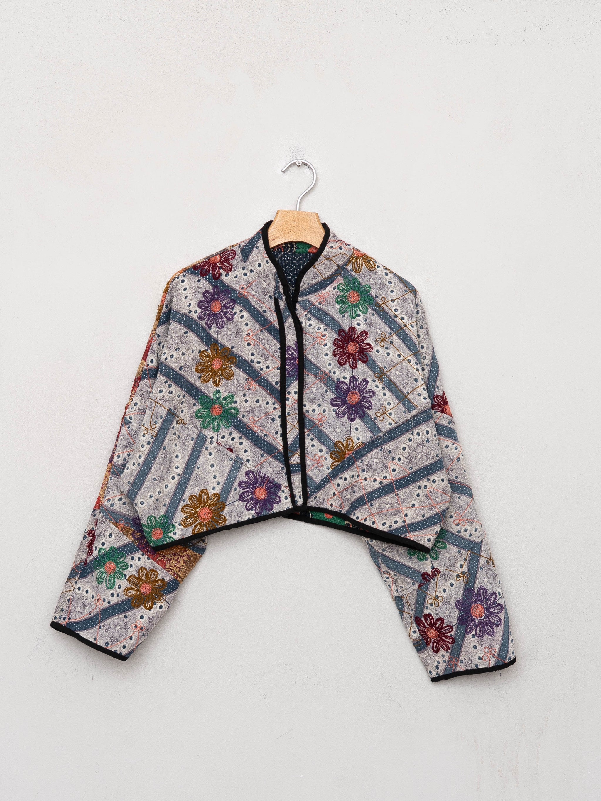 The Kaira Cropped Suzani Quilted Kantha Jacket