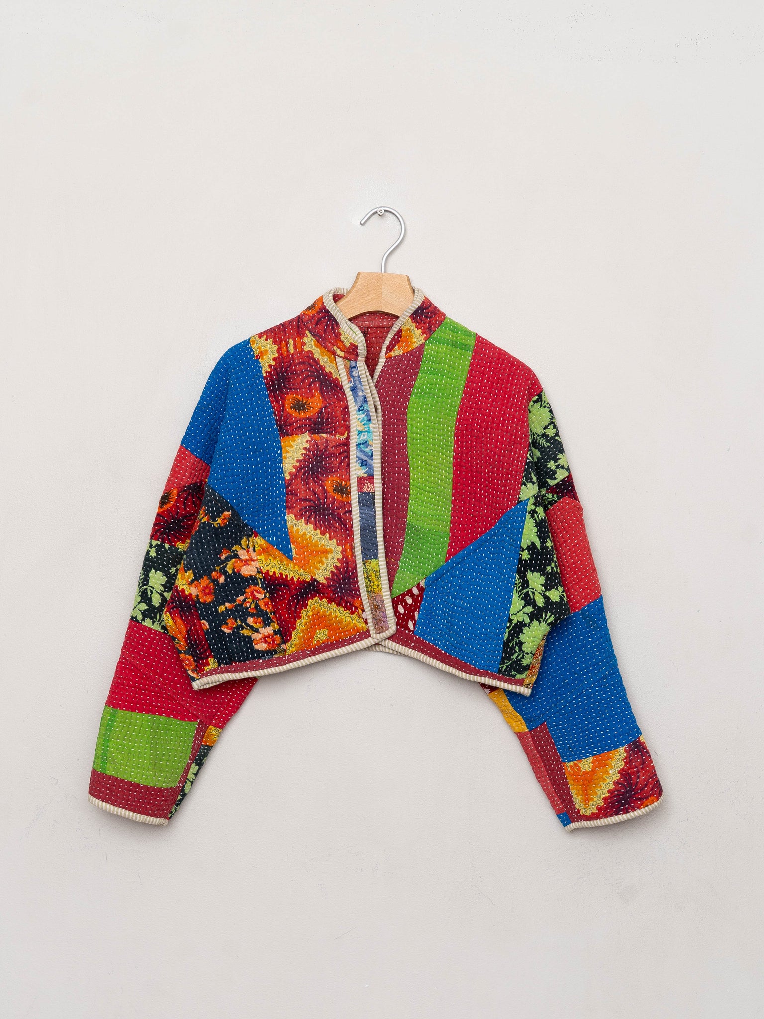 The Kaira Cropped Quilted Patchwork Kantha Jacket