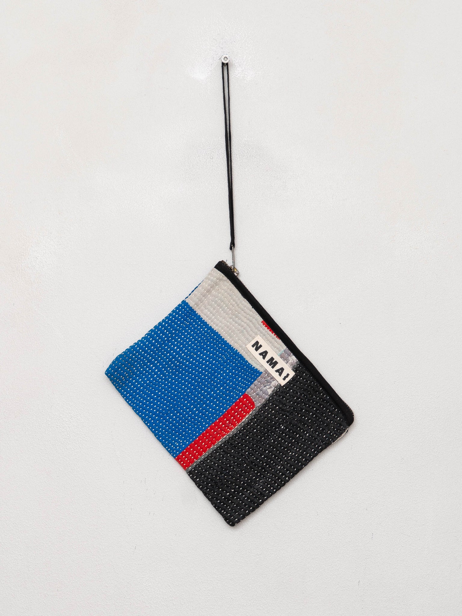 This compact pouch is designed to fit all your essentials. Use as a clutch, makeup up bag, purse, and for travel documents. Completely one of a kind and zero- waste- This is the only piece. Versatile zipper pouch made from recycled kantha quilts.