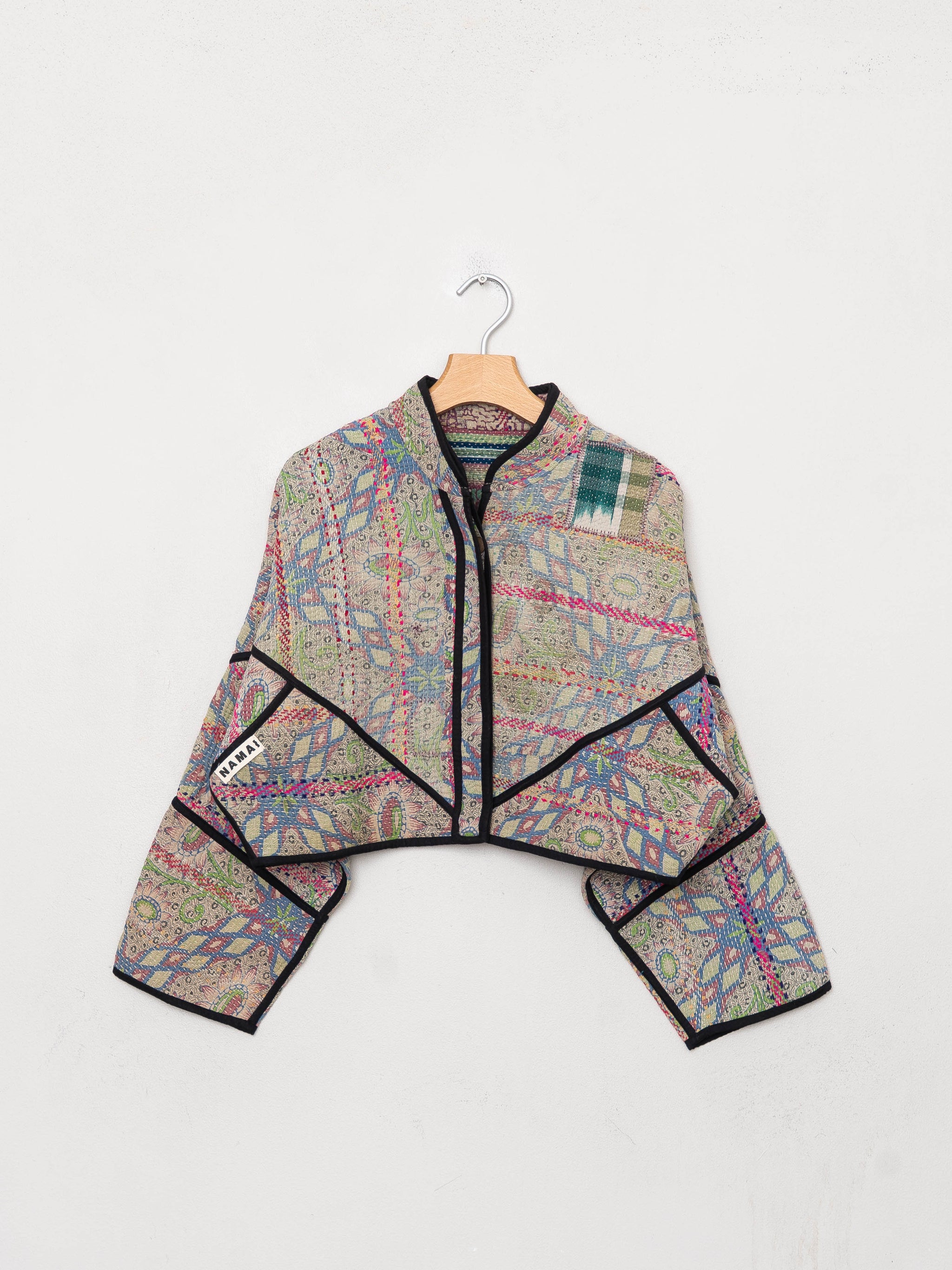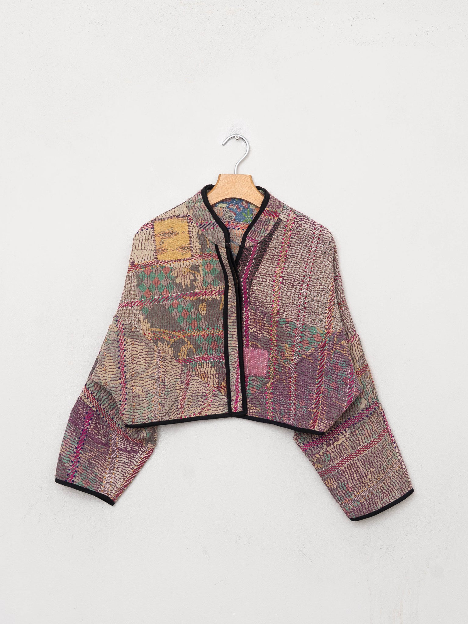 The Kaira Cropped Quilted Patchwork Kantha Jacket