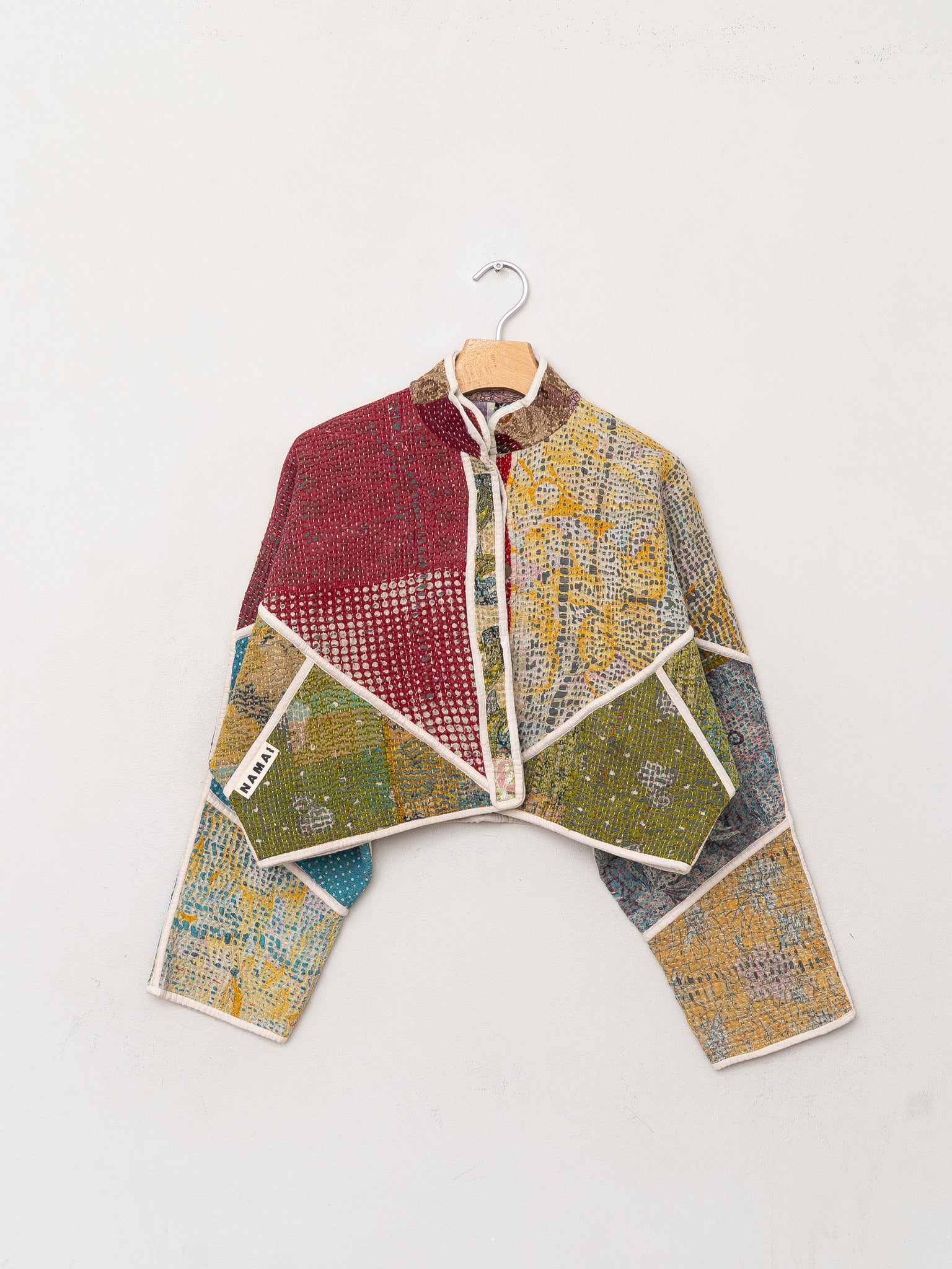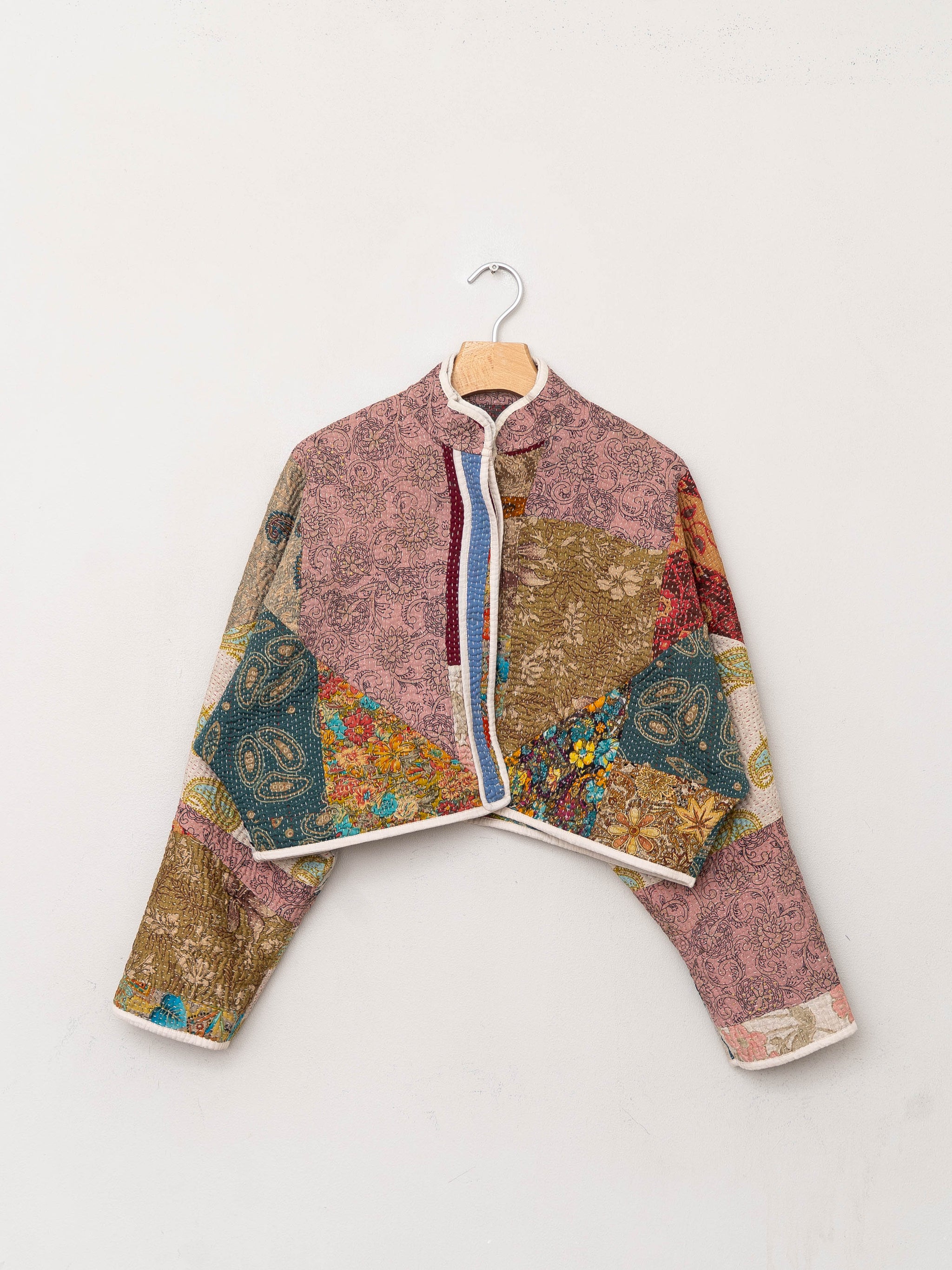 The Kaira Cropped Quilted Patchwork Kantha Jacket