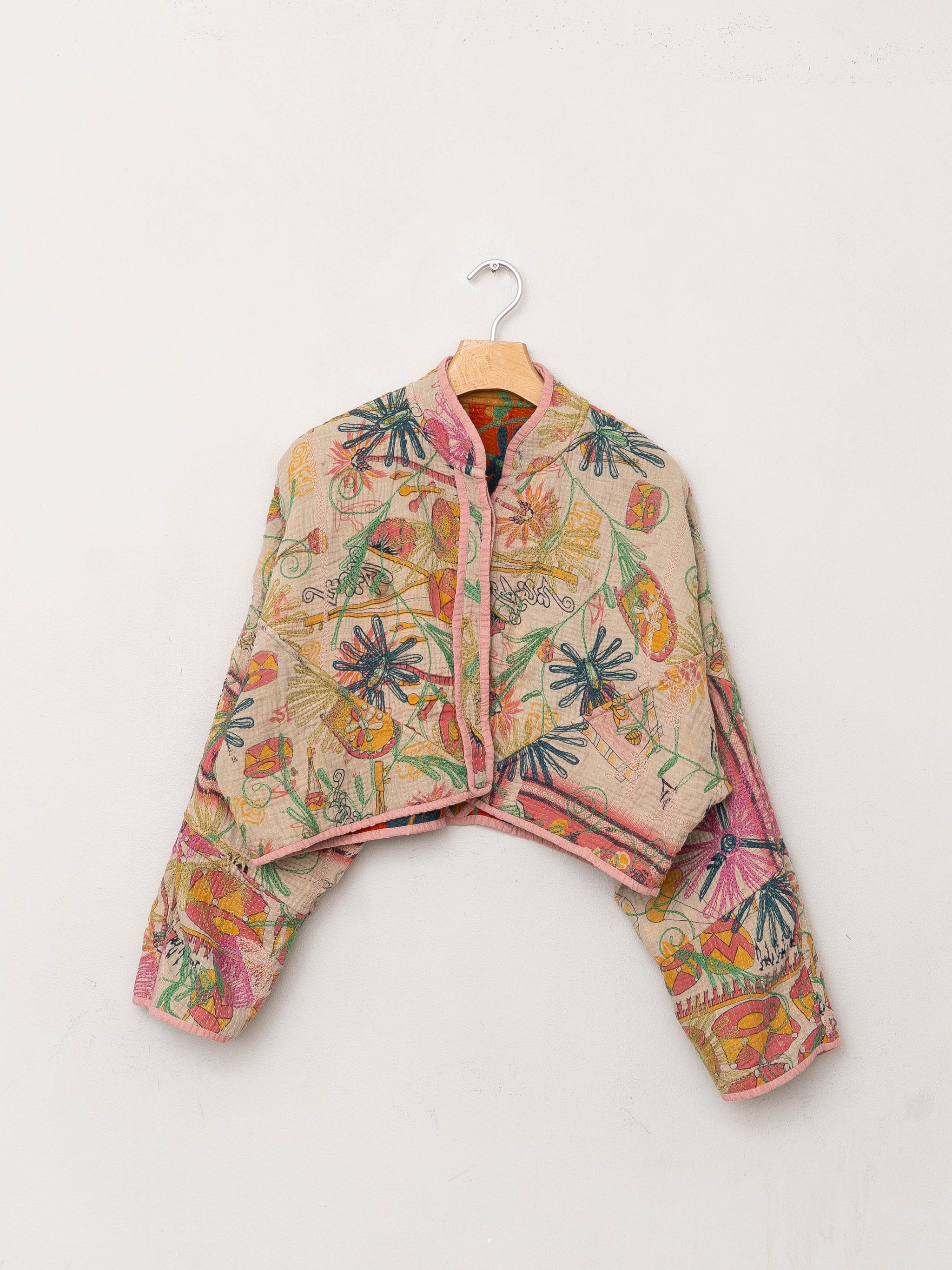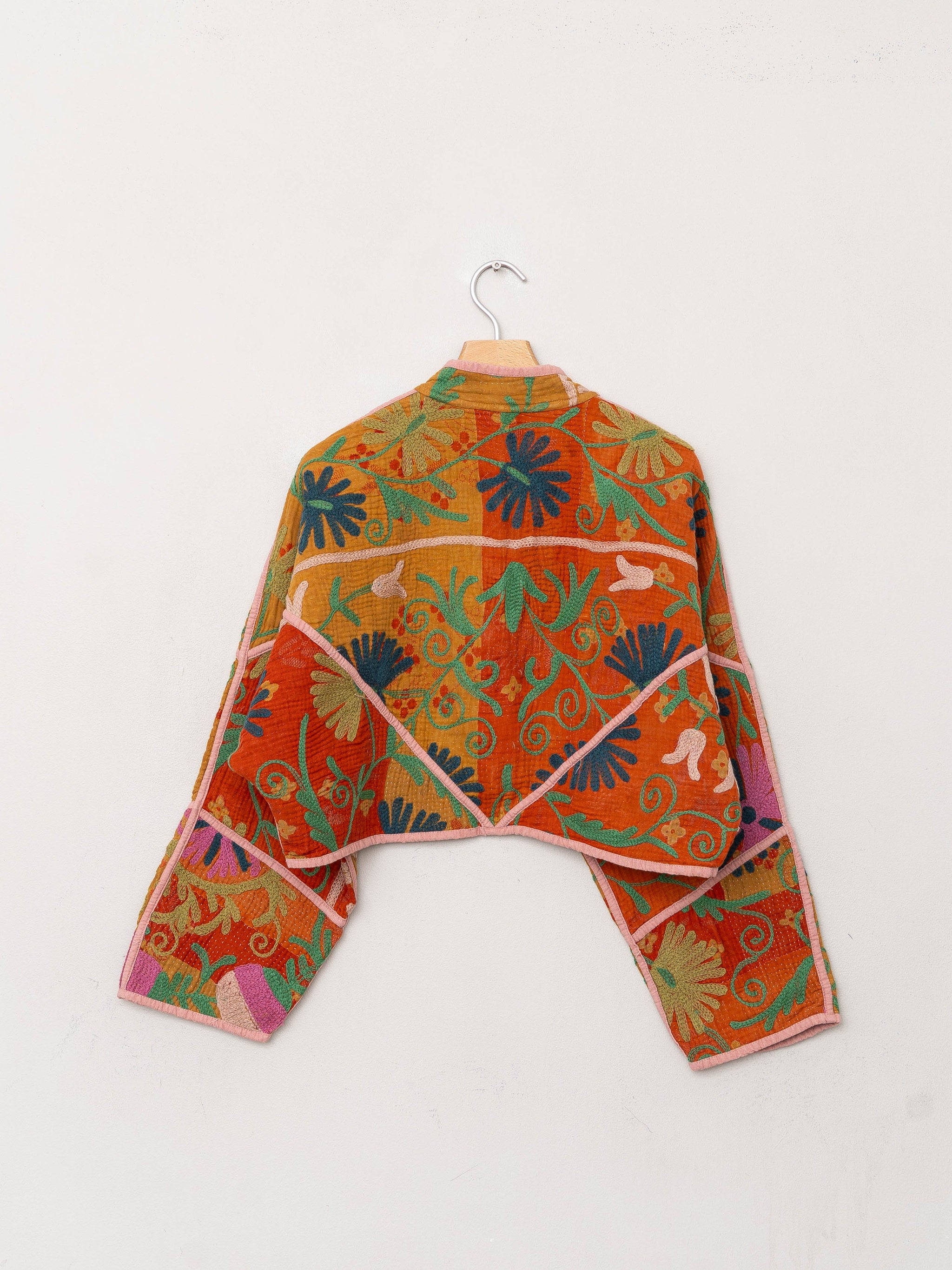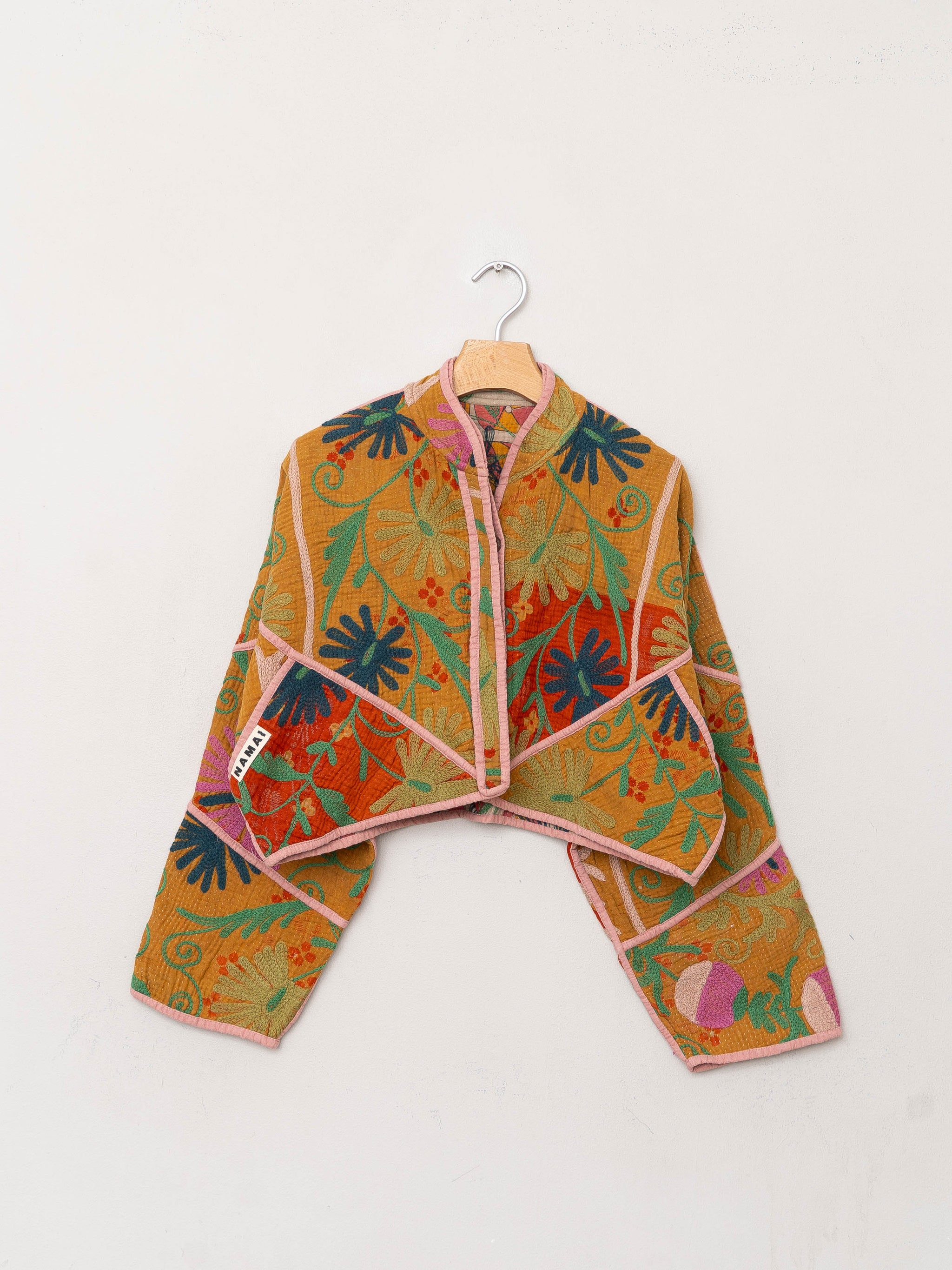 The Kaira Cropped Suzani Quilted Kantha Jacket