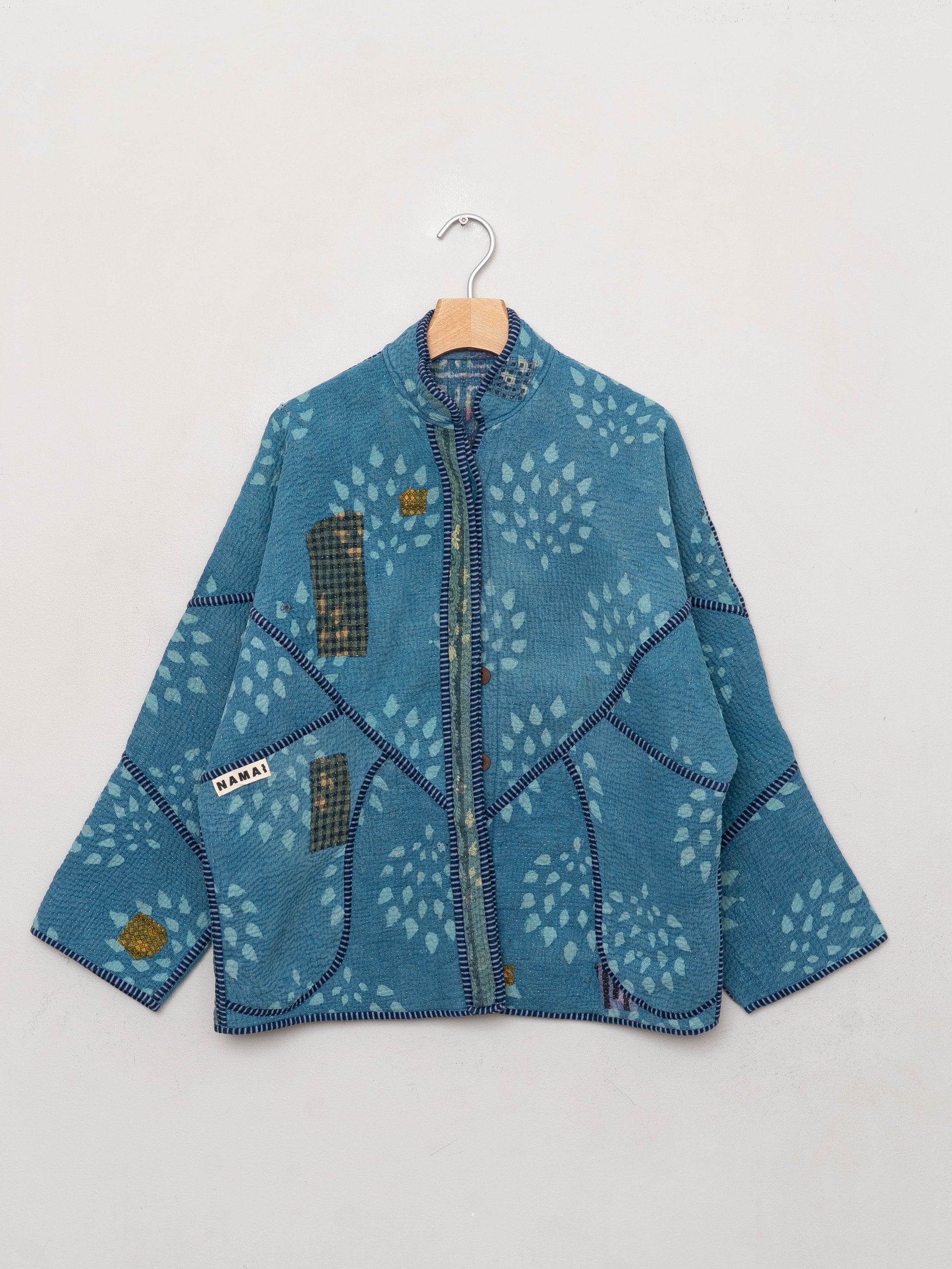 Because the quilts are vintage, gentle signs of age — like fading, small repairs, or texture variations — are expected and part of the textile’s character. Namai also offers lifetime repairs to help keep your jacket in long-term rotation.