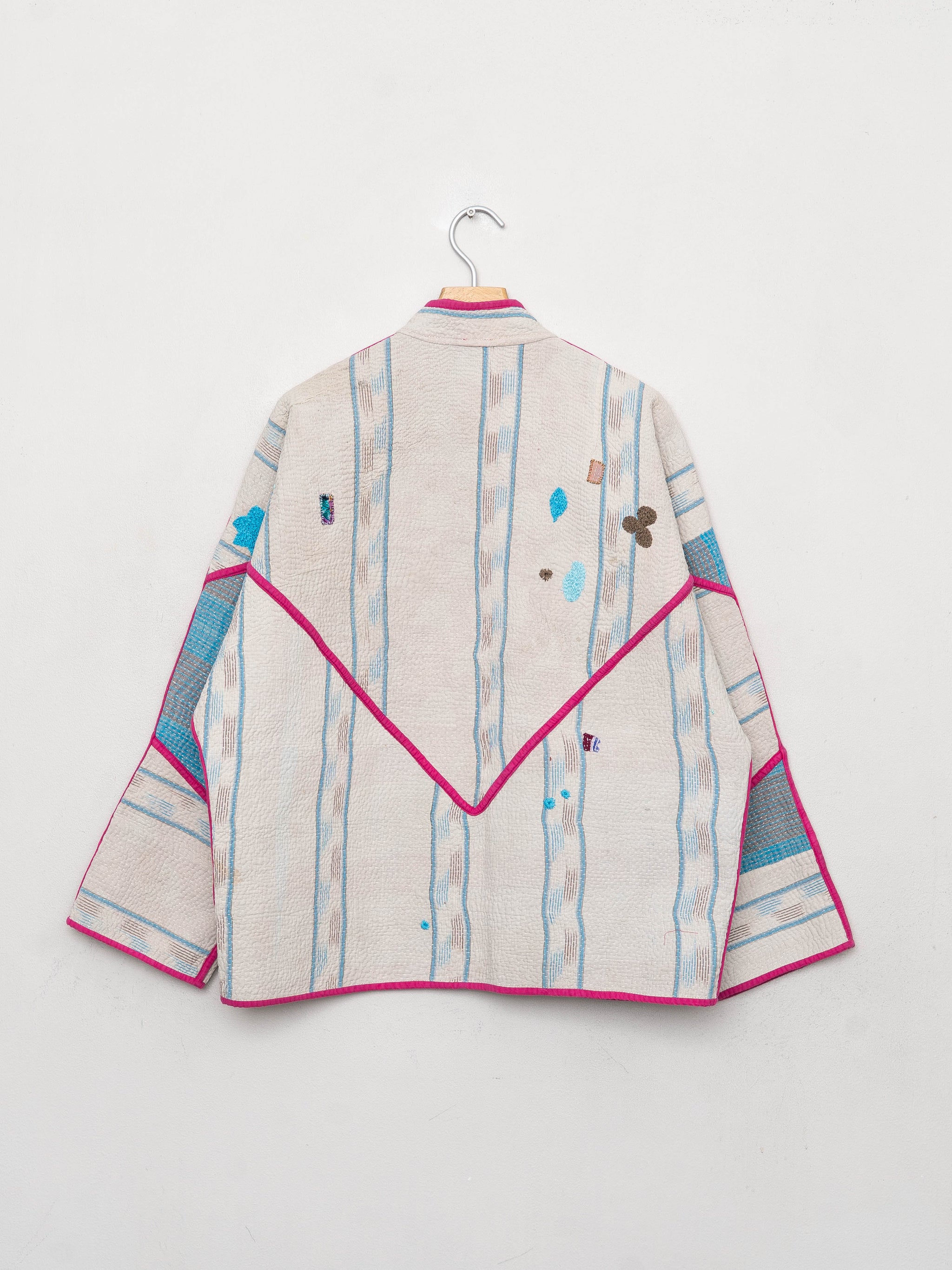 • Because each jacket is made from a different vintage Kantha quilt, the thickness and hand-feel naturally vary—some quilts feel lighter and more relaxed, while others have a slightly more structured feel.