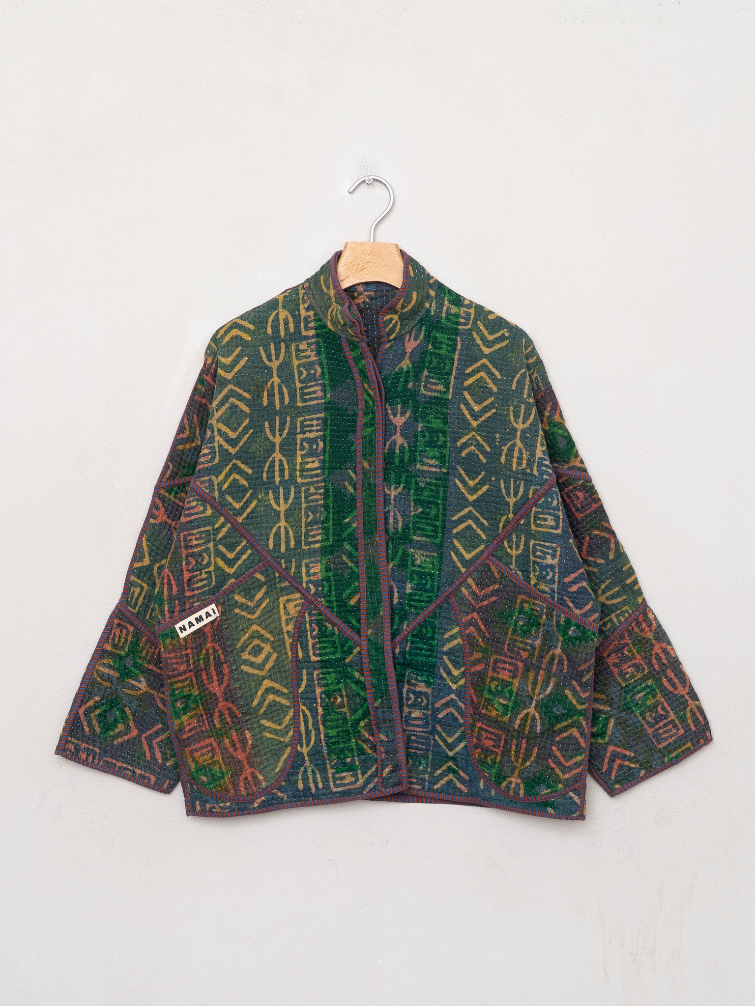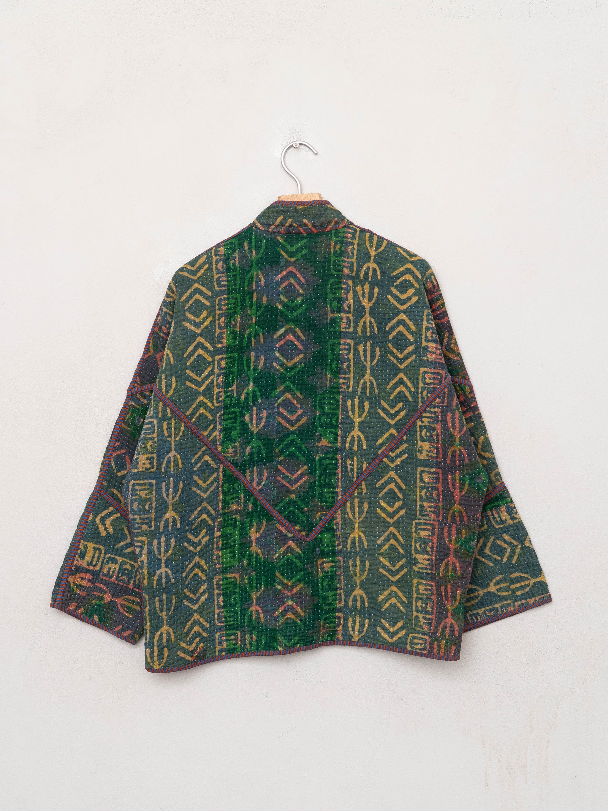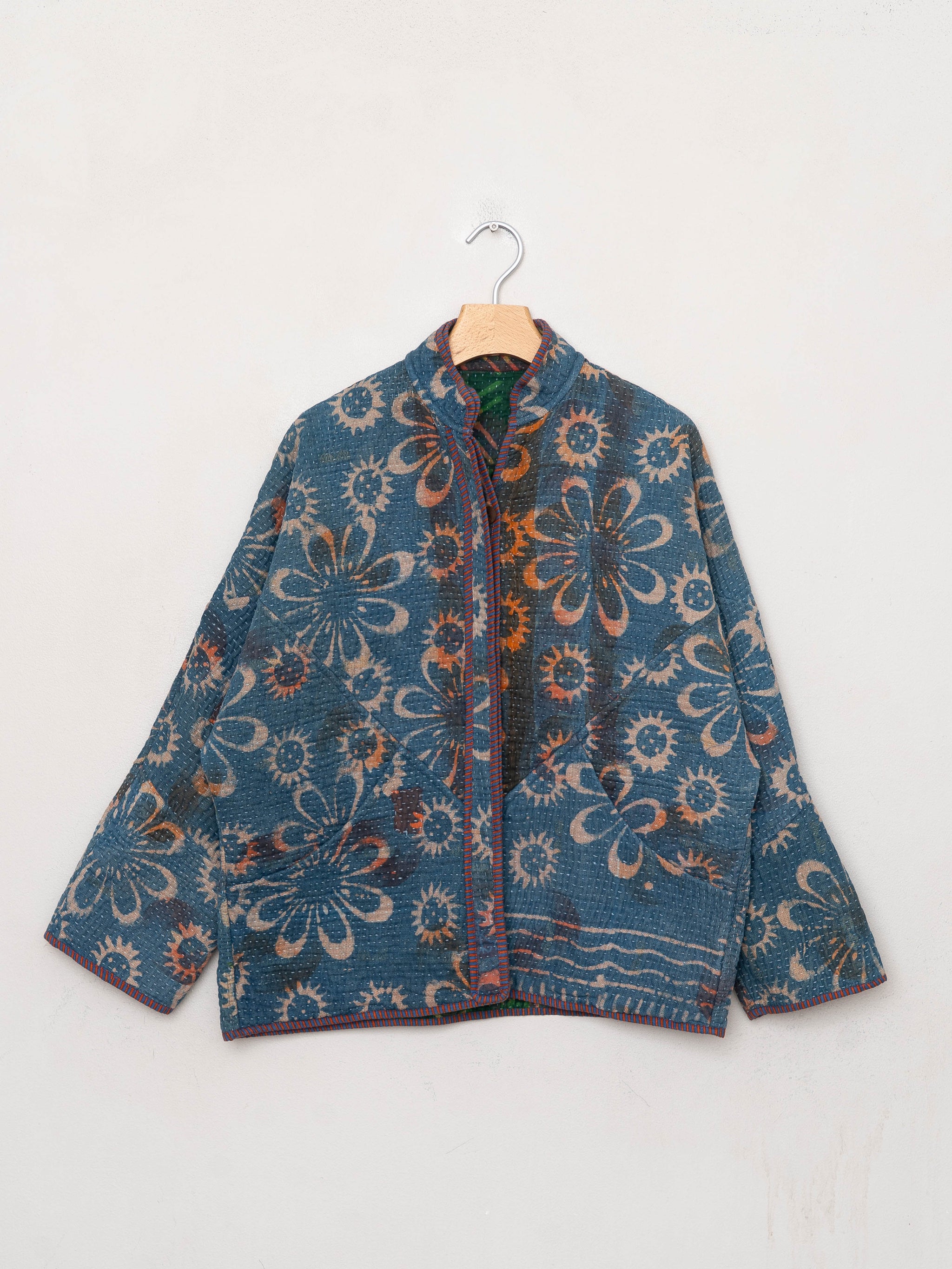 This Jacket features mud resist motifs dyed with plant based dyes over the Vintage Kantha textiles.