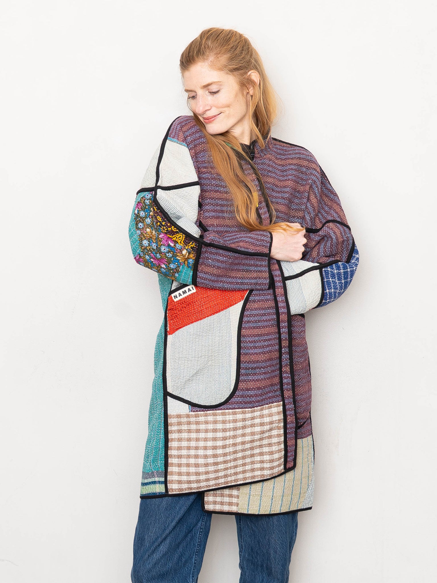 • Spot clean when possible, andmachine wash on a delicate cycle and hang dry. (Lay flat to dry.) Natural fading or small frays are part of the quilt’s story and not considered flaws. Namai offers lifetime repairs, supporting artisan microbusinesses and helping your coat stay in rotation for years.