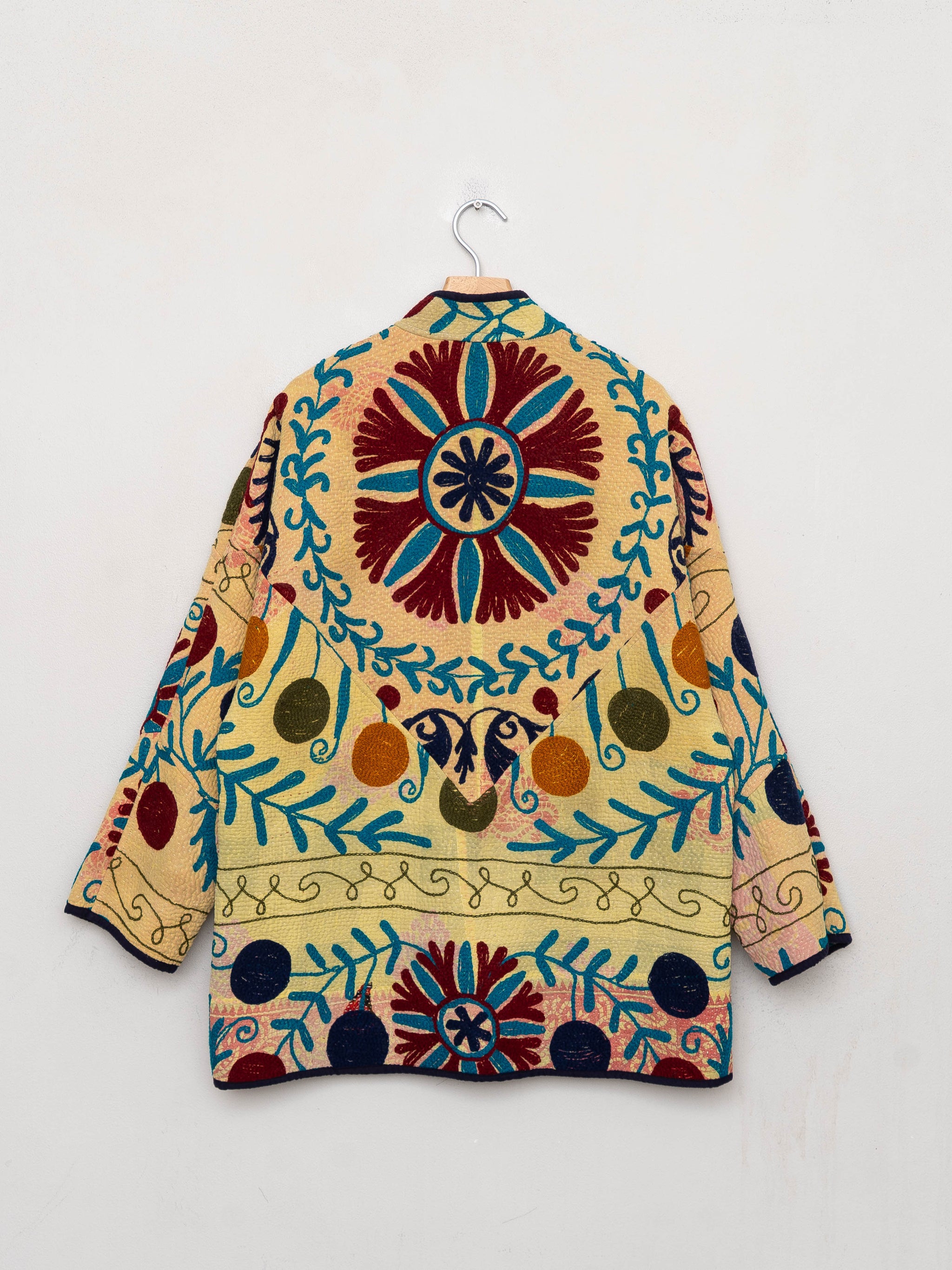 "The Narmada jacket is just gorgeous. The colors, the beautiful stitching and embroidery are so soothing to the touch too. I loved it in the picture but it was even more beautiful to see and hold. I absolutely love my jacket, thank you so much!!" - Natalie F. - Sarasota, FL