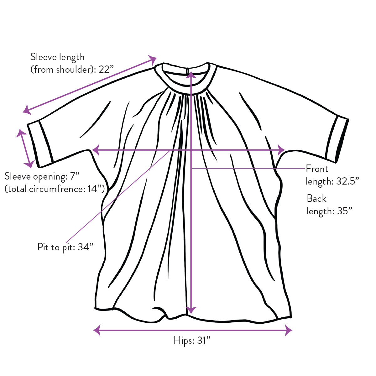 Pit-to-pit (from the bottom of armhole): 34” (total circumference 68")