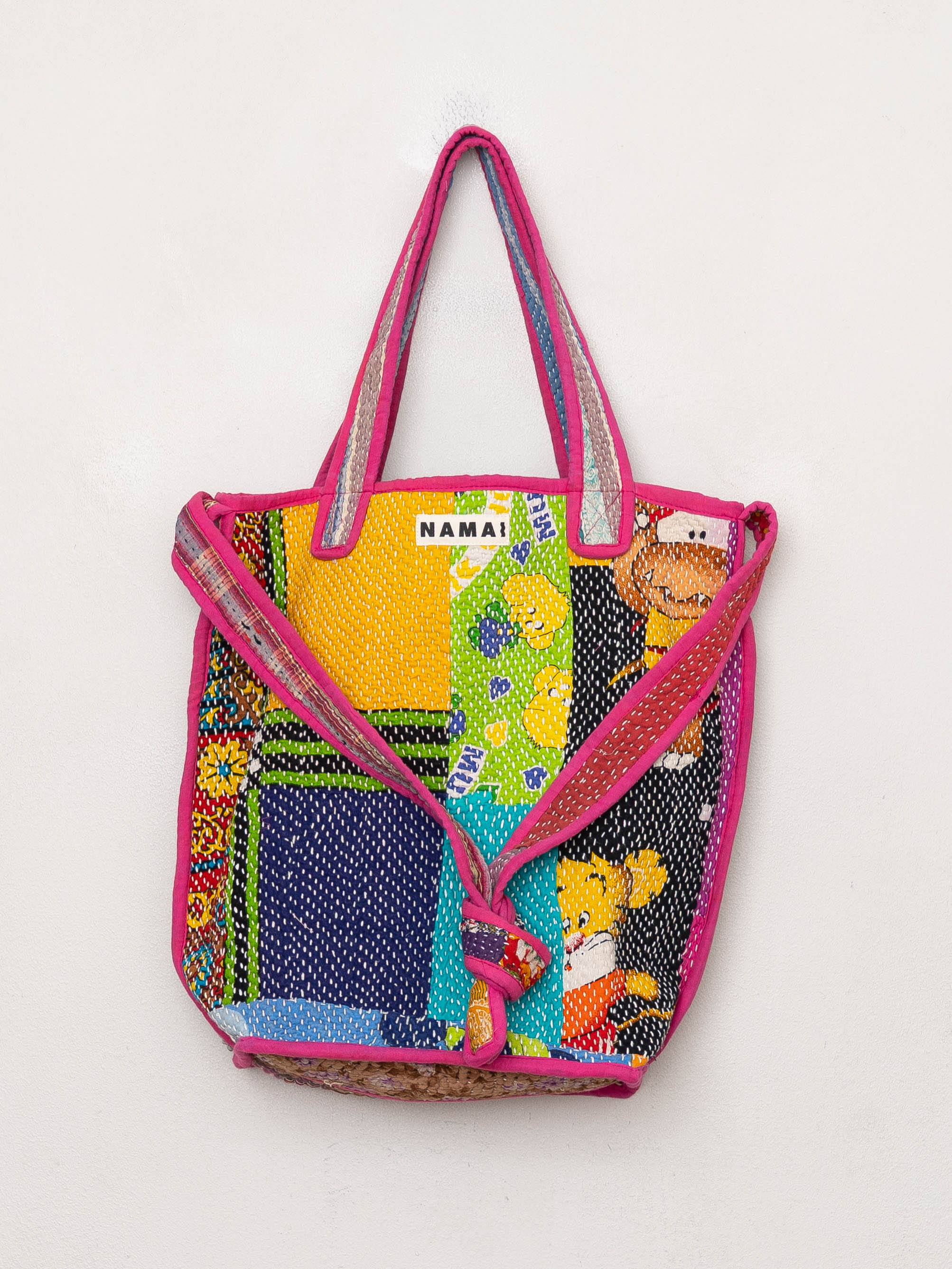 The Xoti Tote is made with love by a small family run workshop in Jaipur. We pay a fair price and ensure that the workers are treated well. The Xoti is made from scraps of kantha quilts leftover from jacket production, so nothing is wasted. We believe that feeling good in our clothes means knowing that they come from an ethical and sustainable source.