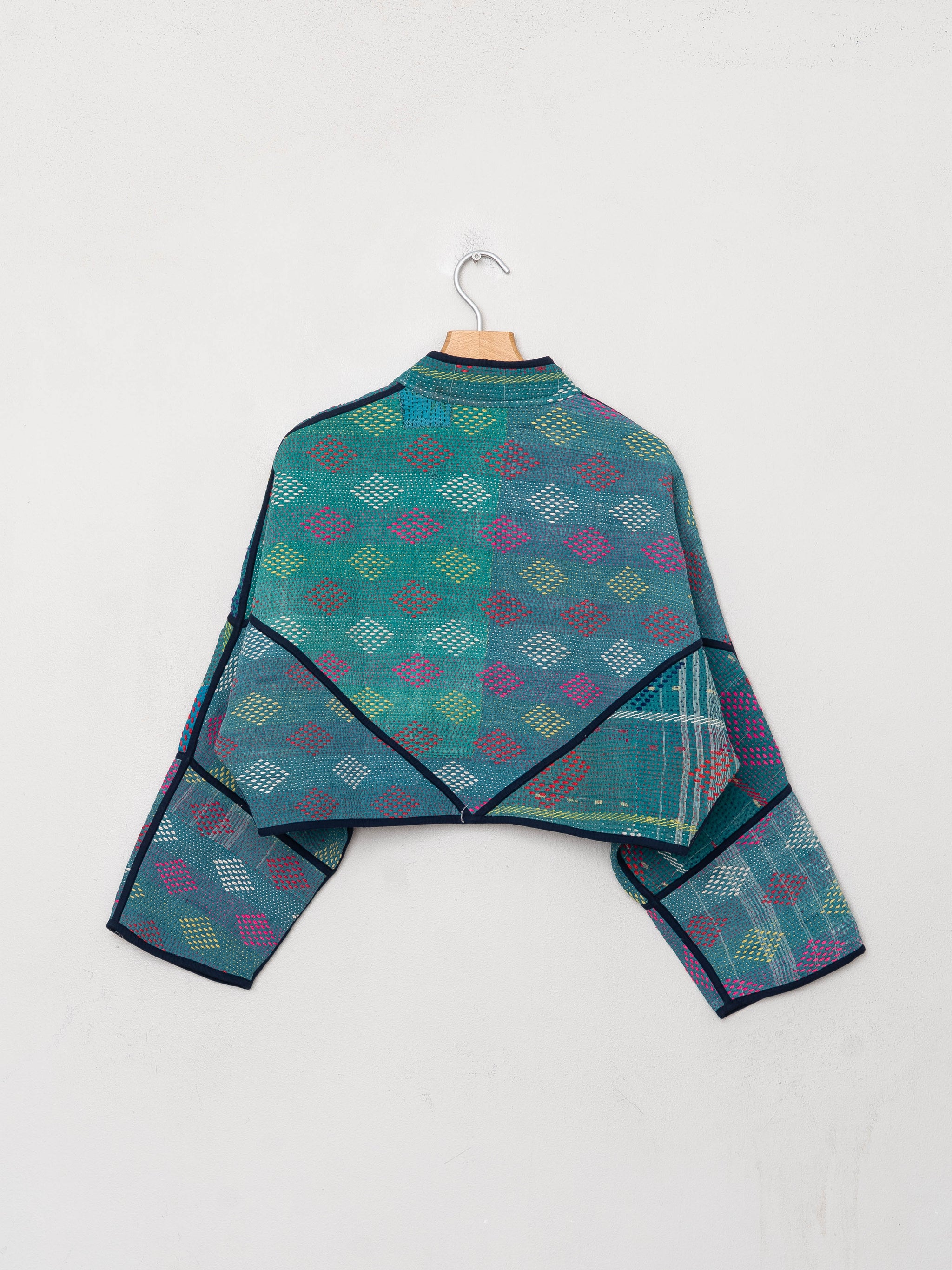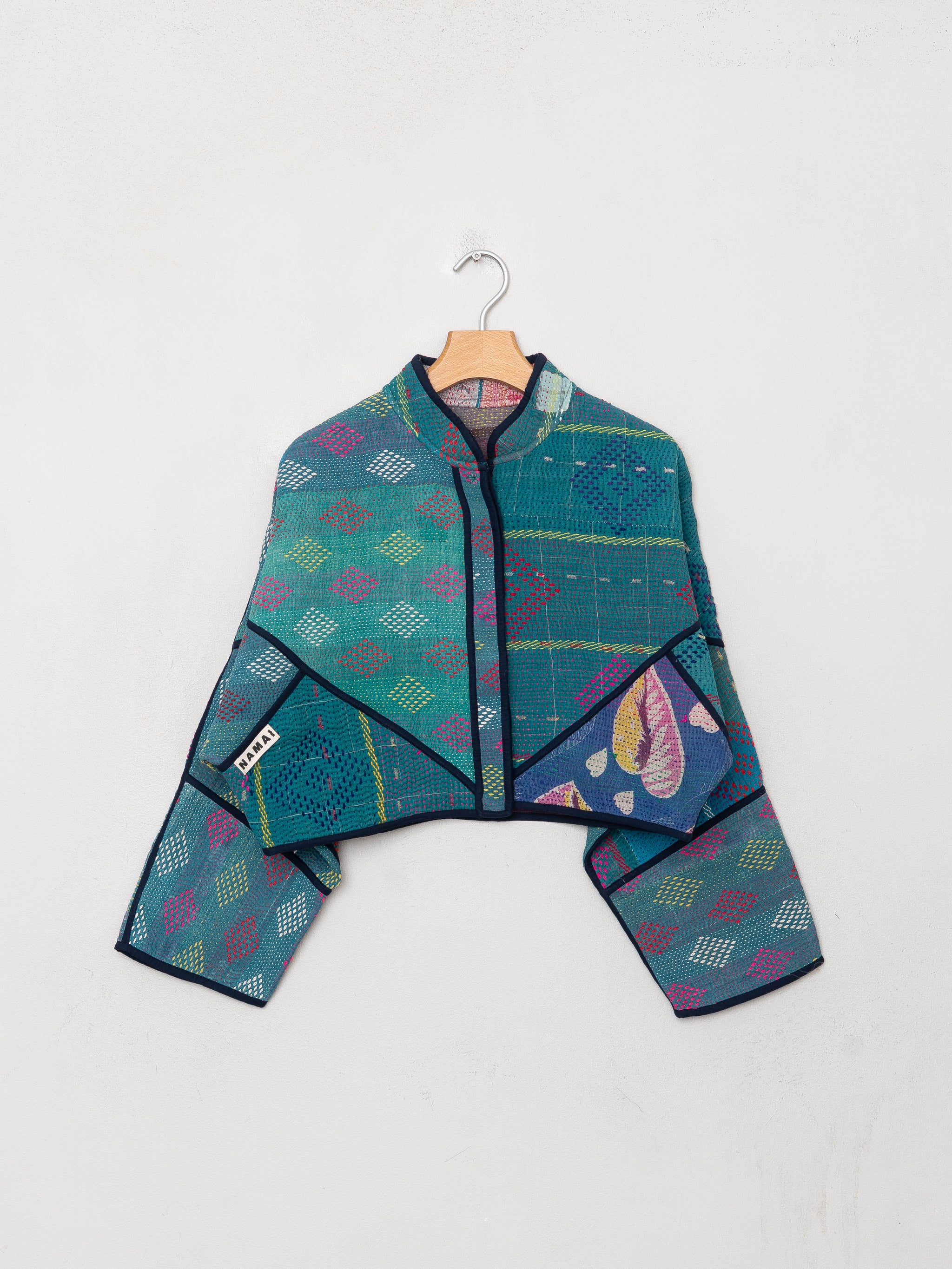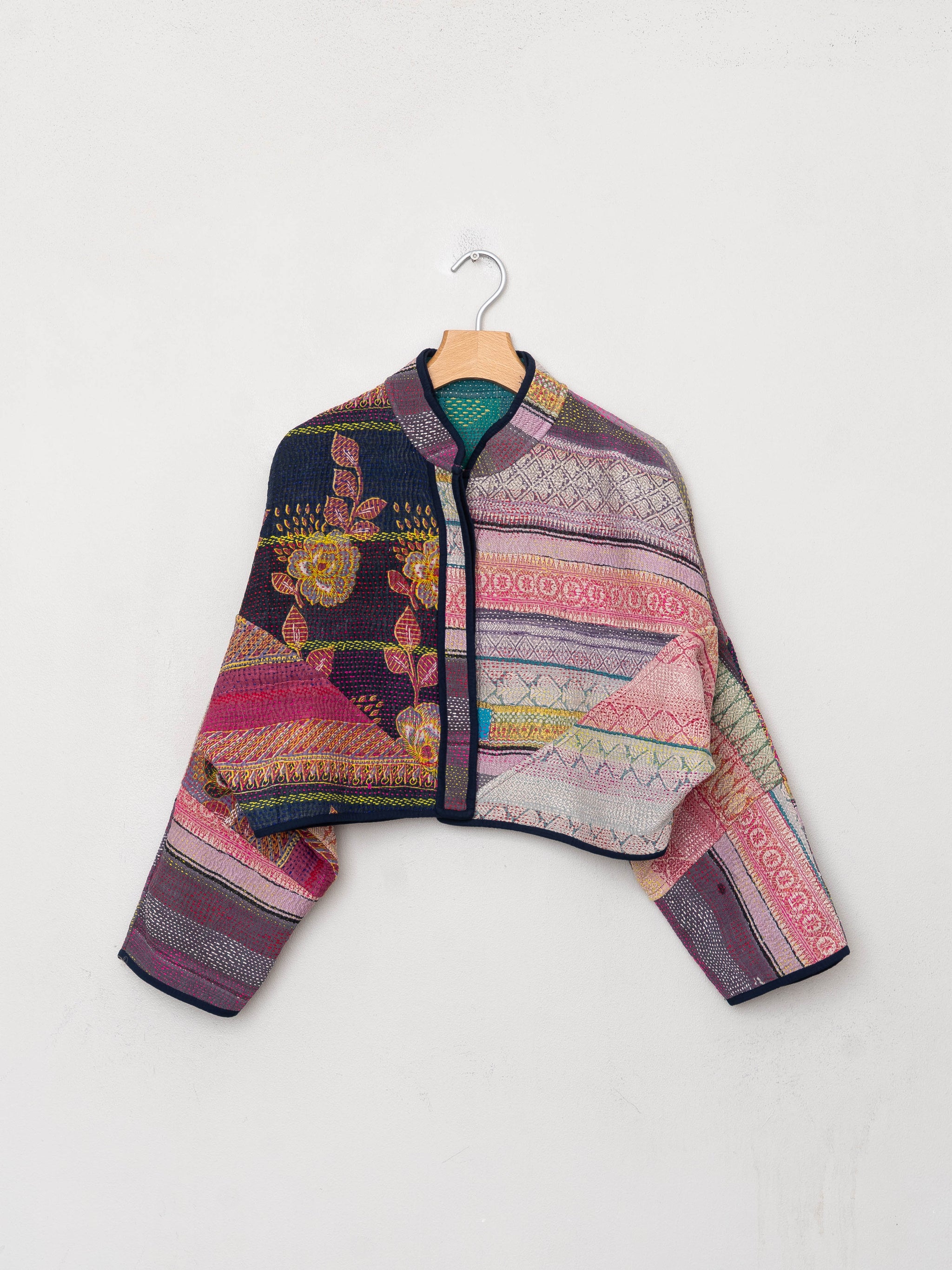 The Kaira Cropped Quilted Patchwork Kantha Jacket